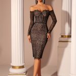 Abito Vestito aderente senza spalline con scollo a cuore, maniche lunghe e schiena scoperta