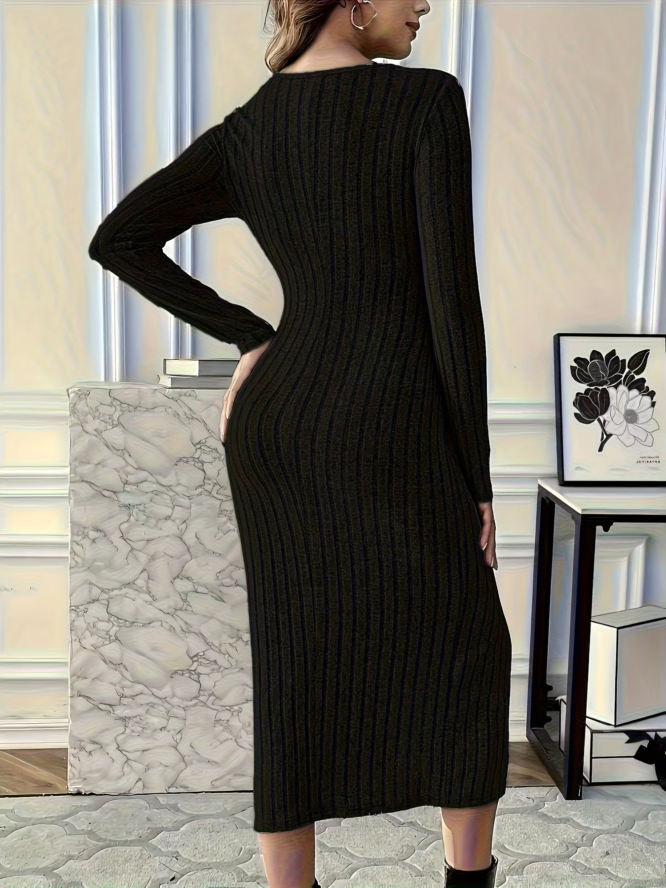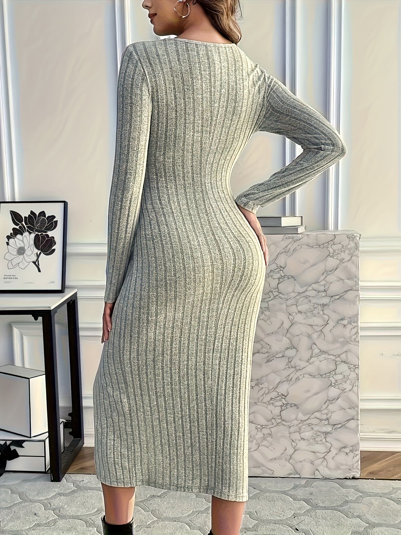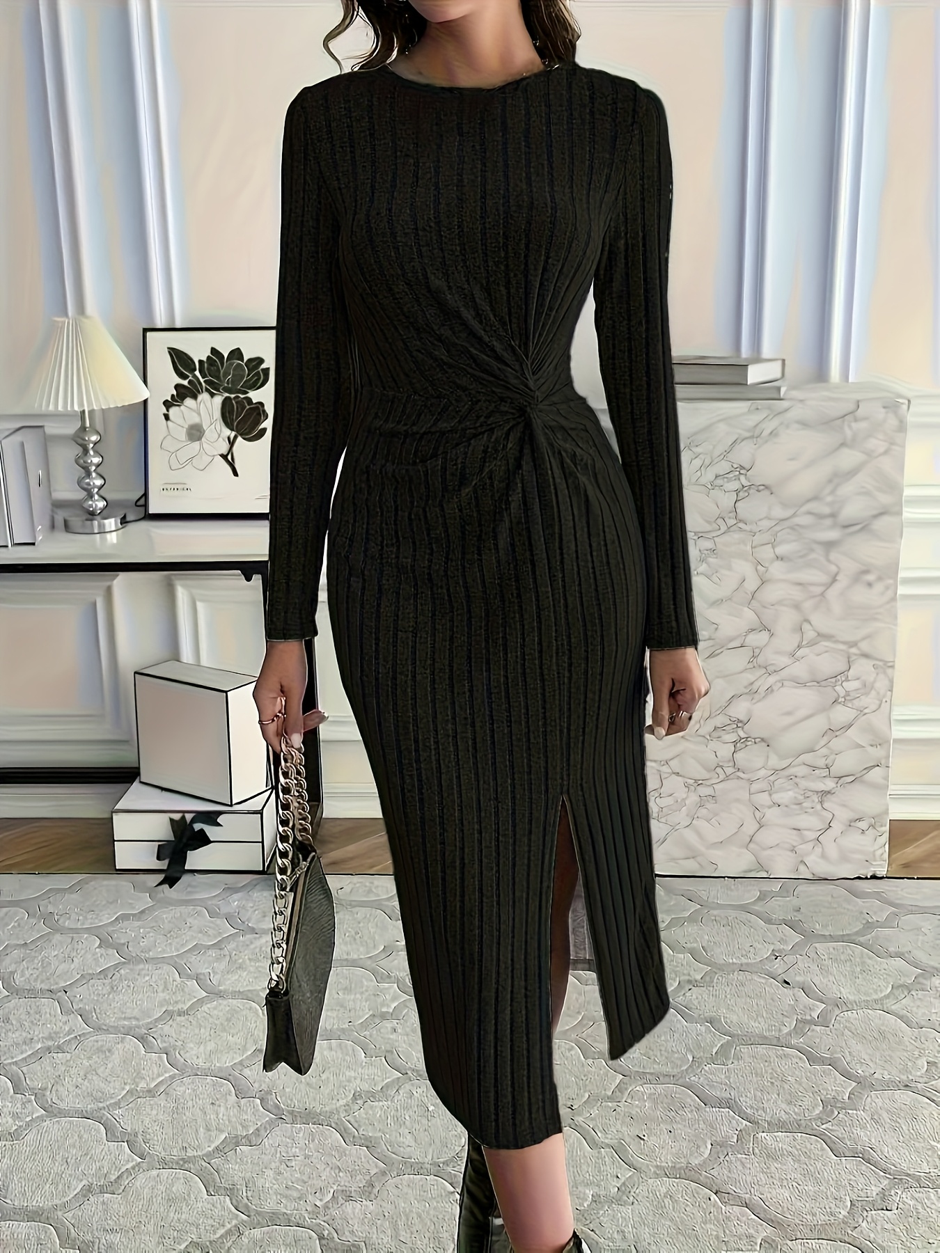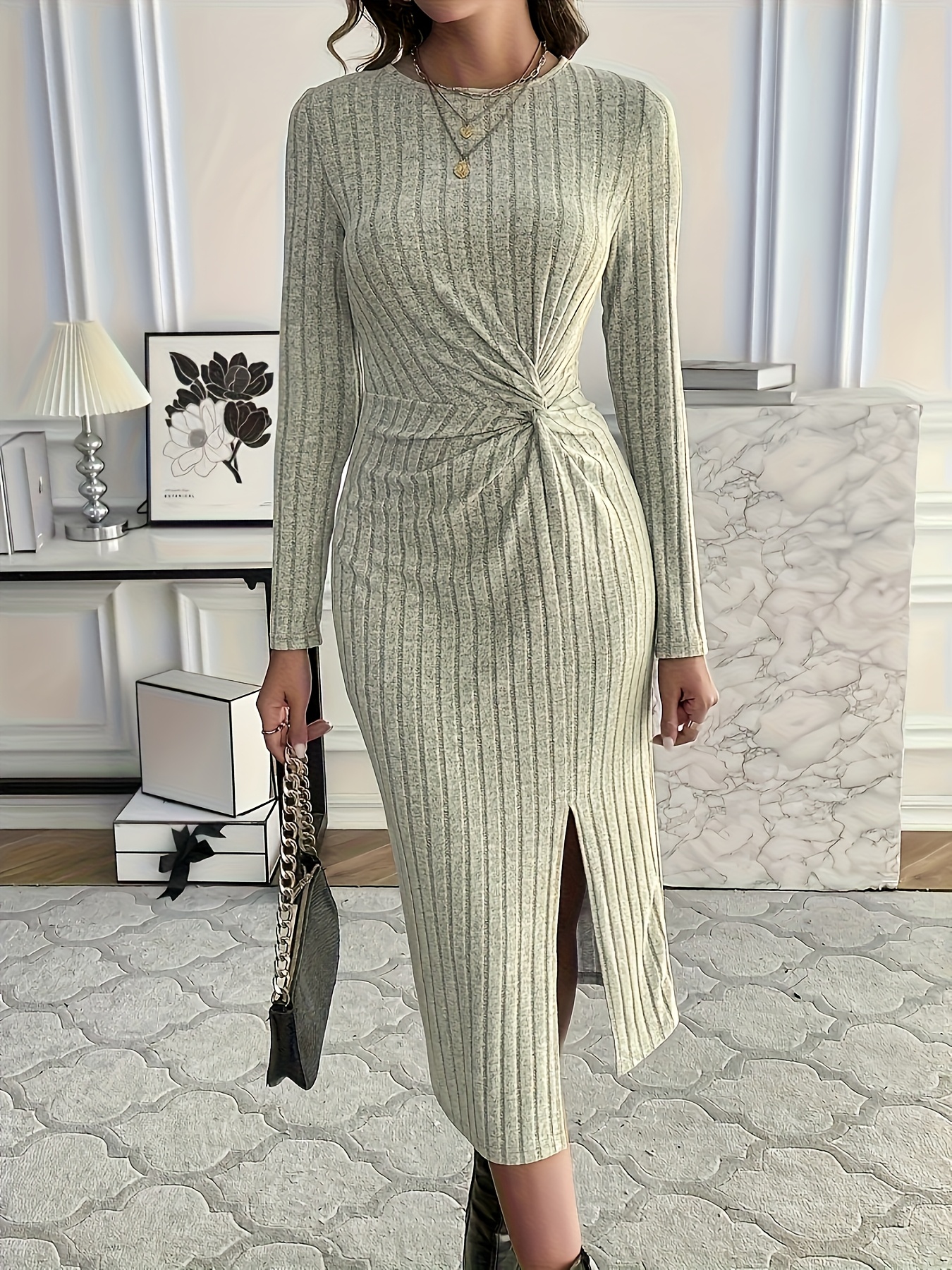 26 Gennaio 2026Abito aderente da donna con maniche lunghe, design che stringe in vita e spacco a metà, che mostra una silhouette sottile, adatto per la primavera e l’autunno