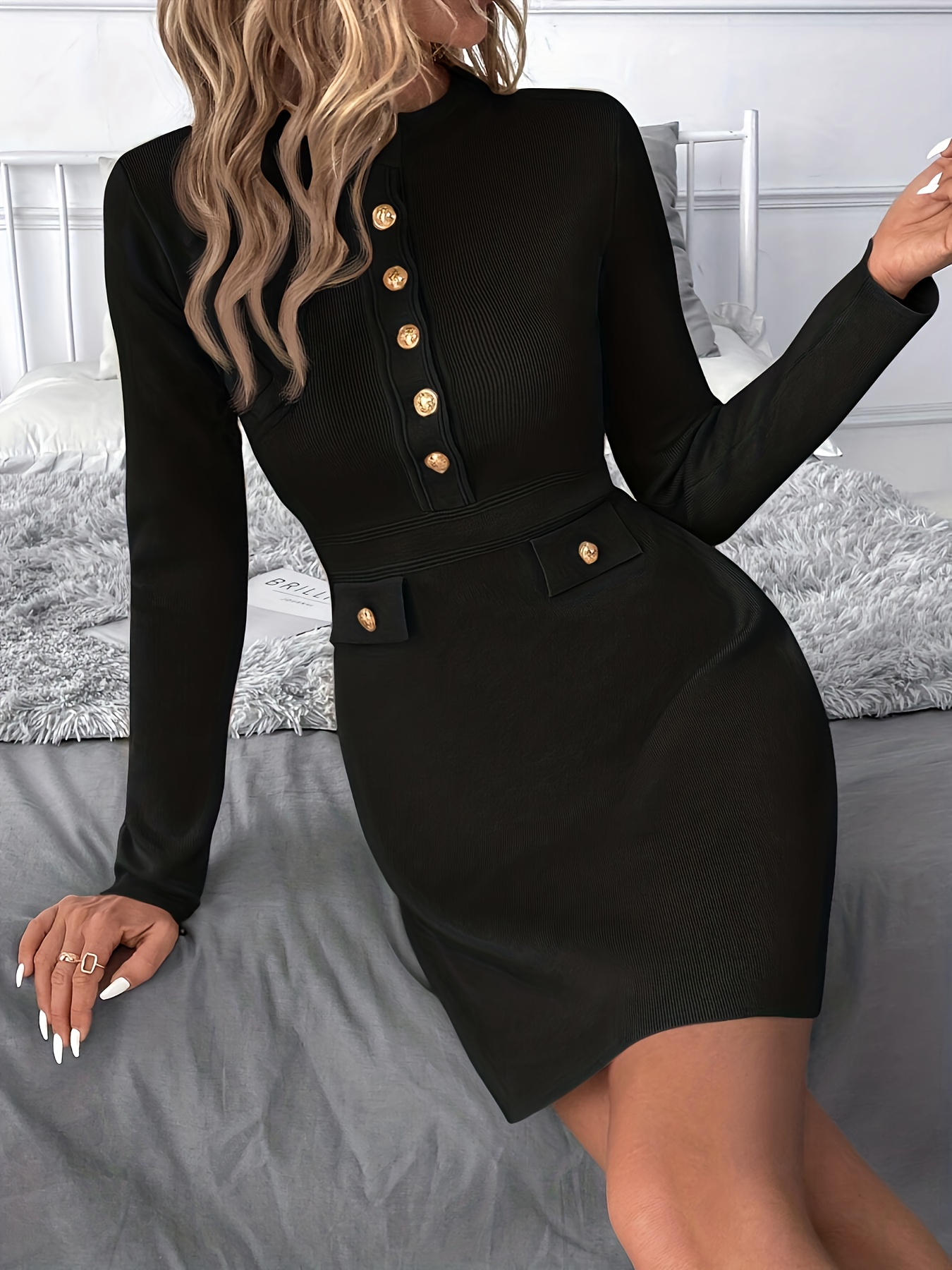 26 Gennaio 2026Abito corto da donna elegante con dettagli di bottoni per il pendolarismo autunnale e invernale