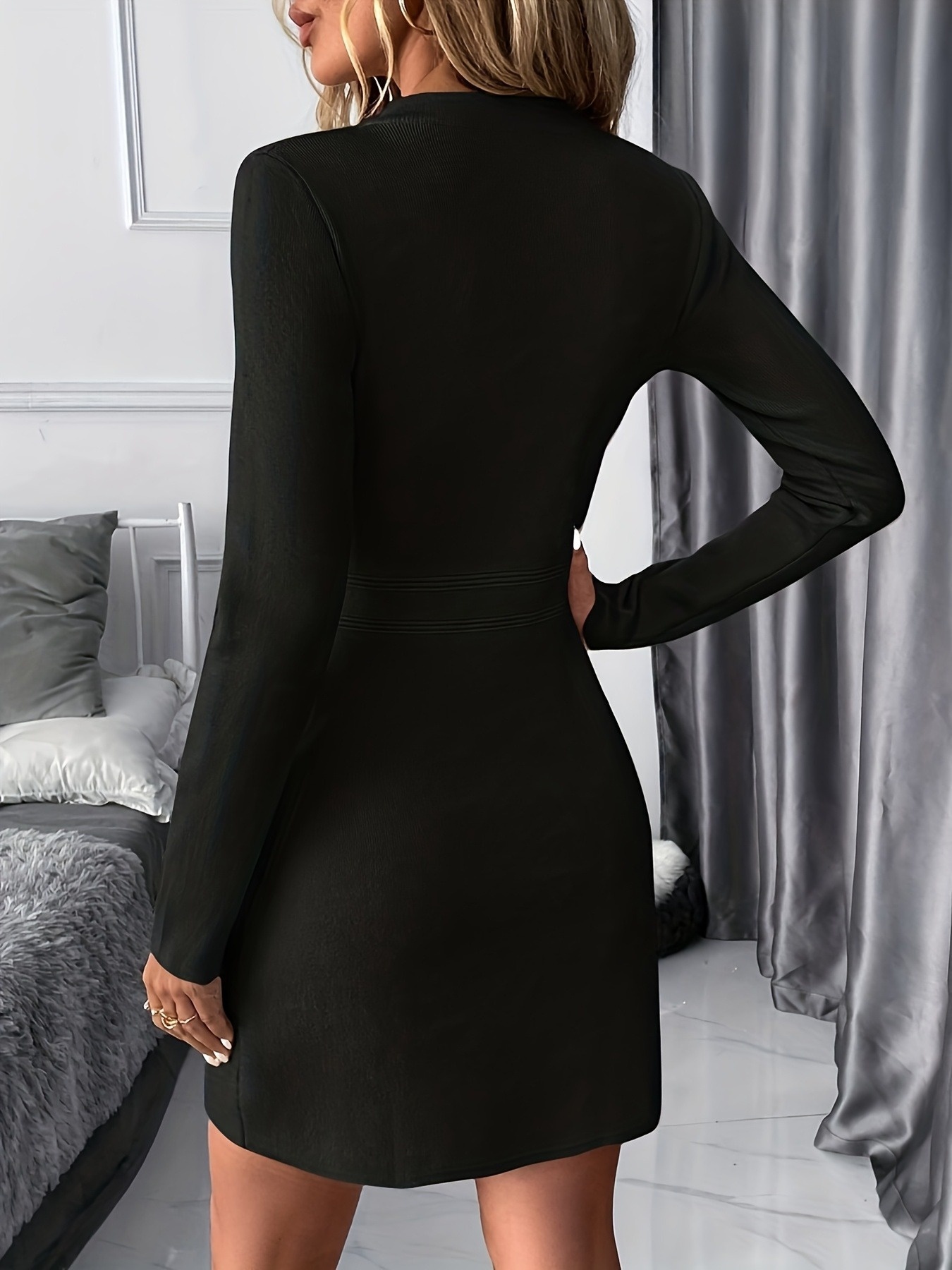 Abito Elegante vestito maglione a maniche lunghe con scollo a V, aderente