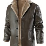 Giacca in Pelle PU Uomo con Fodera in Pile, Collo