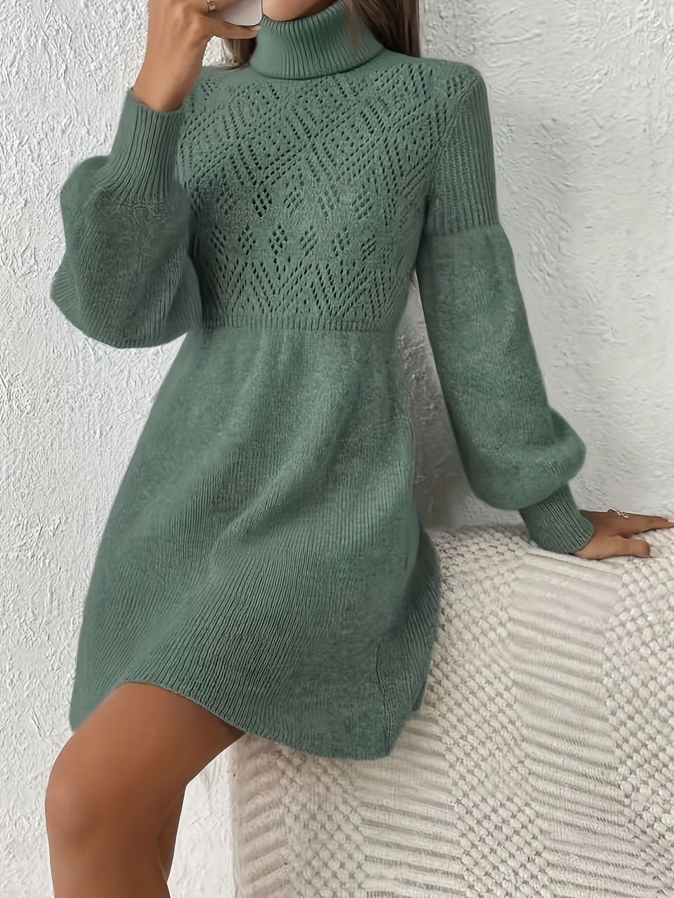 Abito girocollo, maniche lunghe, elegante e alla moda