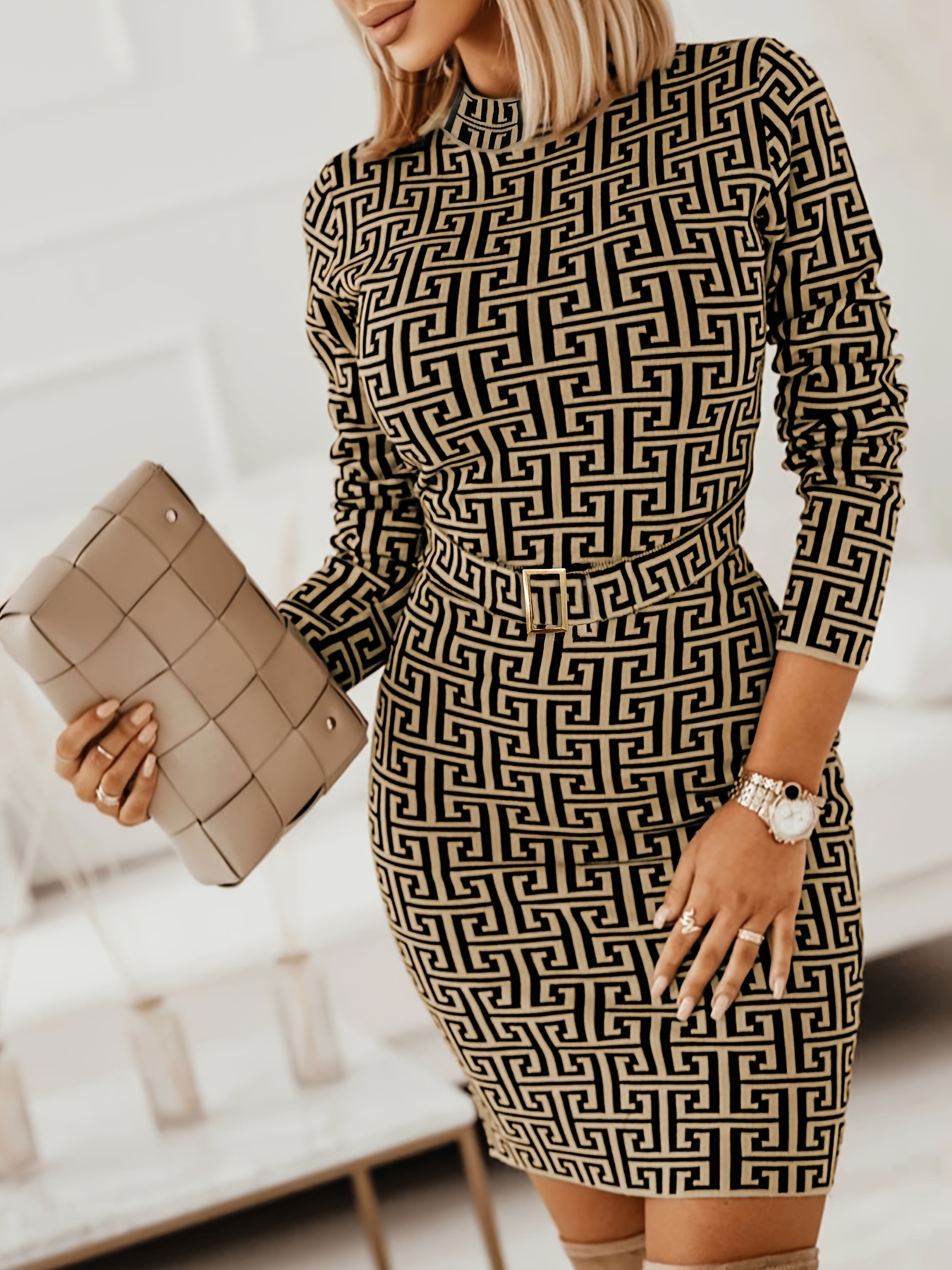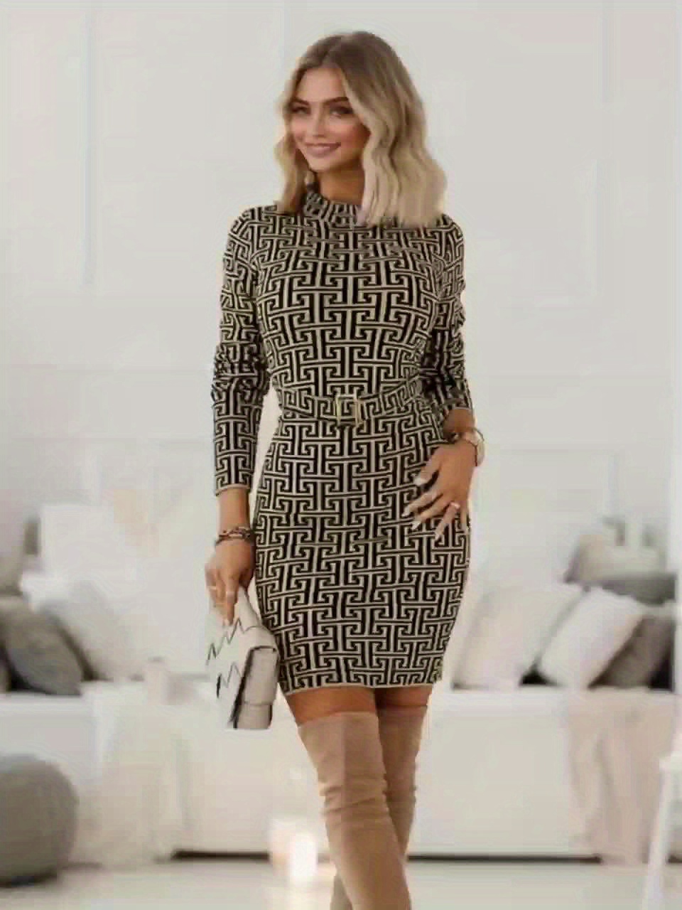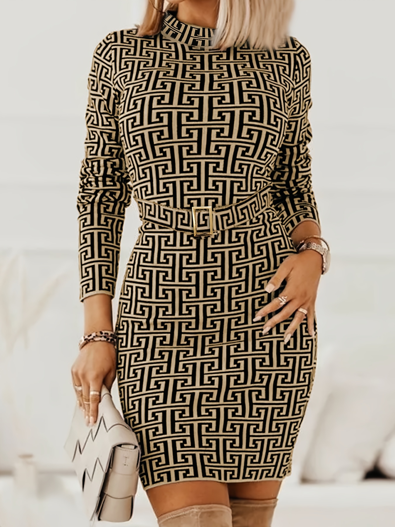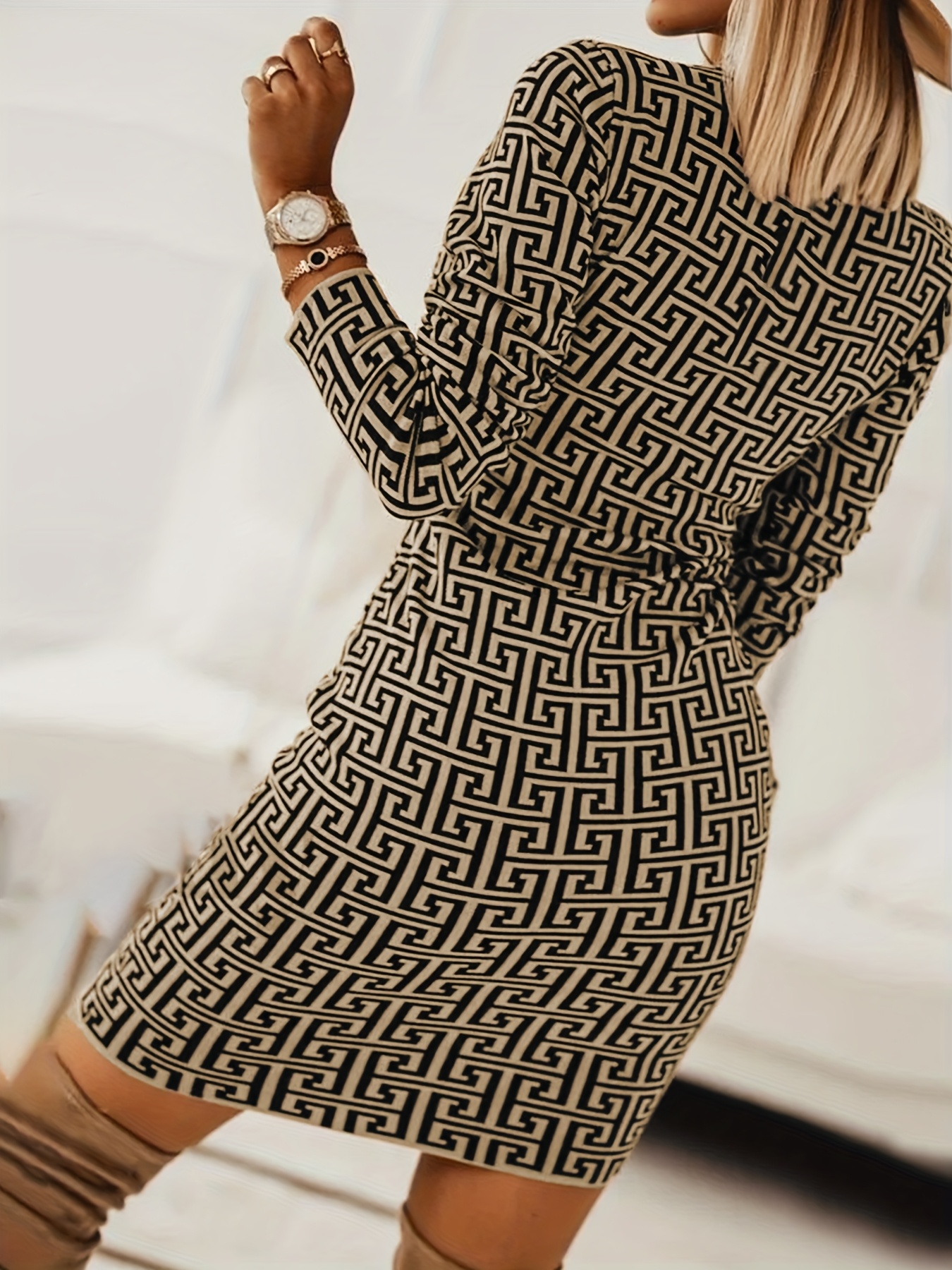 27 Gennaio 2026Abito da Donna con Stampa Geometrica e Maniche Lunghe