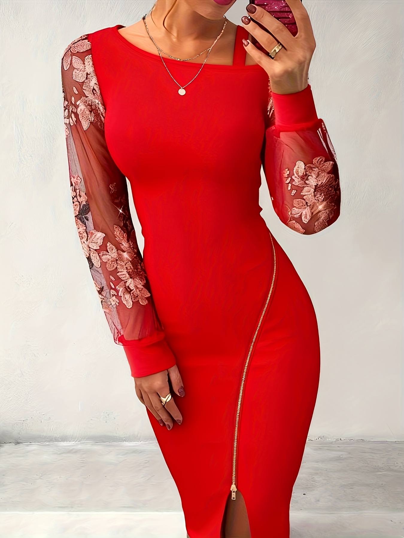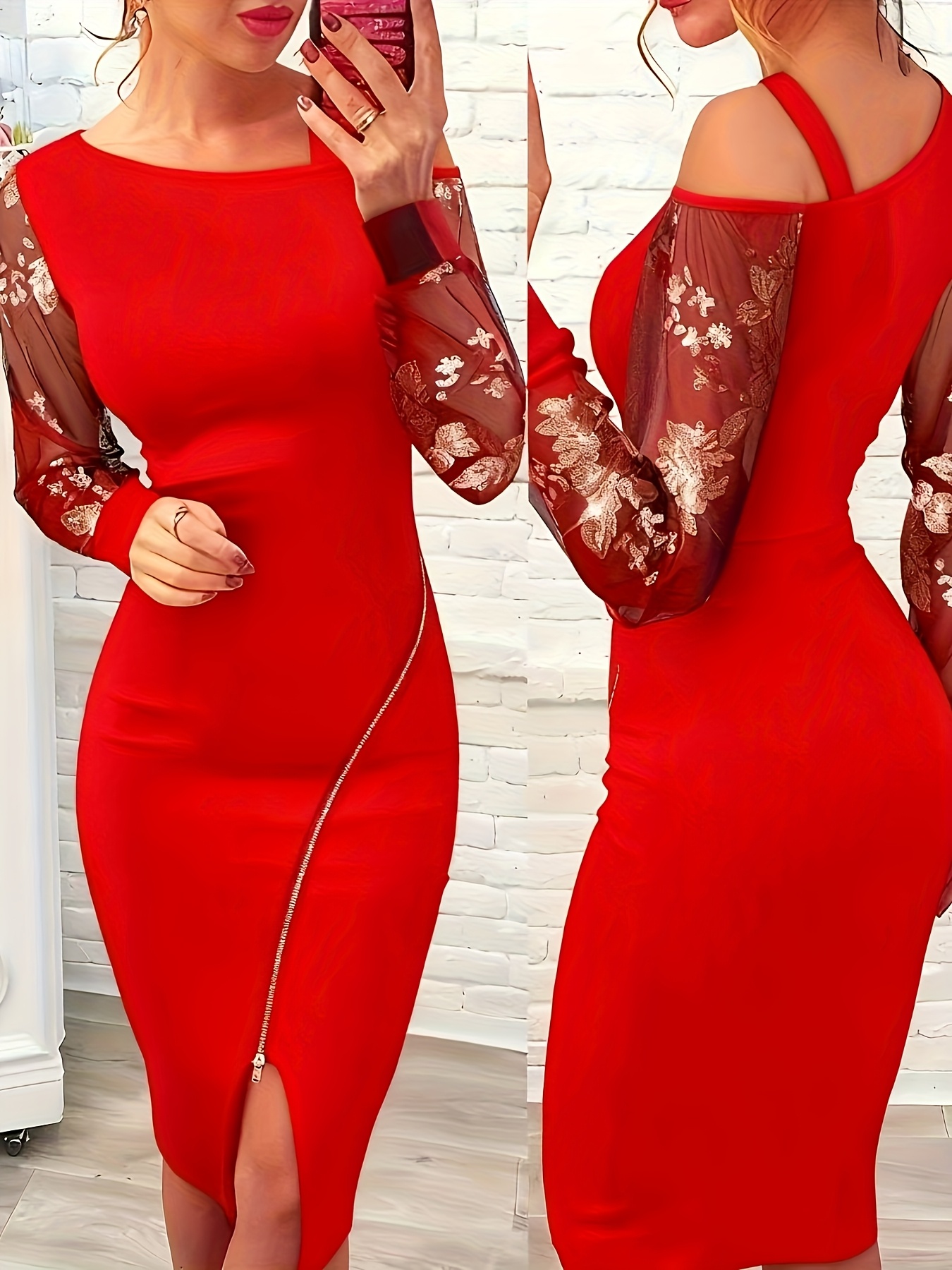 16 Aprile 2026Abito da festa ed elegante con patchwork di perline, abito con spalle scoperte e maniche lunghe + YTD Cherry