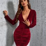Abito Elegante Donna in Velluto Morbido con Pieghe, Scollo a V, Maniche Corte o Lunghe