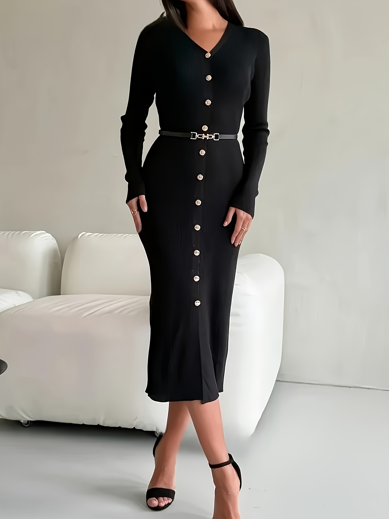 Abito con maniche Casual lunghe, collo a V, e bottoni
