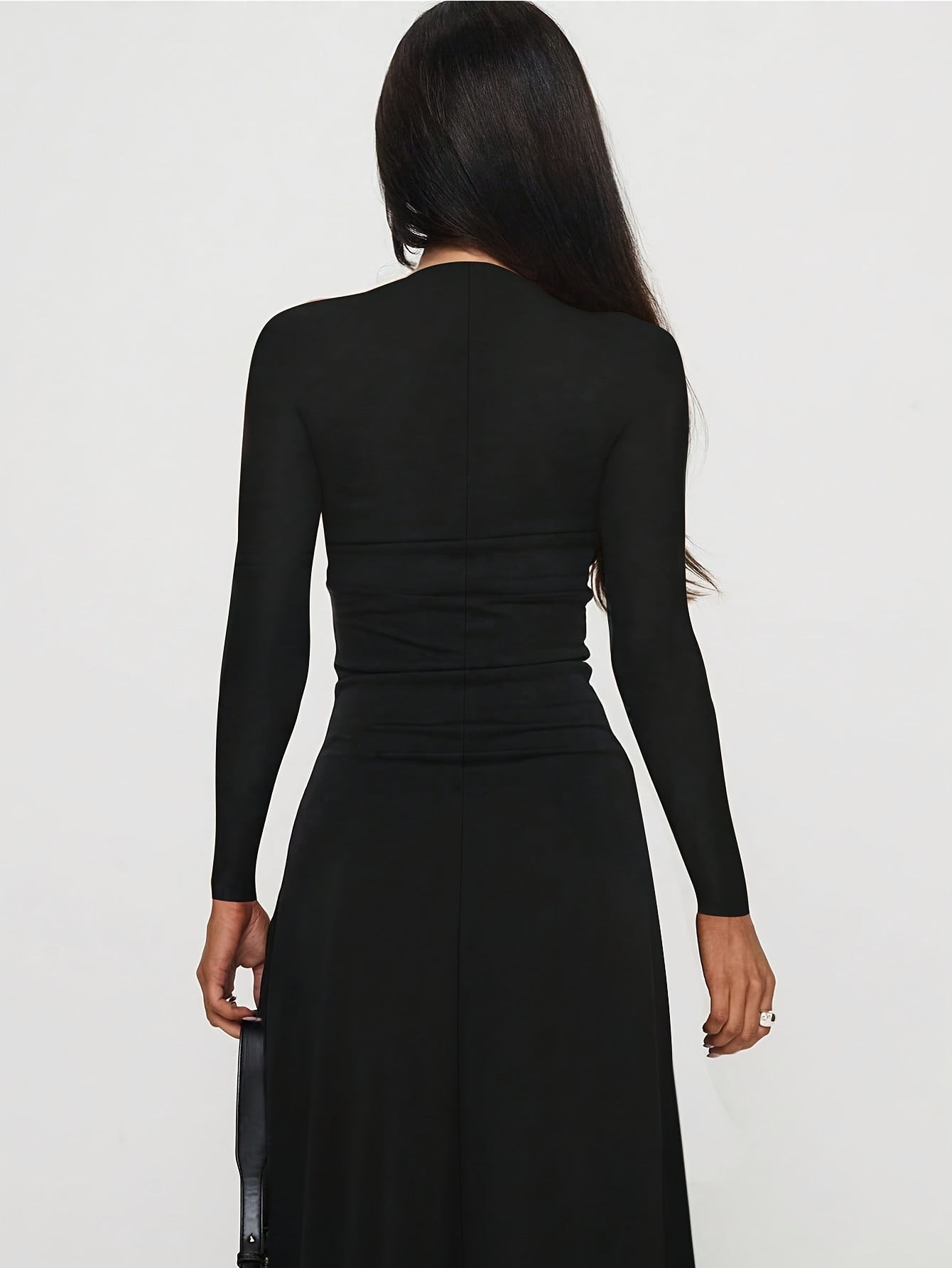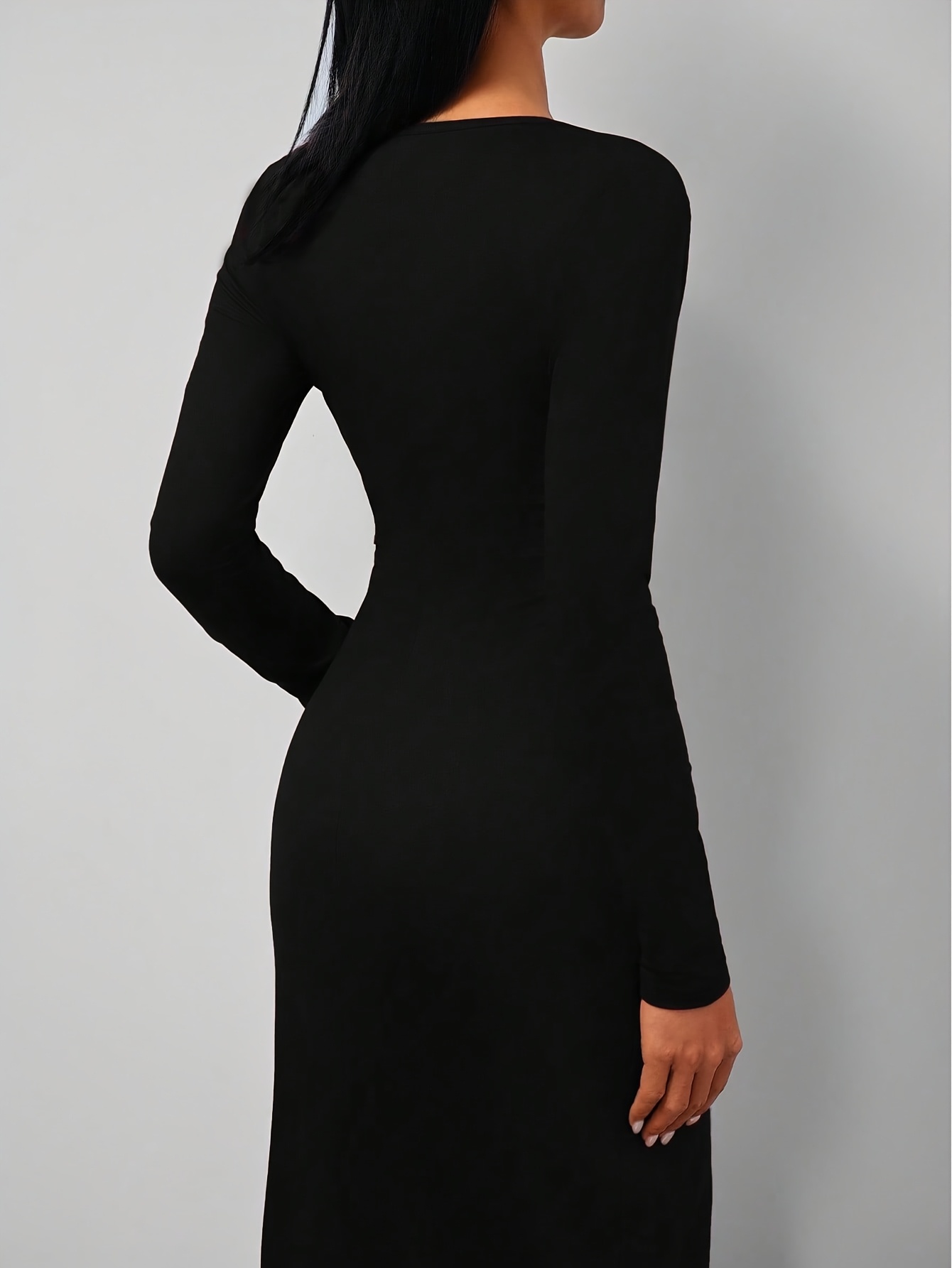 Abito Slim-Fit con Scollo a V e Pieghe sul Seno – Elegante