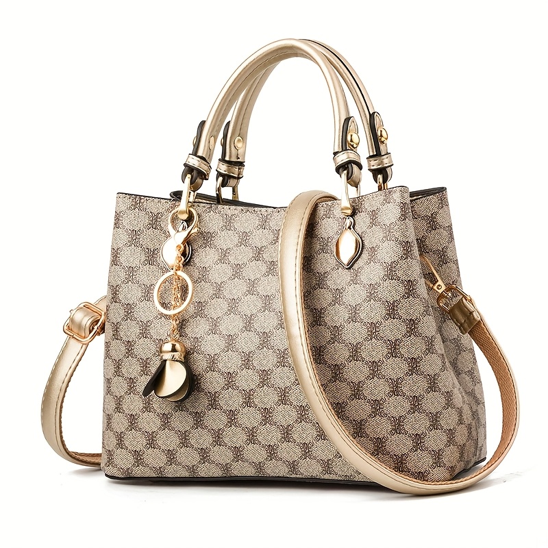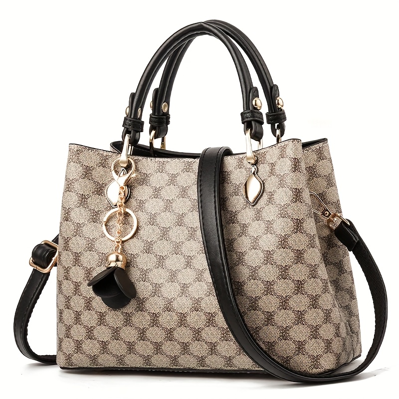Borsa a spalla da donna in stile retrò alla moda con stampa di lettere, grande capacità, tracolla fissa e fodera, perfetta per l’uso quotidiano e i […]