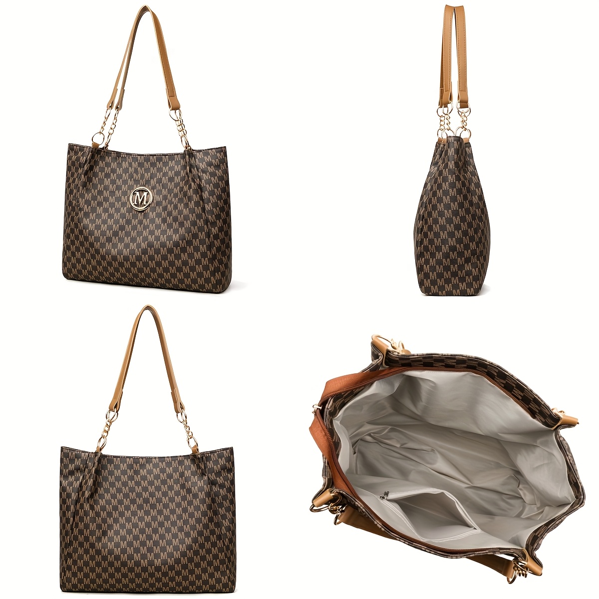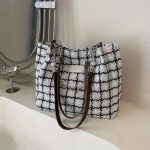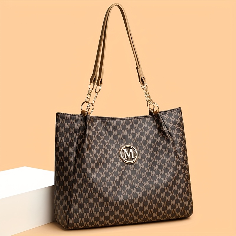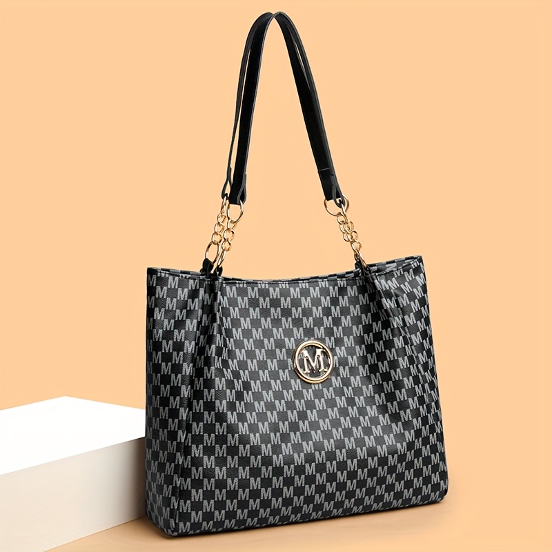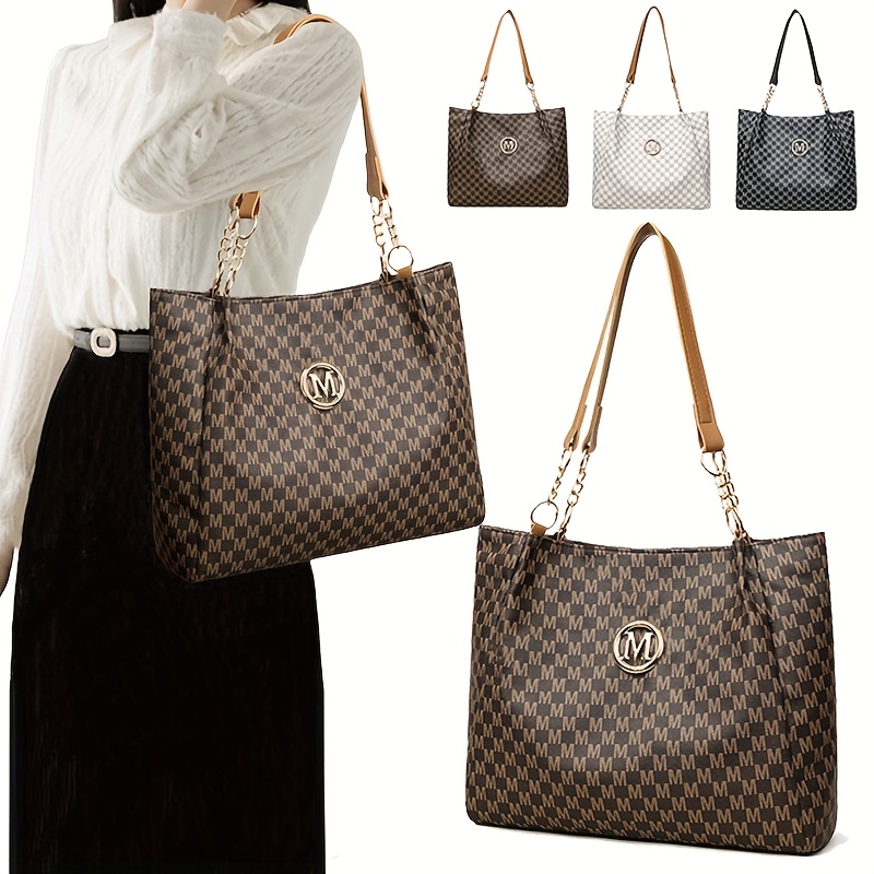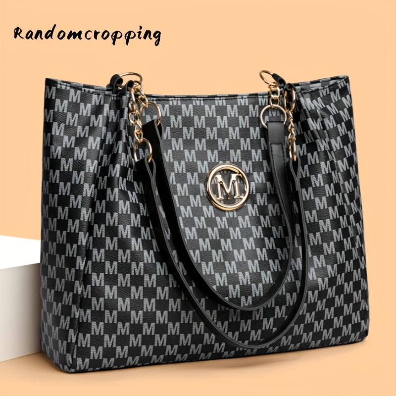 Borsa Tote alla Moda con Stampa a Quadri, Borsa a Spalla