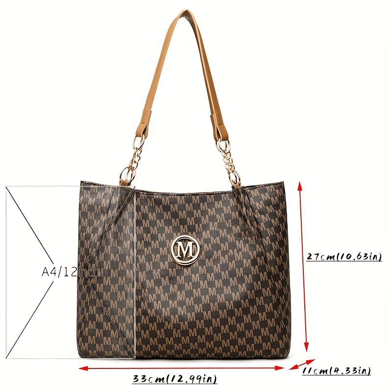 19 Febbraio 2026Borsa a spalla da donna in stile retrò alla moda con stampa di lettere, grande capacità, tracolla fissa e fodera, perfetta per l’uso quotidiano e i pendolari per il lavoro.