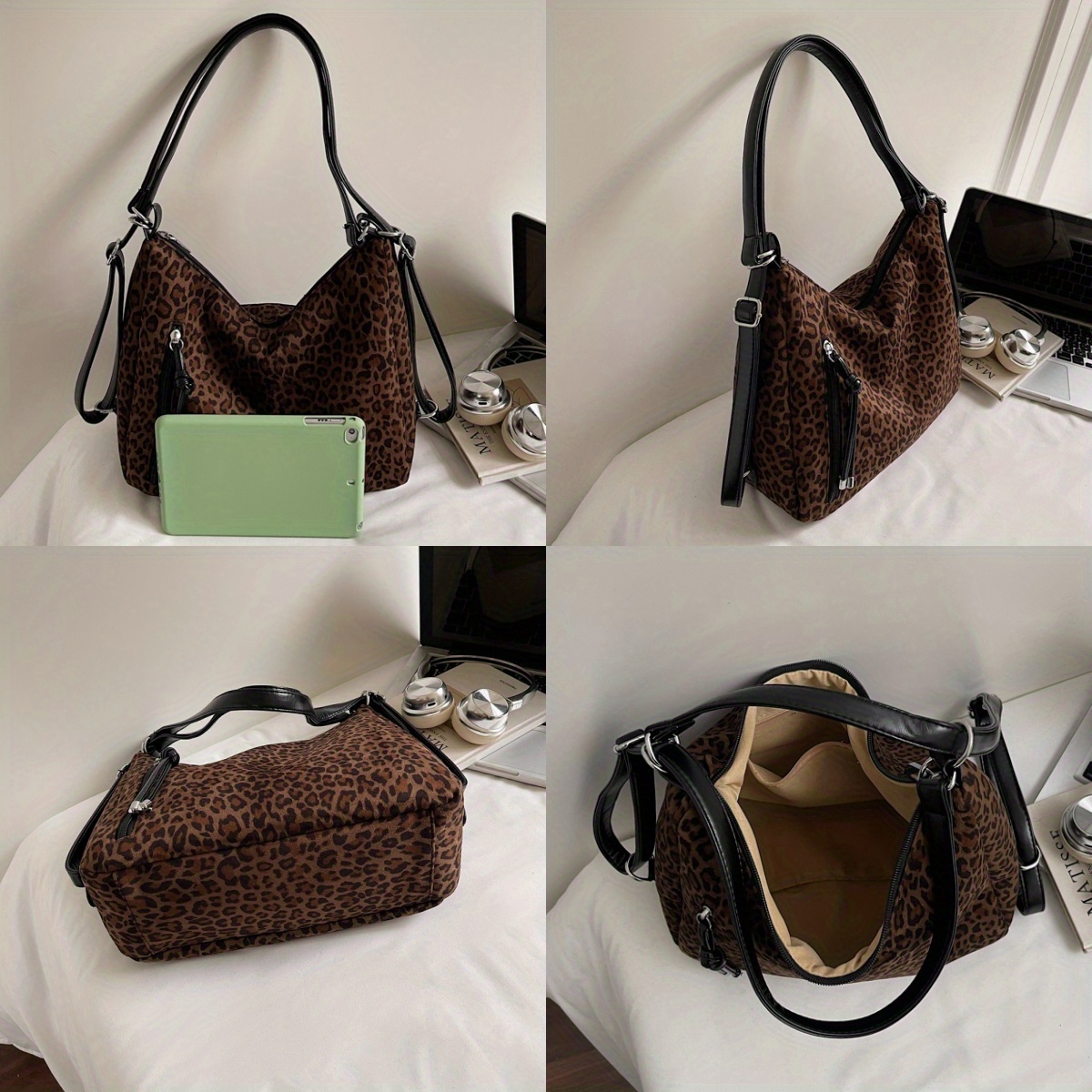 Borsa Tote Grande Capacità con Stampa Leopardata | Chiusura con Zip