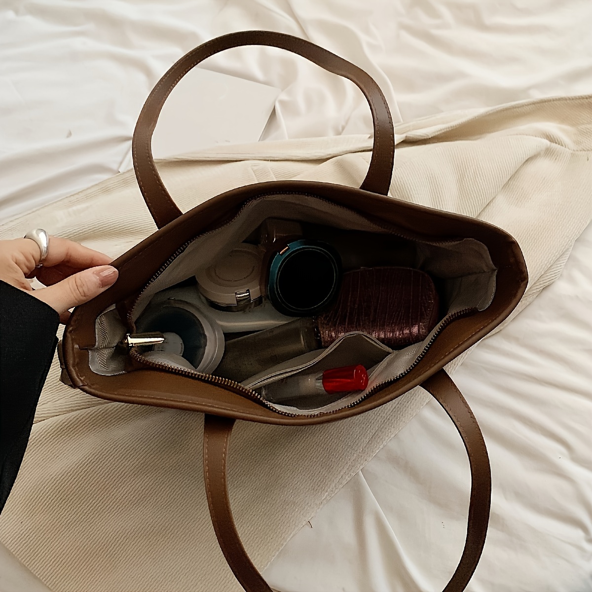 Set di due pezzi: borsa tote alla moda in velluto a coste, realizzata in tessuto morbido,