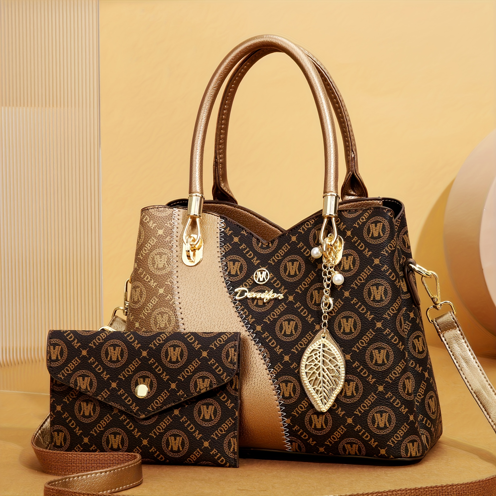 Borsa elegante Perfect Lily con motivo a M e base marrone, tracolla regolabile