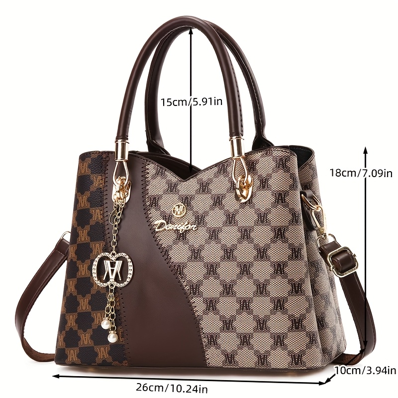 Borsa a spalla da donna in stile retrò alla moda con stampa di lettere, grande capacità, tracolla fissa e fodera, perfetta per l’uso quotidiano e i […]