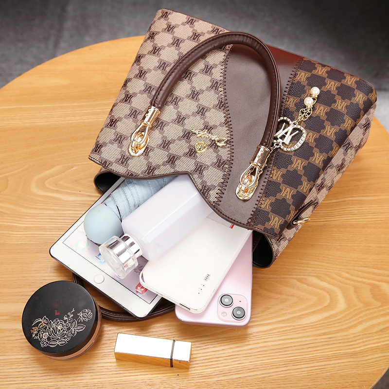€44,70Il prezzo originale era: €44,70.€23,50Il prezzo attuale è: €23,50.Borsa elegante Perfect Lily con motivo a M e base marrone, tracolla regolabile
