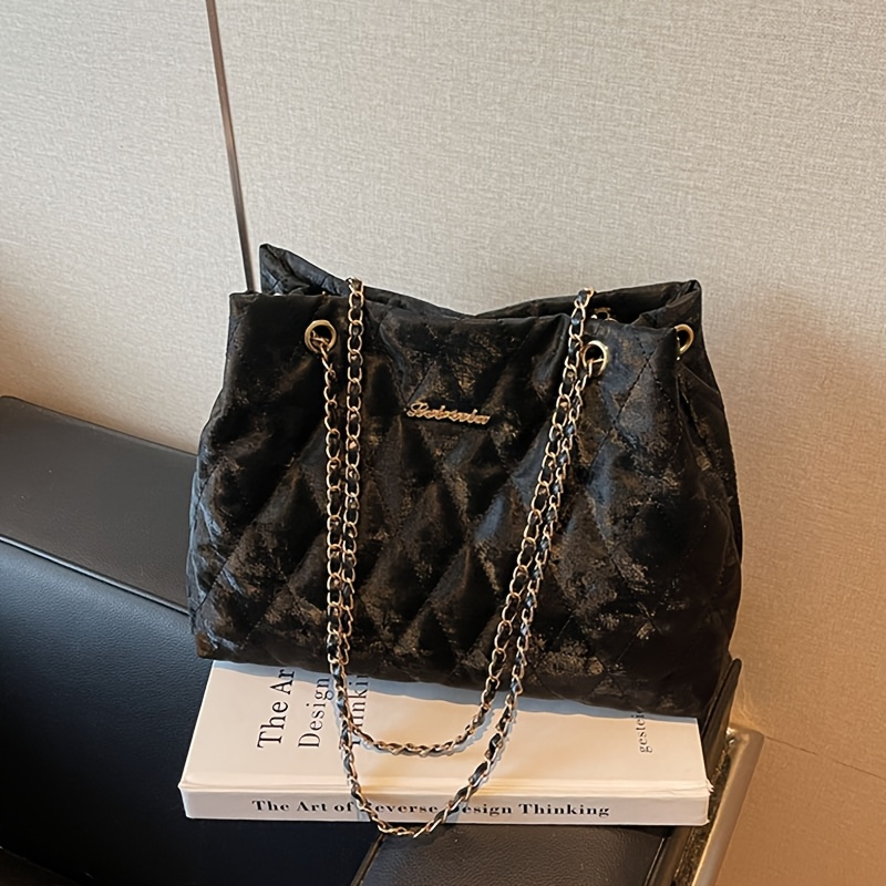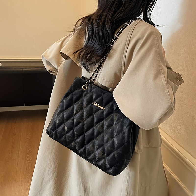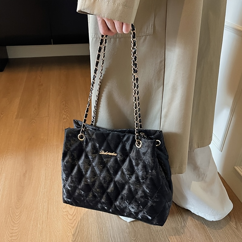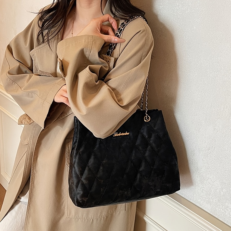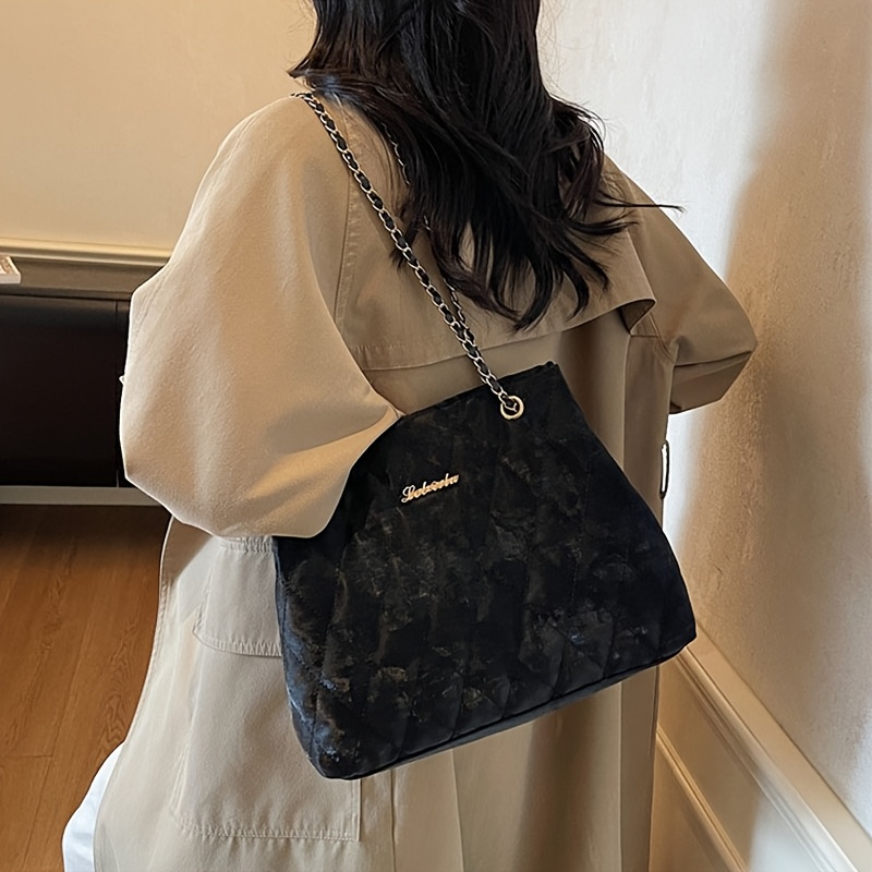 Borsa a tracolla da donna in velluto a coste con catena,