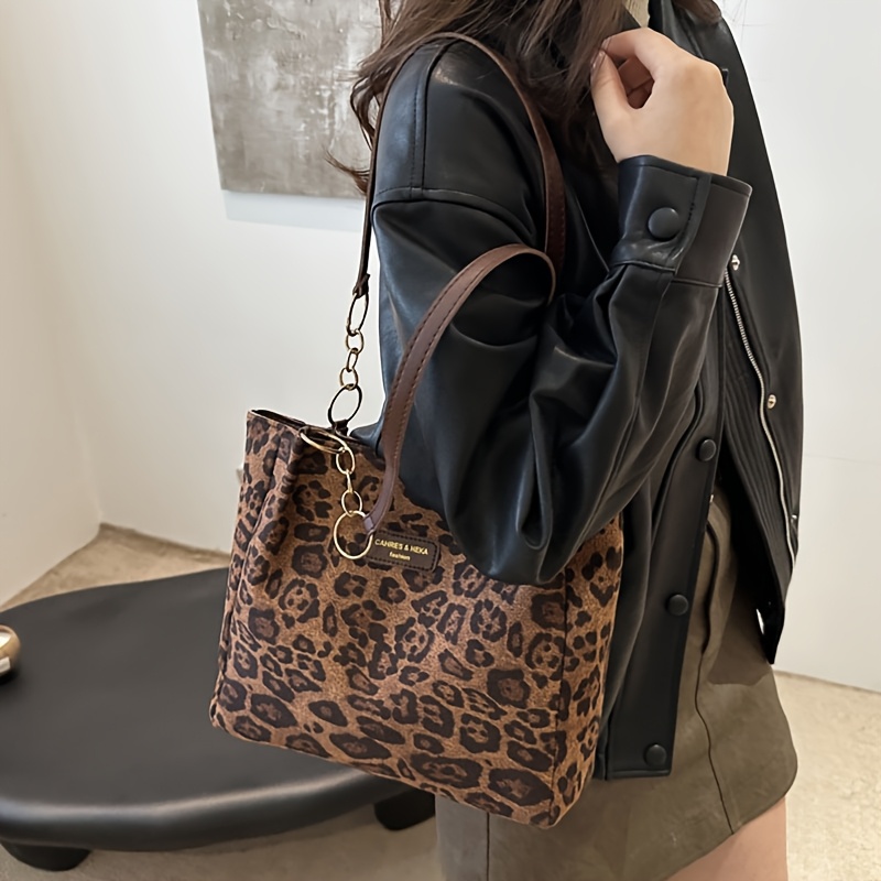Borsa a tracolla da donna nuova, trendy con stampa leopardata,