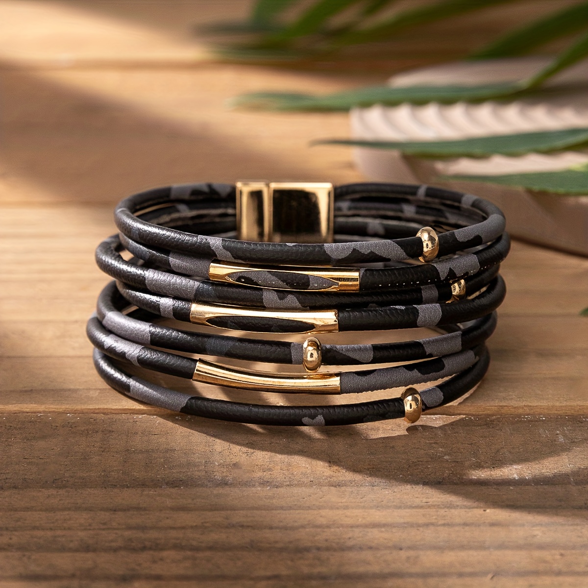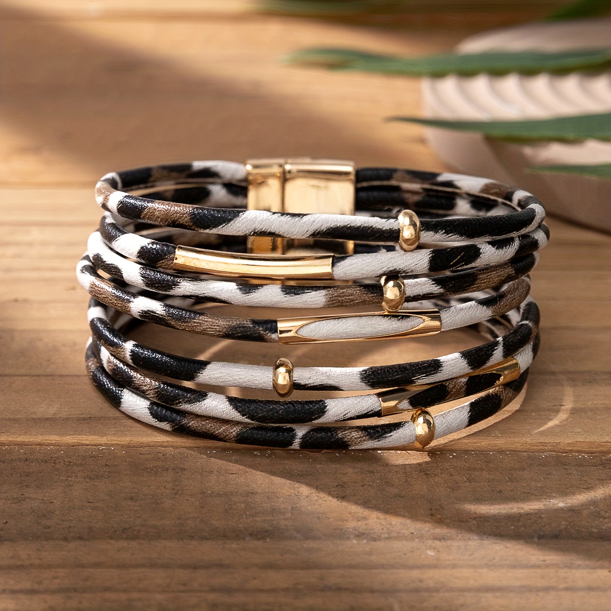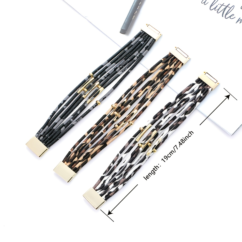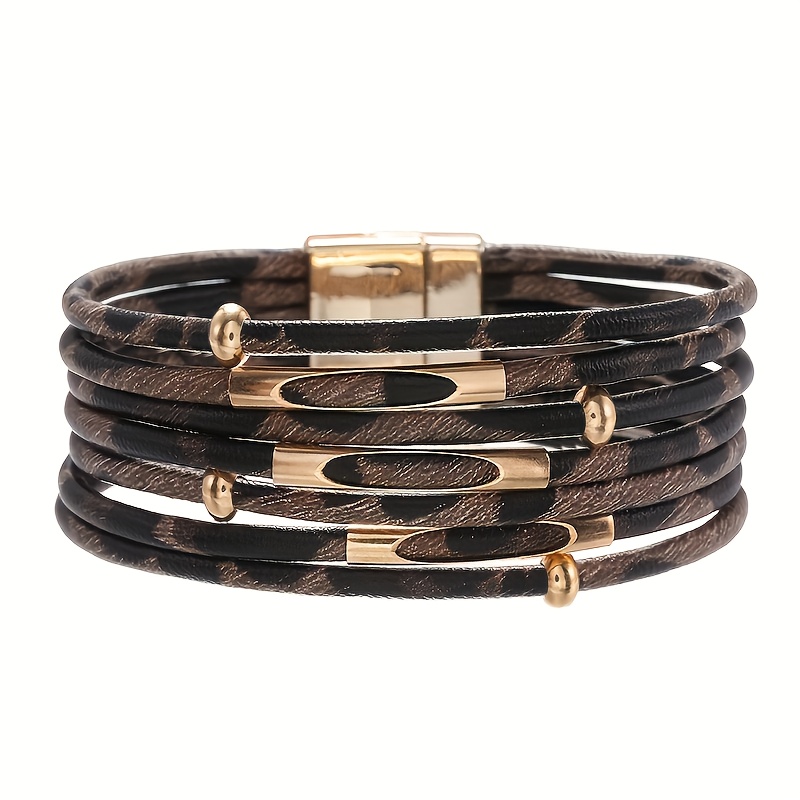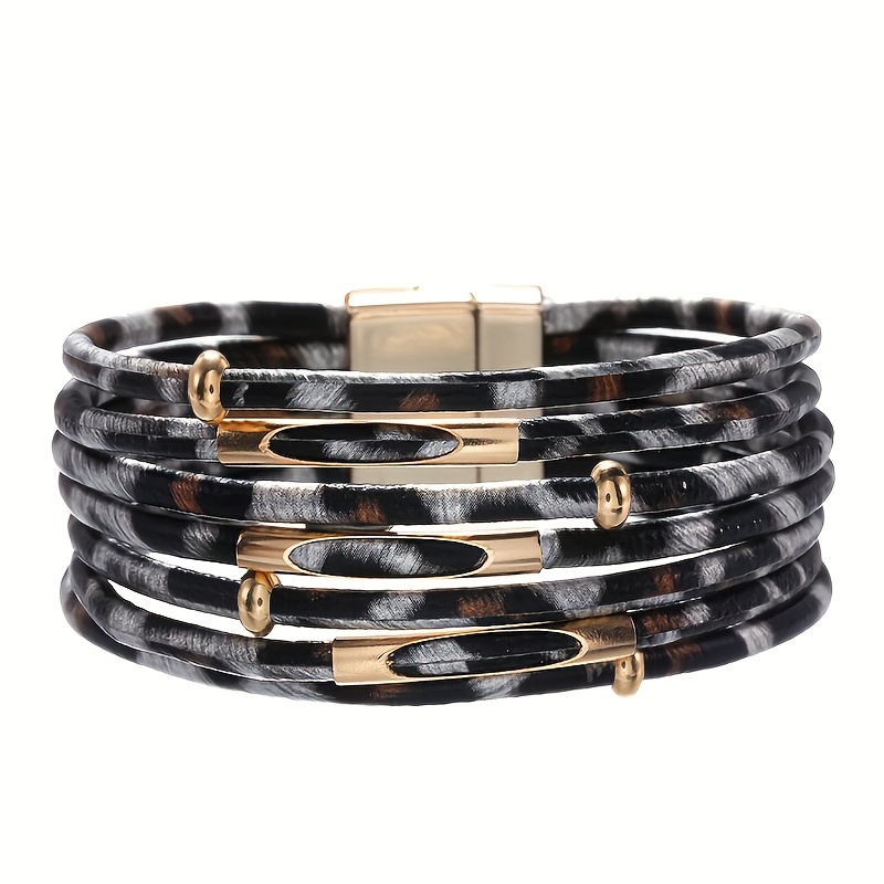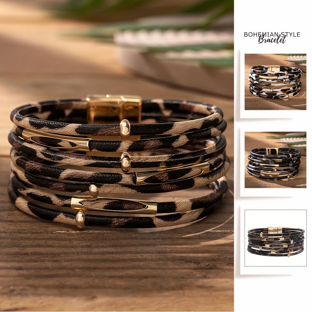 21 Febbraio 2026Braccialetto a più file Bracciale avvolgente in pelle PU con stampa leopardata con fibbia magnetica Regalo gioielli braccialetto impilabile bohémien