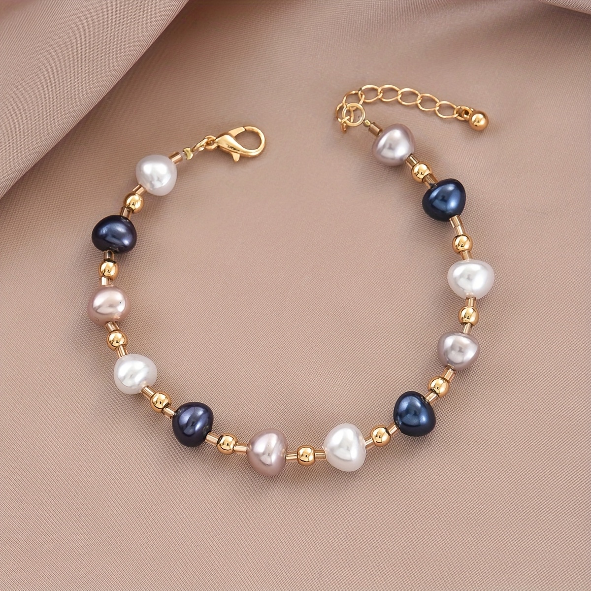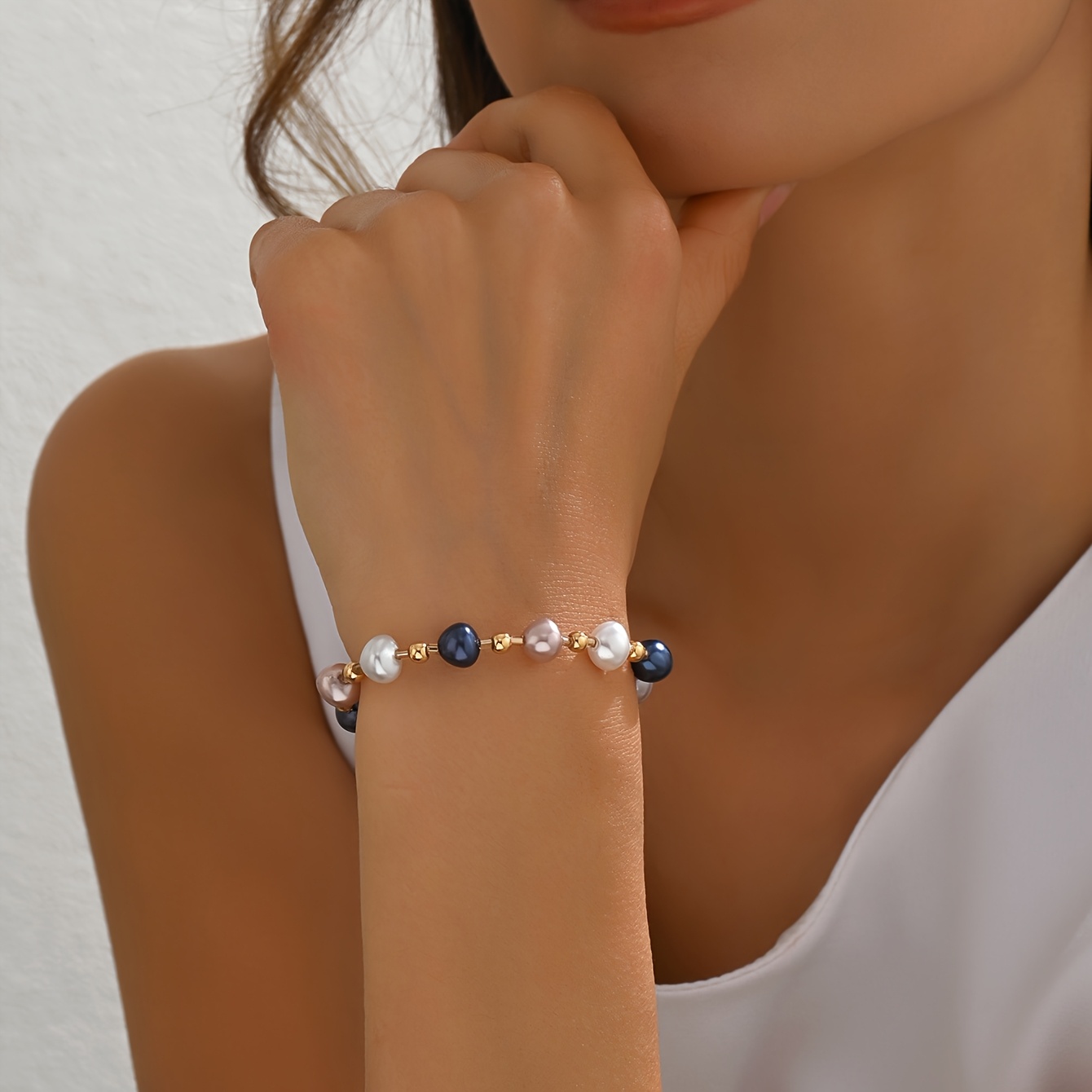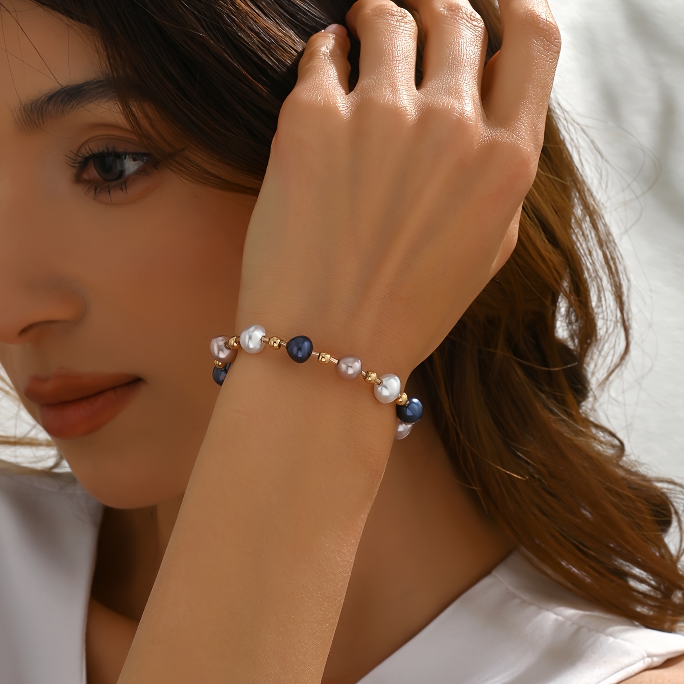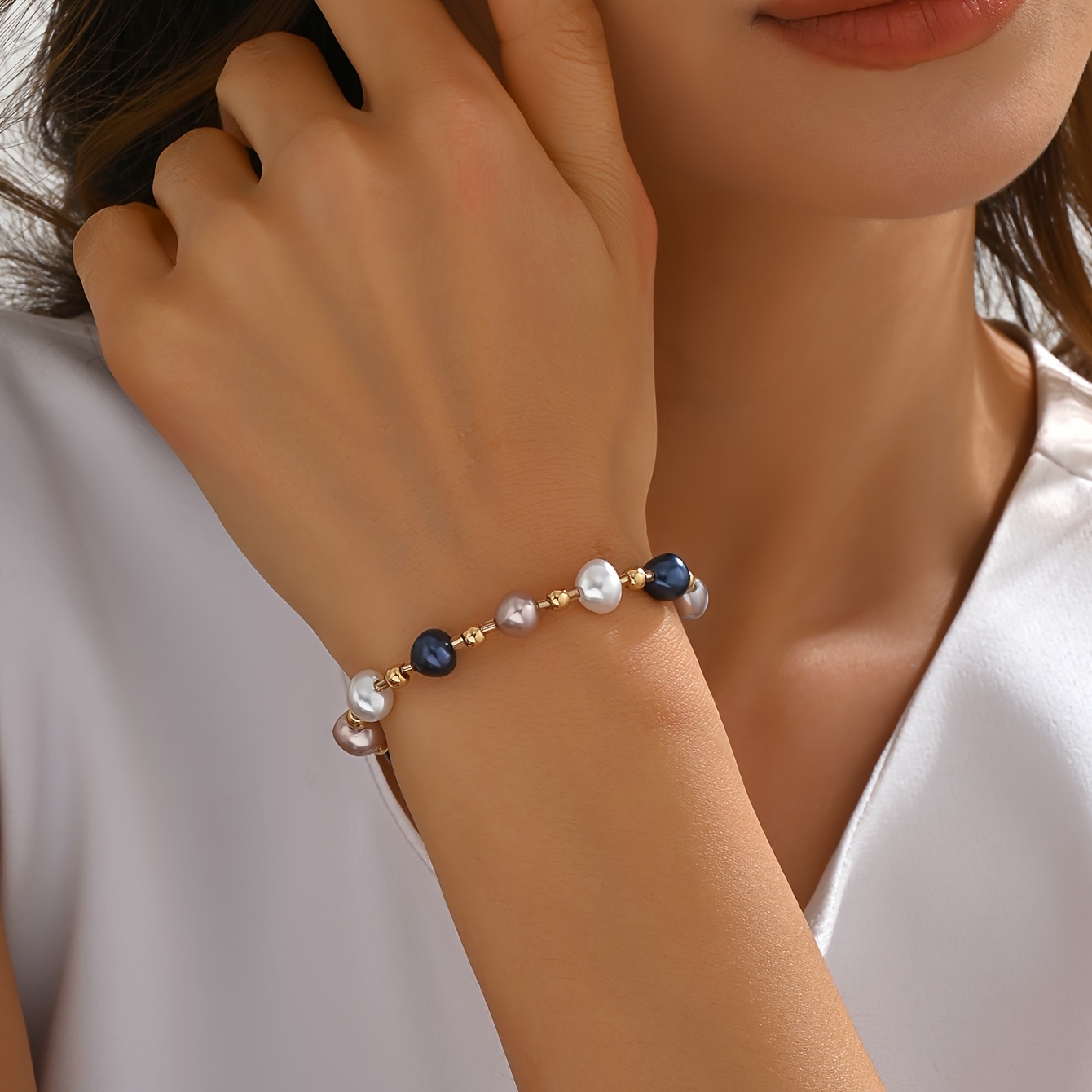 Bracciale elegante e minimalista da donna con perle irregolari stile barocco,