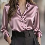 Camicetta in raso tinta unita da donna | Stagione primavera/autunno, maniche lunghe
