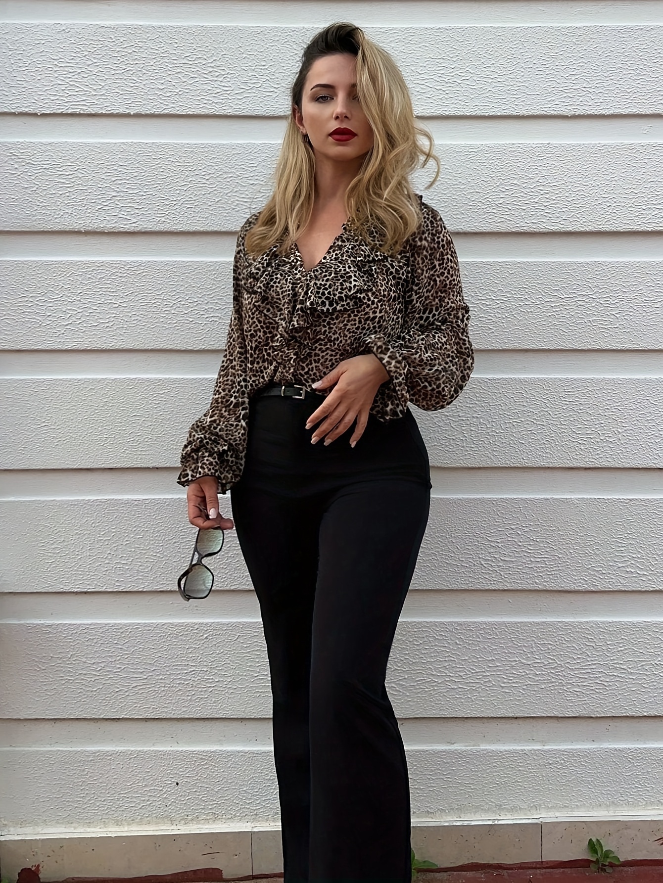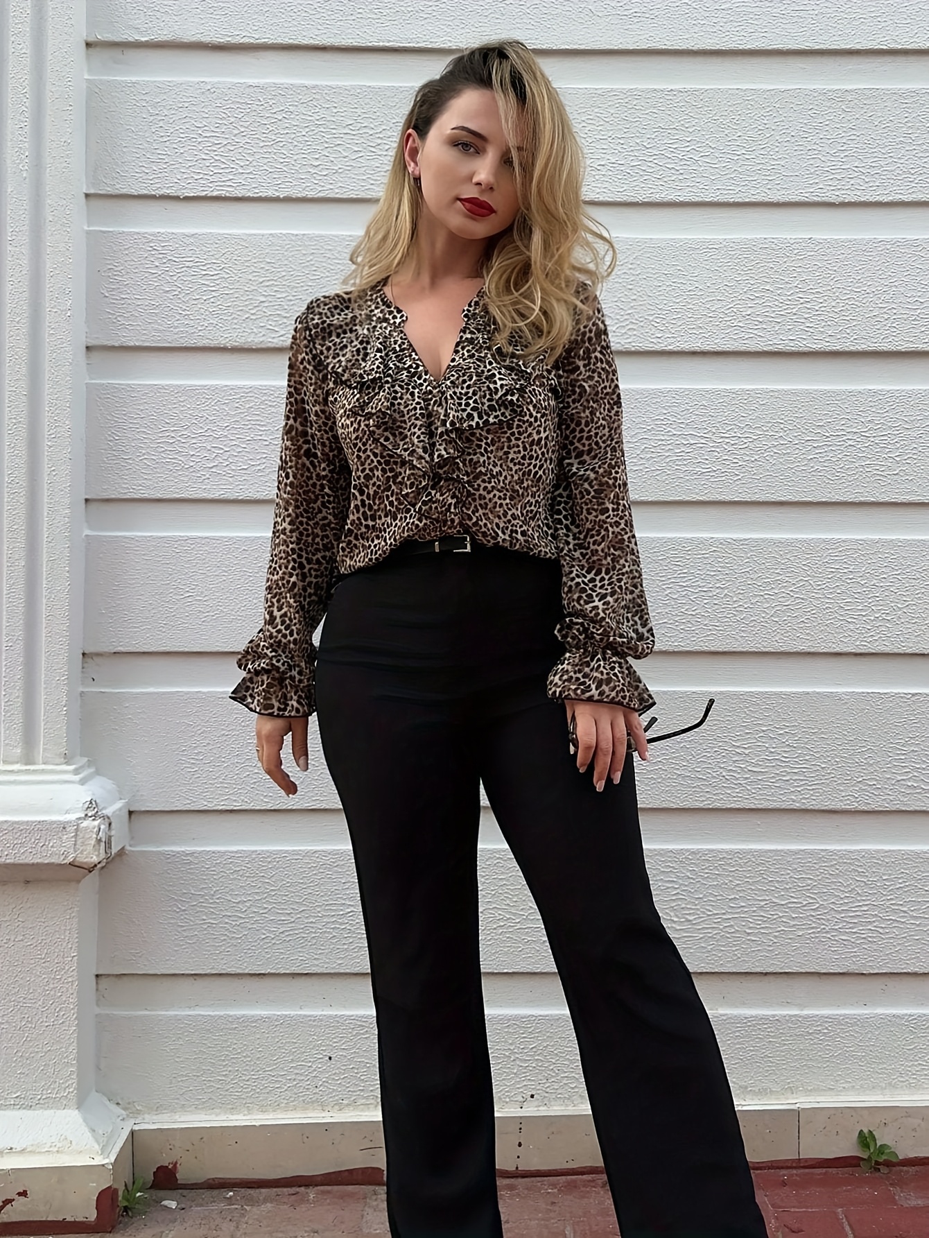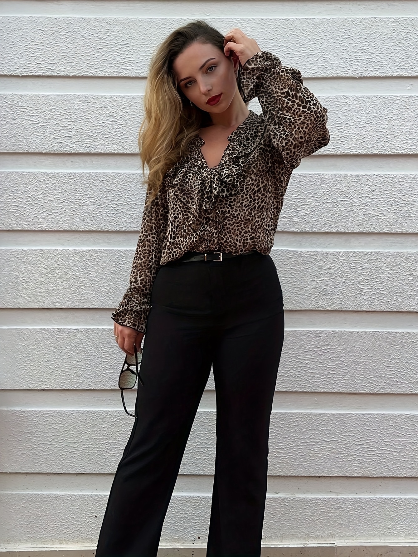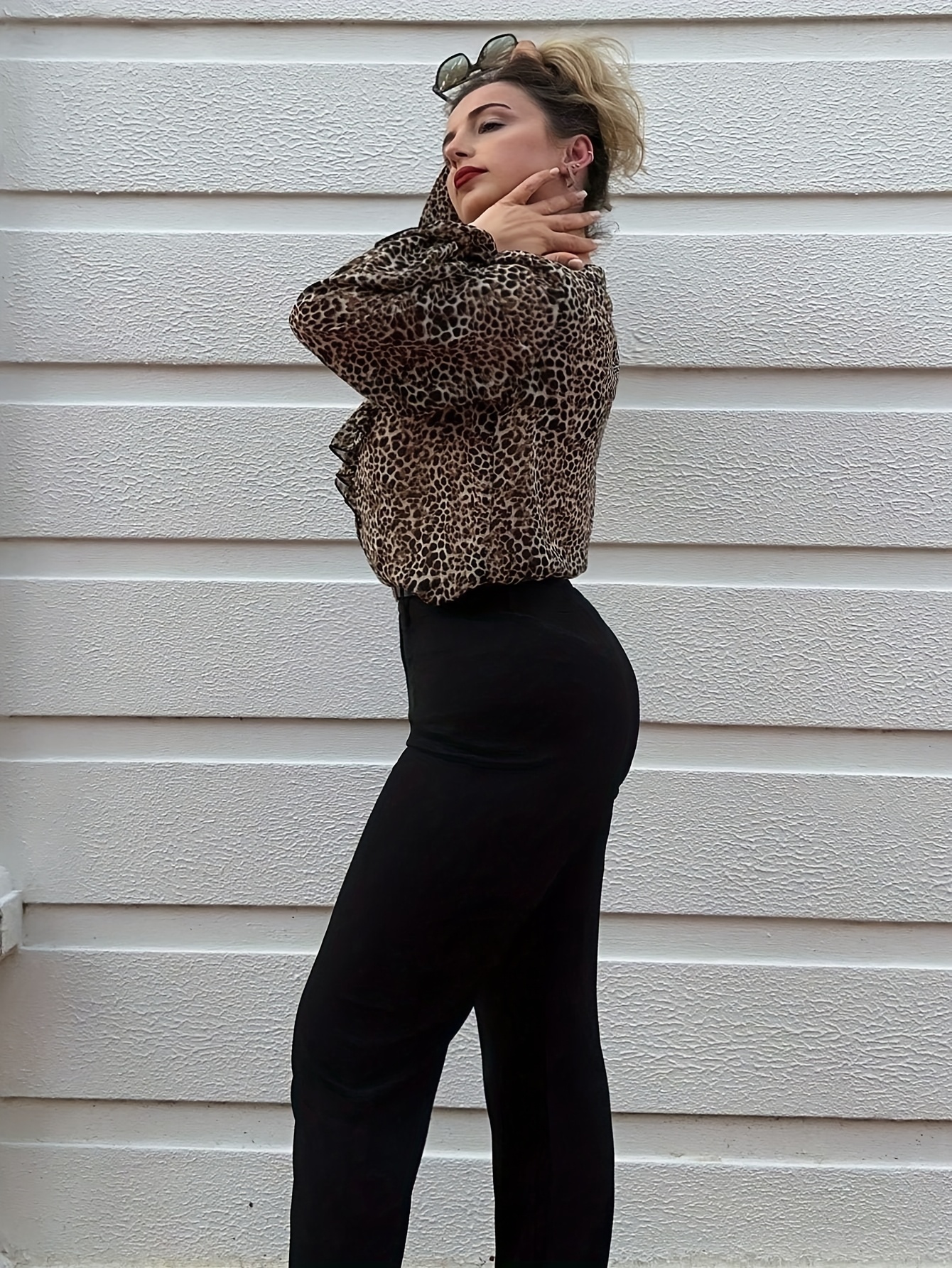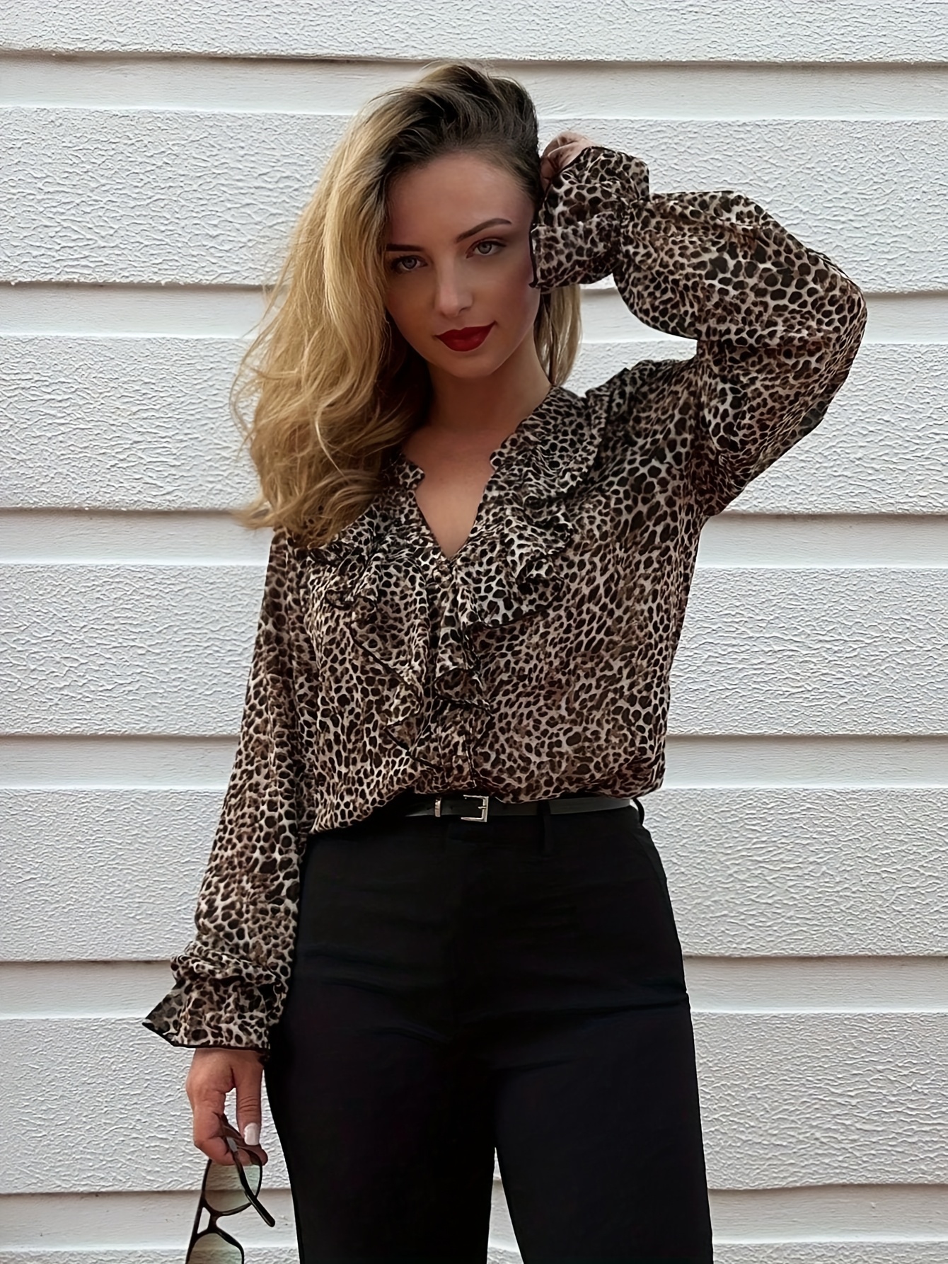 16 Aprile 2026Camicetta da donna elegante a maniche lunghe con stampa leopardata, top stampato in chiffon perlato di alta qualità con protezione solare per primavera/estate, design sottile con bottoni, top da festa alla moda e comodo per donna