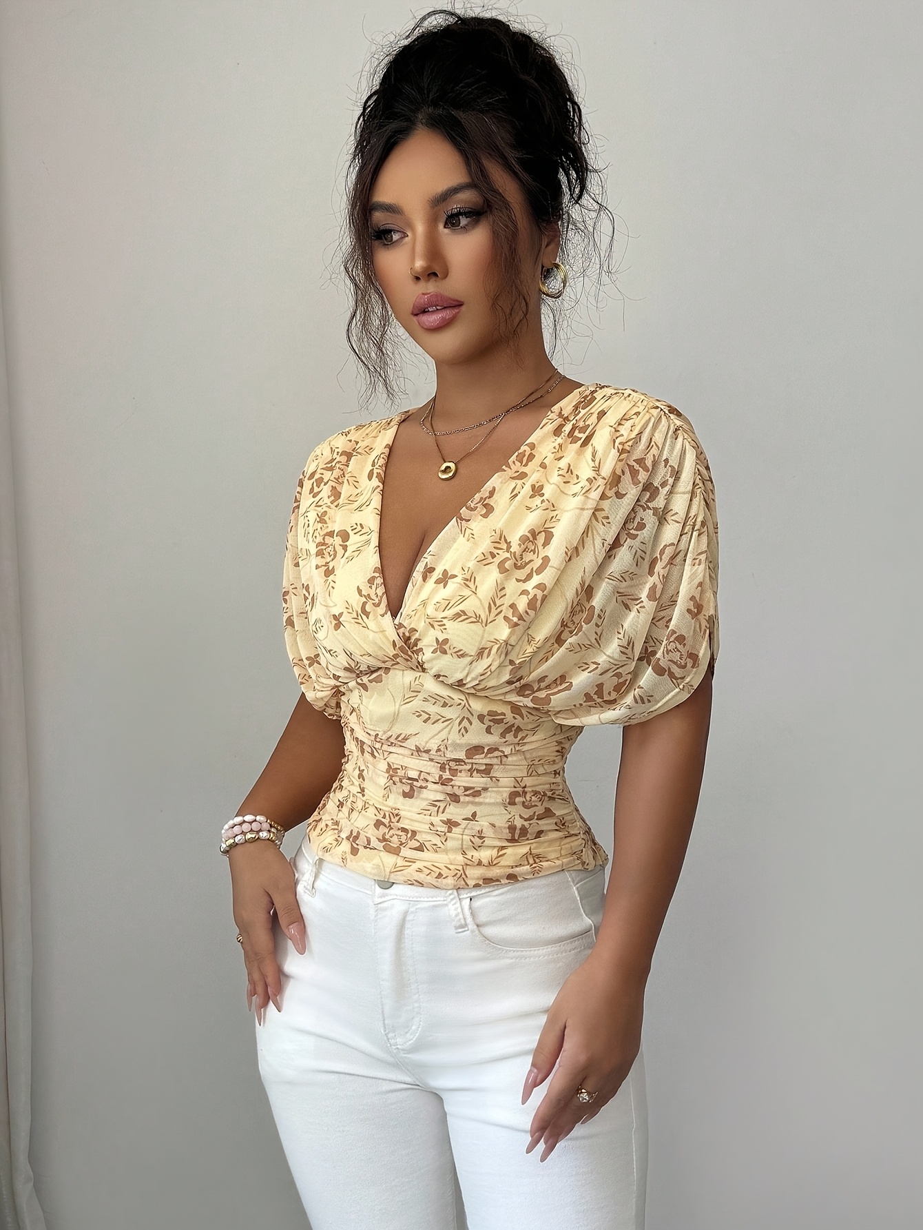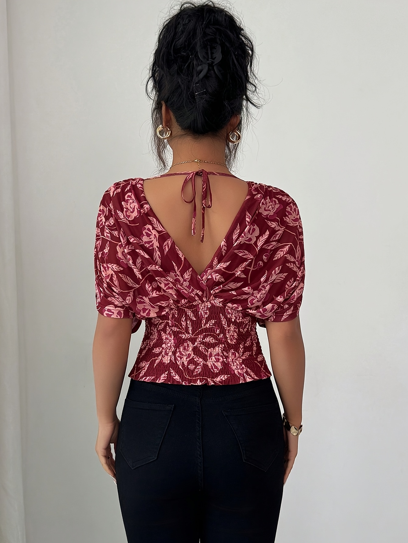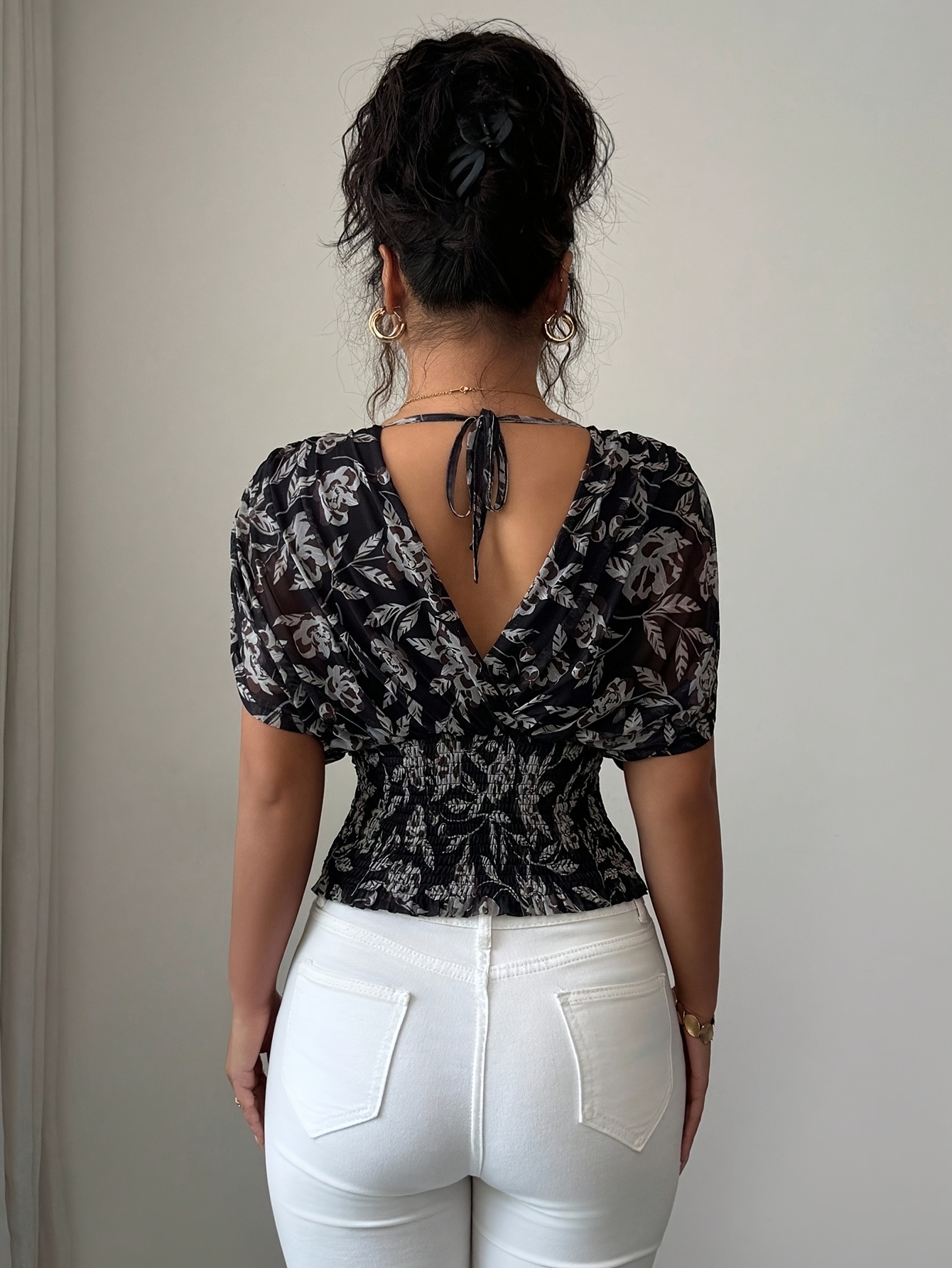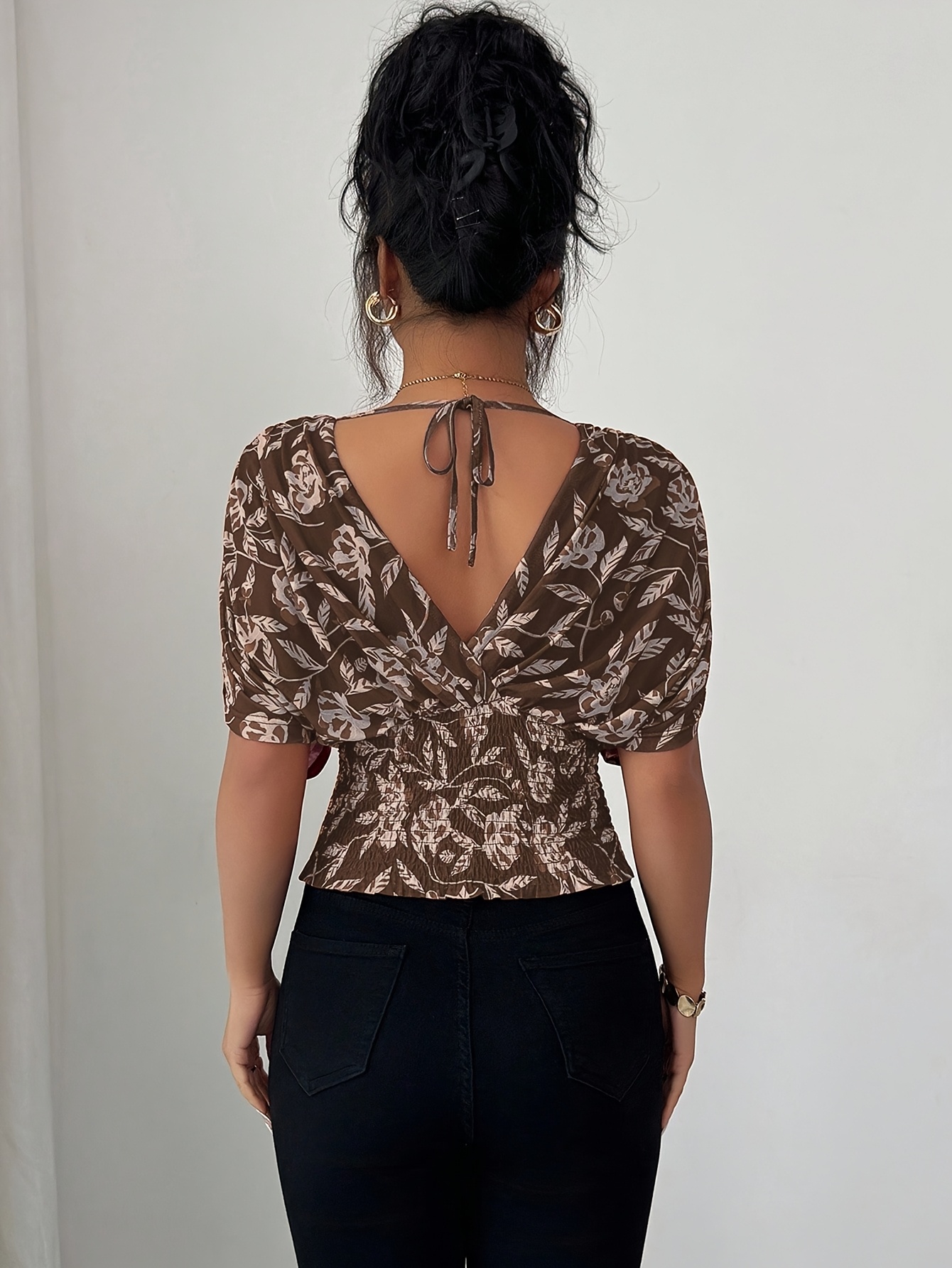 15 Aprile 2026Camicetta da donna elegante con stampa e cintura incrociata