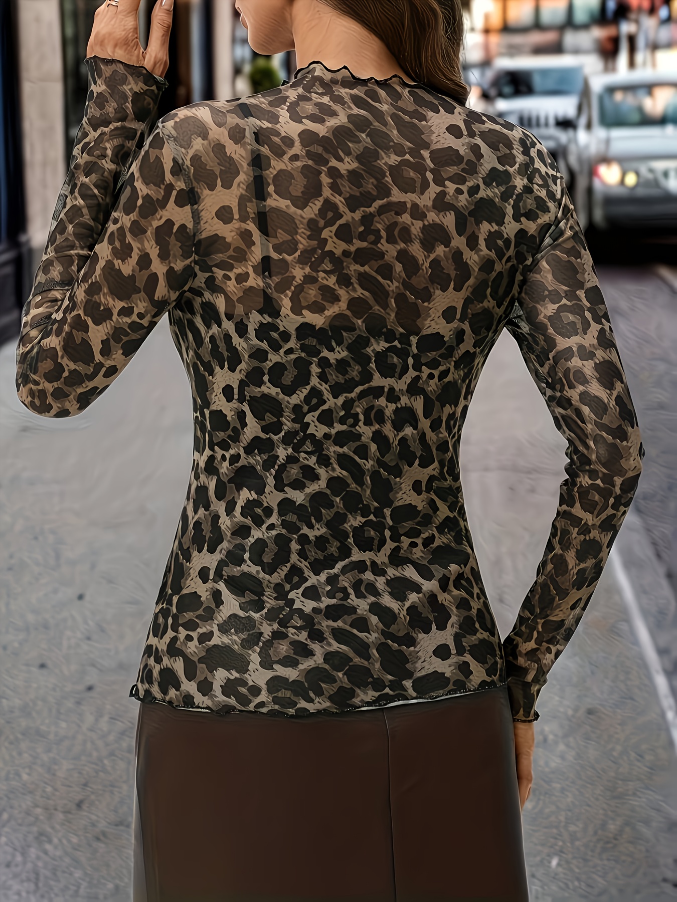 16 Aprile 2026Camicetta da donna elegante e sexy con stampa leopardata in rete aderente