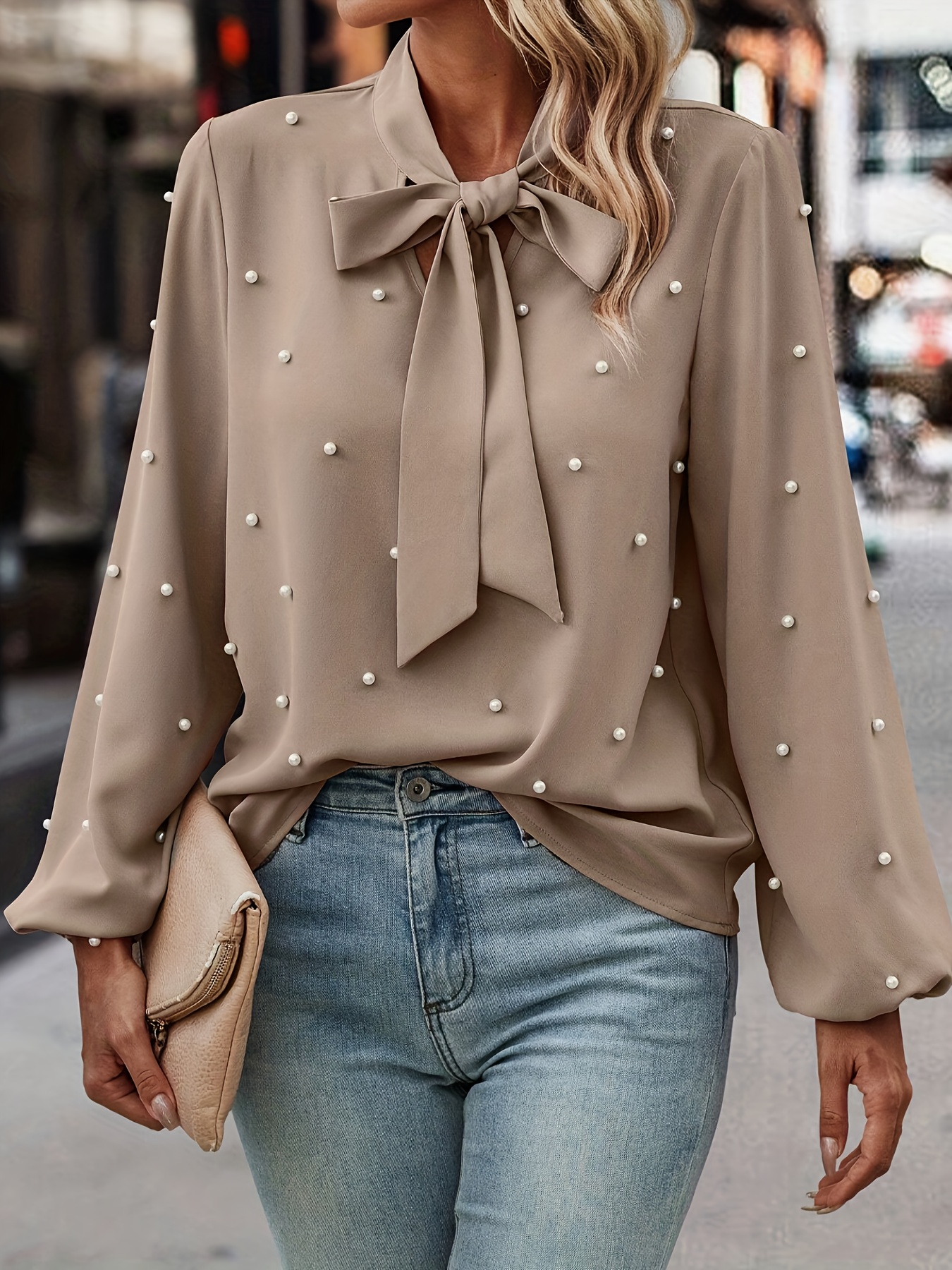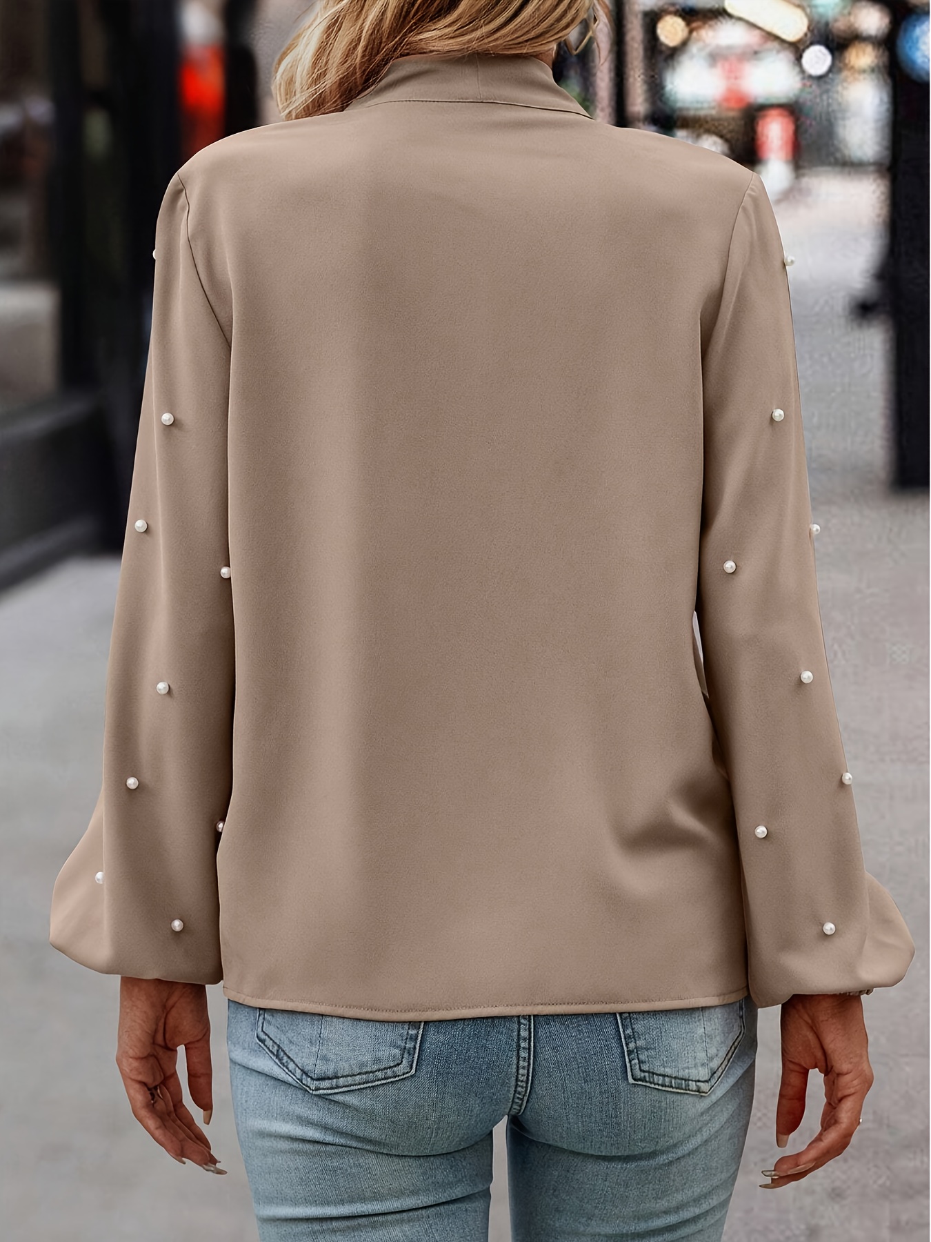 26 Gennaio 2026Maglia da donna elegante con colletto a papillon e perline, maniche a sbuffo – Camicia a maniche lunghe con silhouette a H, tinta unita con bottoni decorativi, top versatile lavabile in lavatrice per tutte le stagioni, ideale per look casual e formale, bluse da donna
