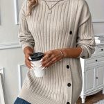 Maglione Elegante a Collo Alto, Maniche Lunghe