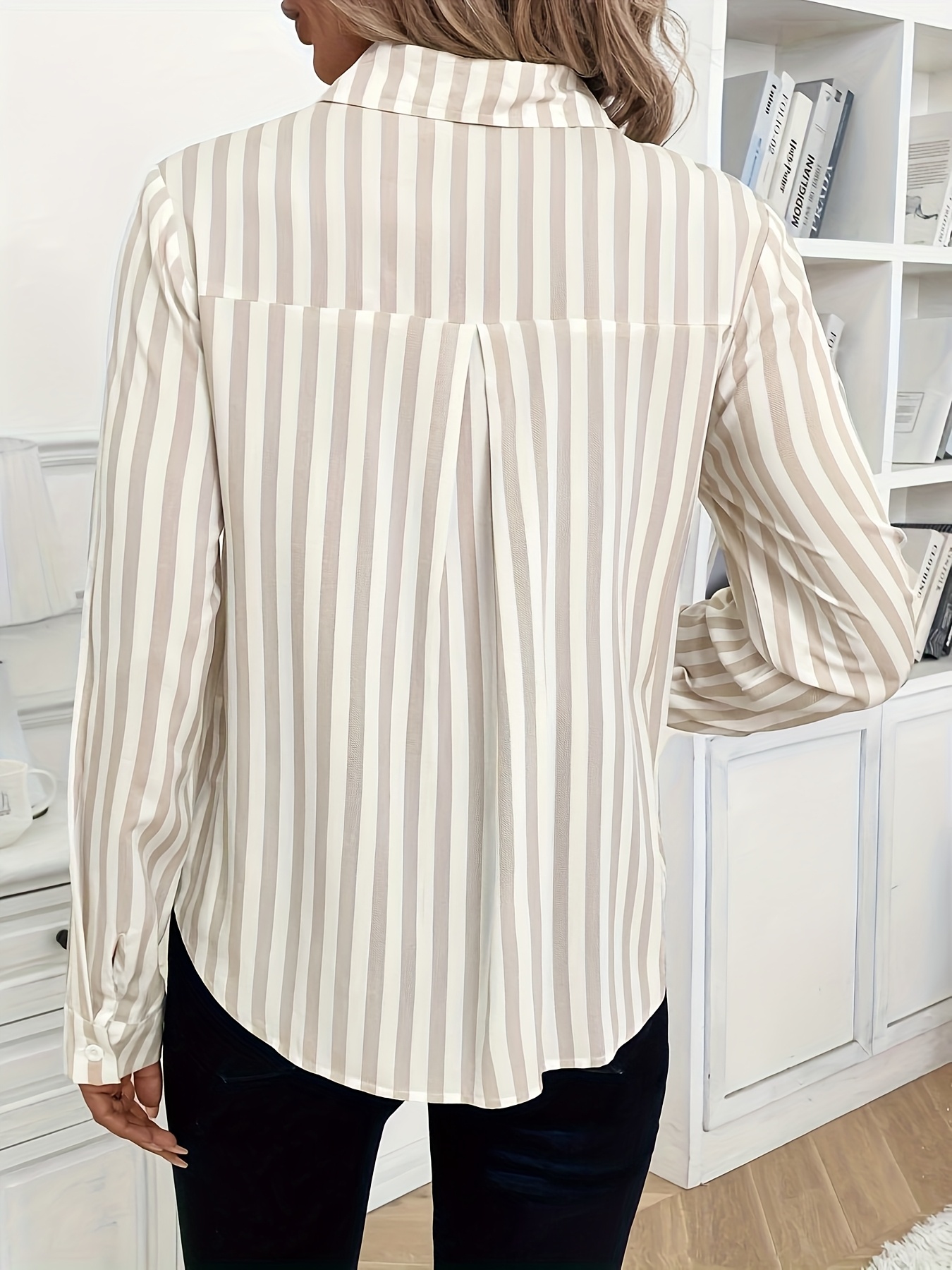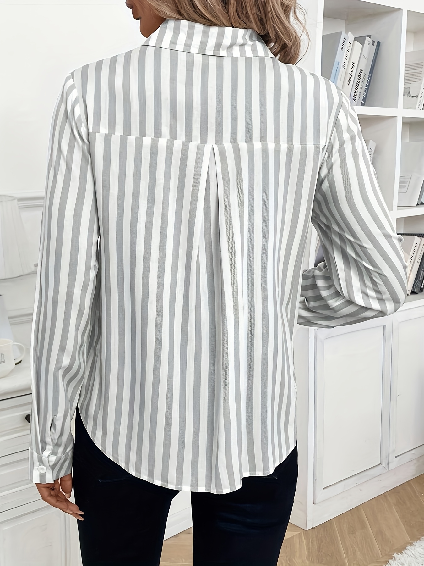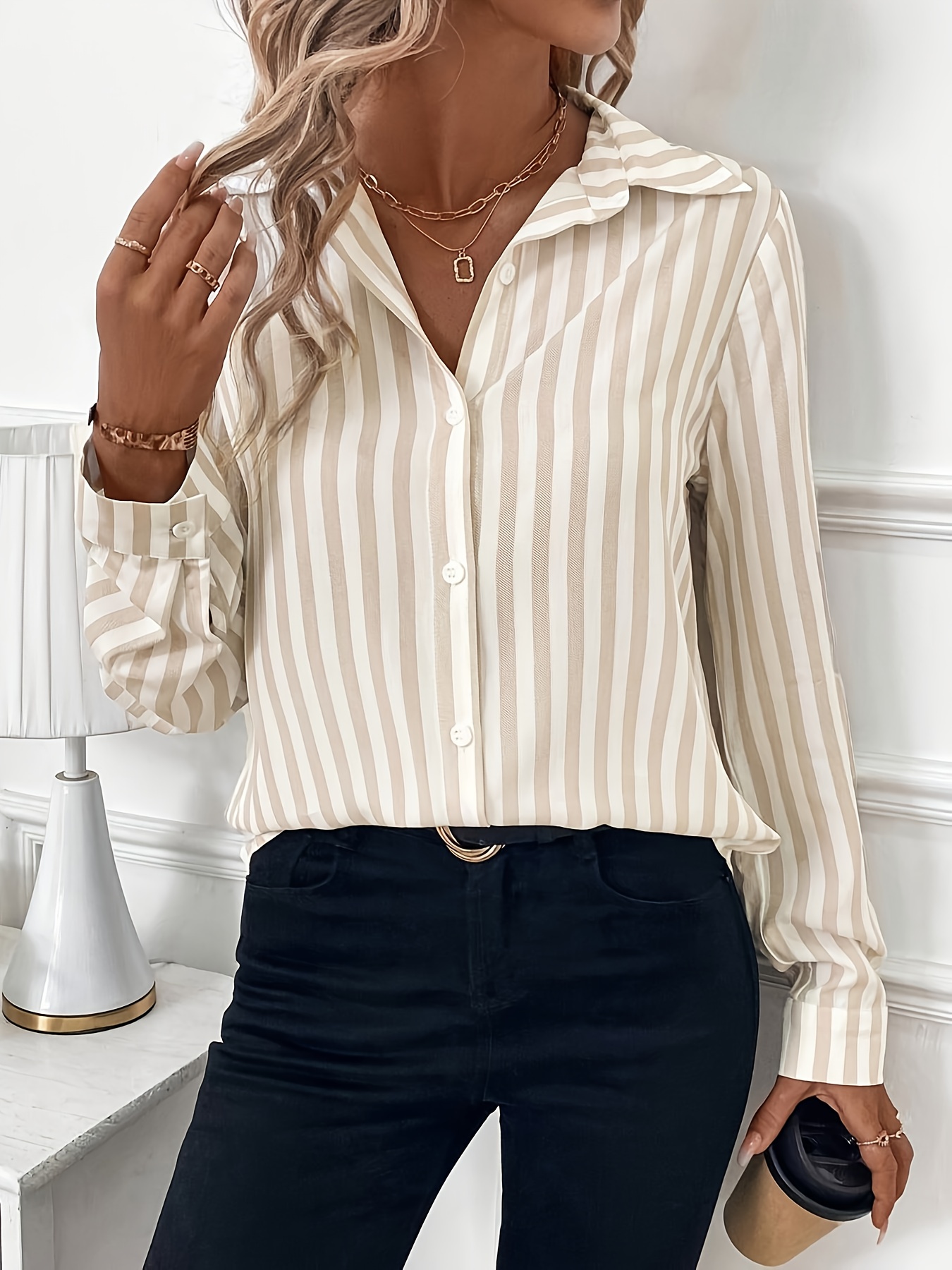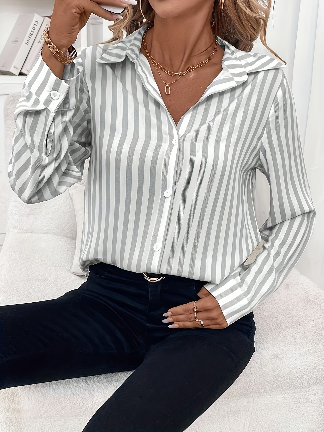28 Gennaio 2026Camicia a maniche lunghe a righe elegante | Camicia a maniche lunghe con colletto a revers e dettagli con bottoni per tutte le stagioni
