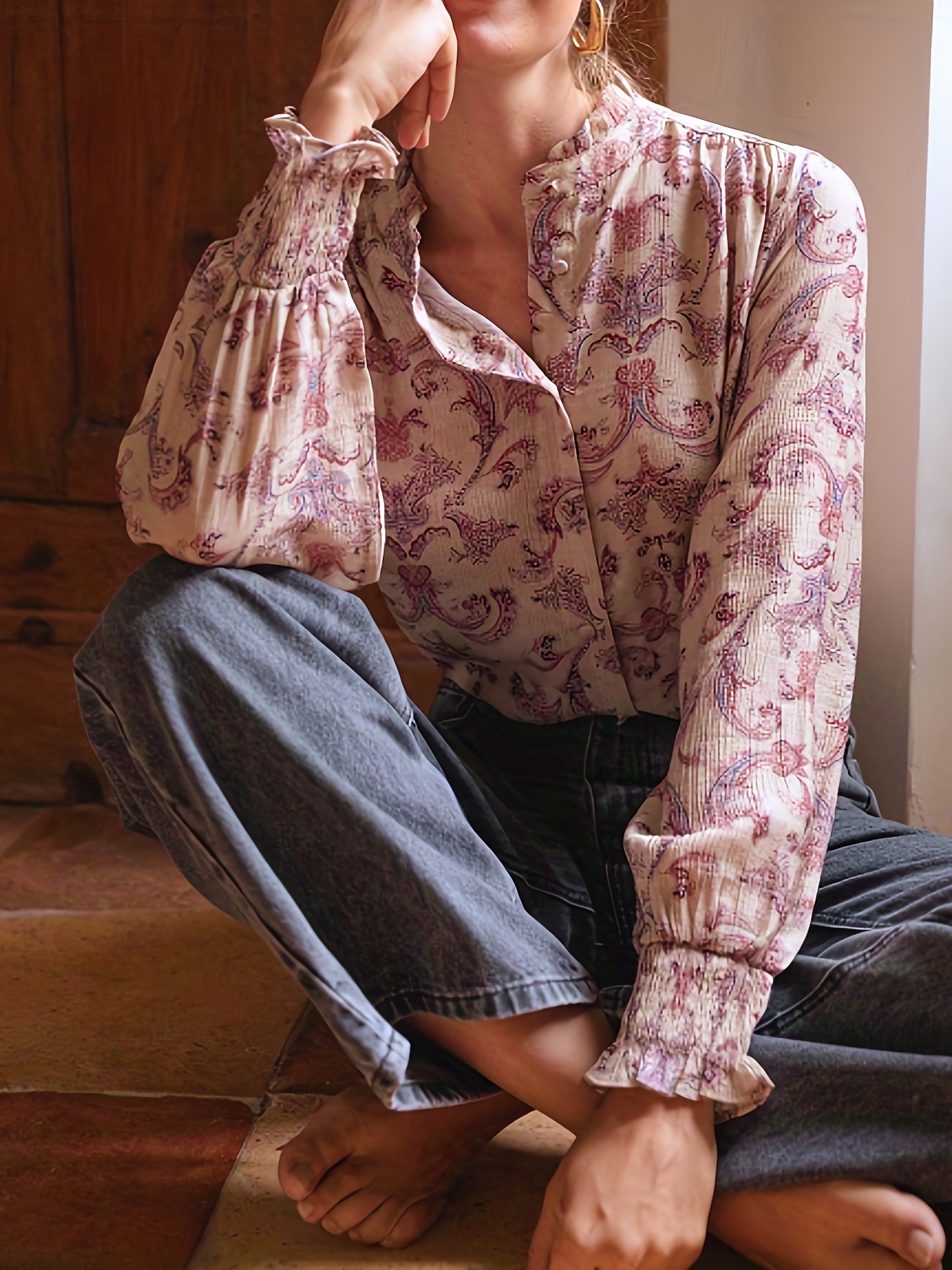 Camicetta da donna a maniche lunghe, elegante e alla moda, con stampa floreale