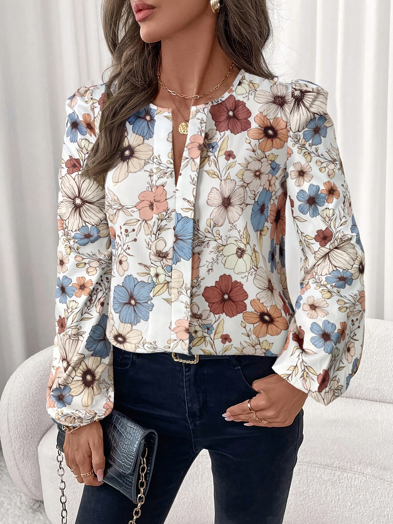 28 Gennaio 2026Camicia a Maniche Lunghe con Scollo a V e Stampa per Donna