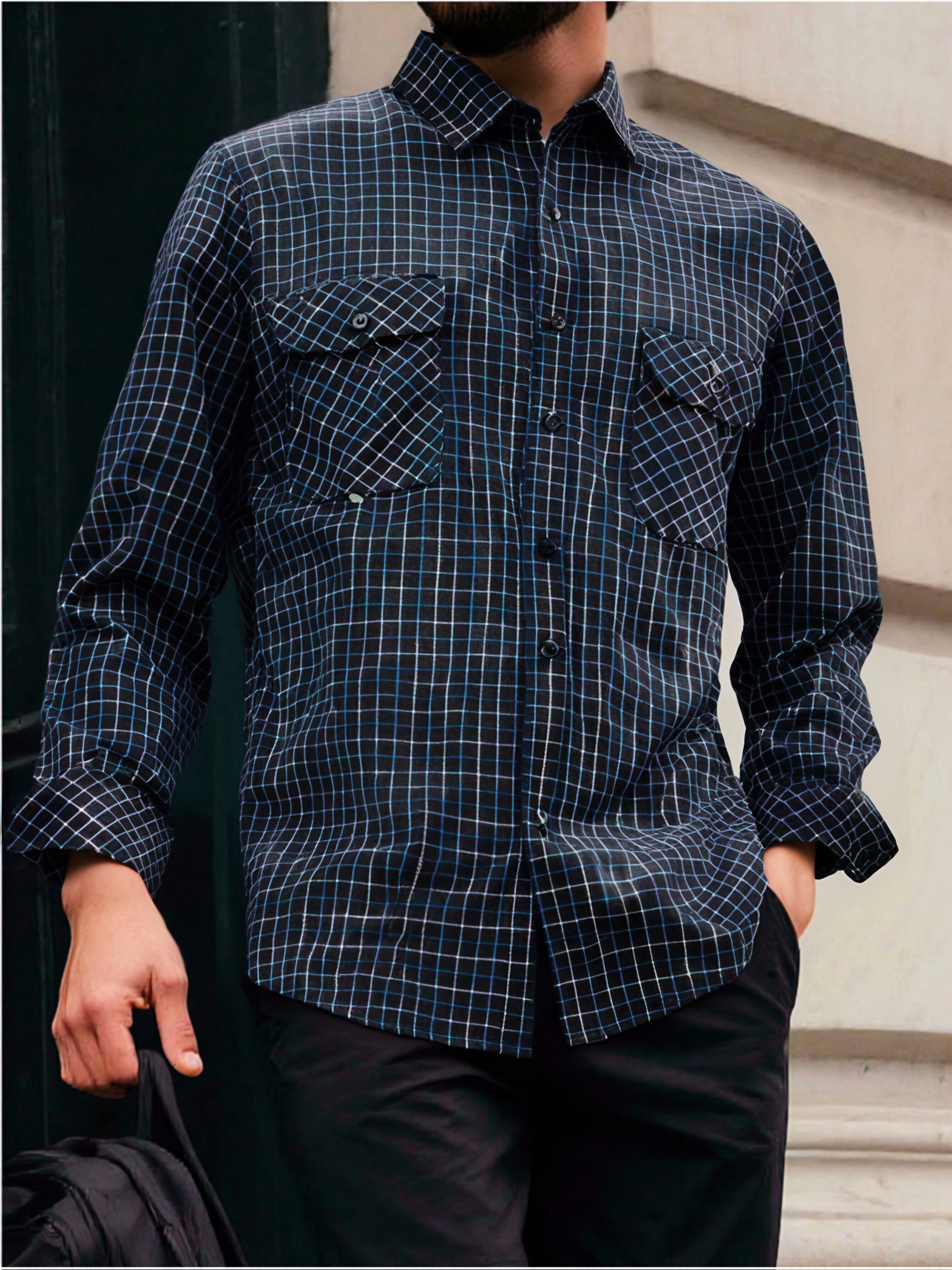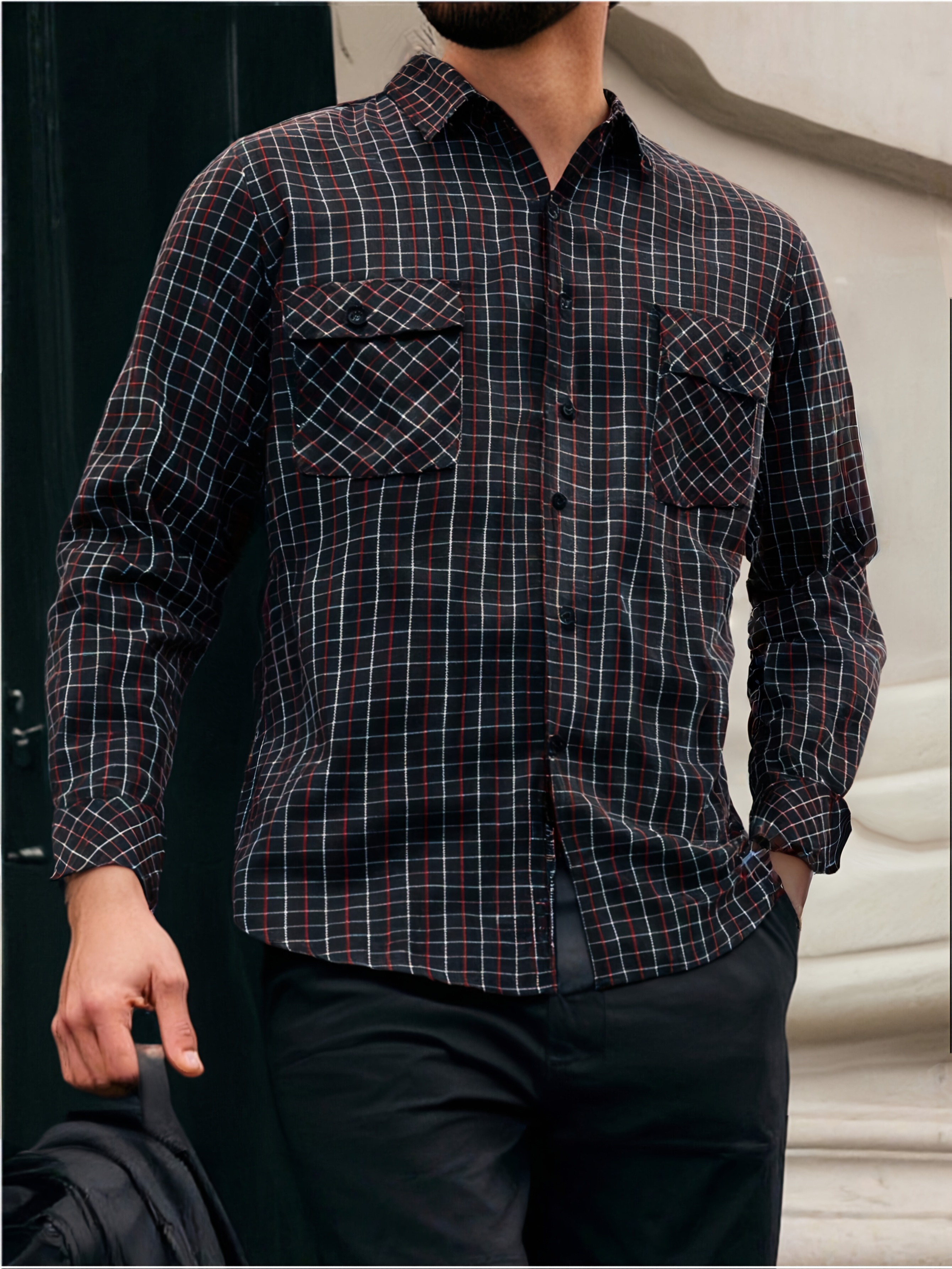 15 Aprile 2026Camicia a quadri vintage da uomo a maniche lunghe con doppie tasche, camicia casual slim-fit per primavera e autunno, top versatile disponibile in vari colori per il pendolarismo quotidiano