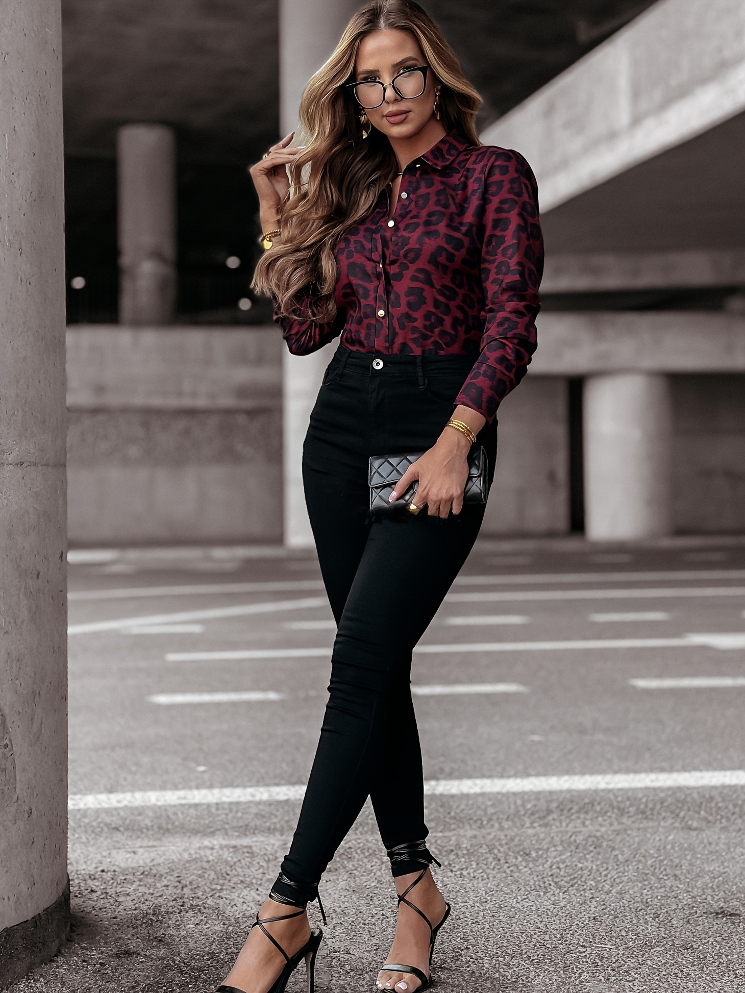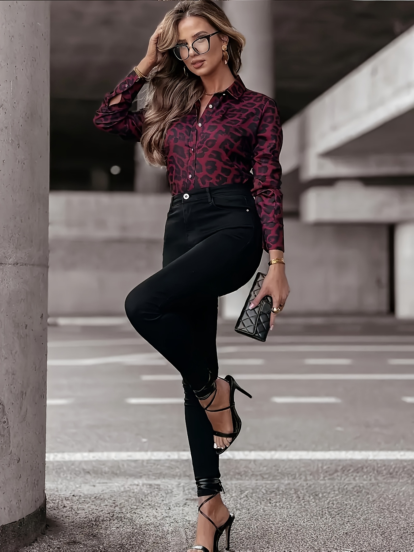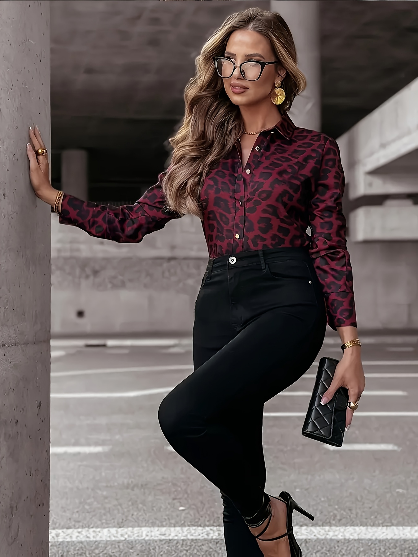 28 Gennaio 2026Camicia aderente da donna con stampa leopardata rossa vino