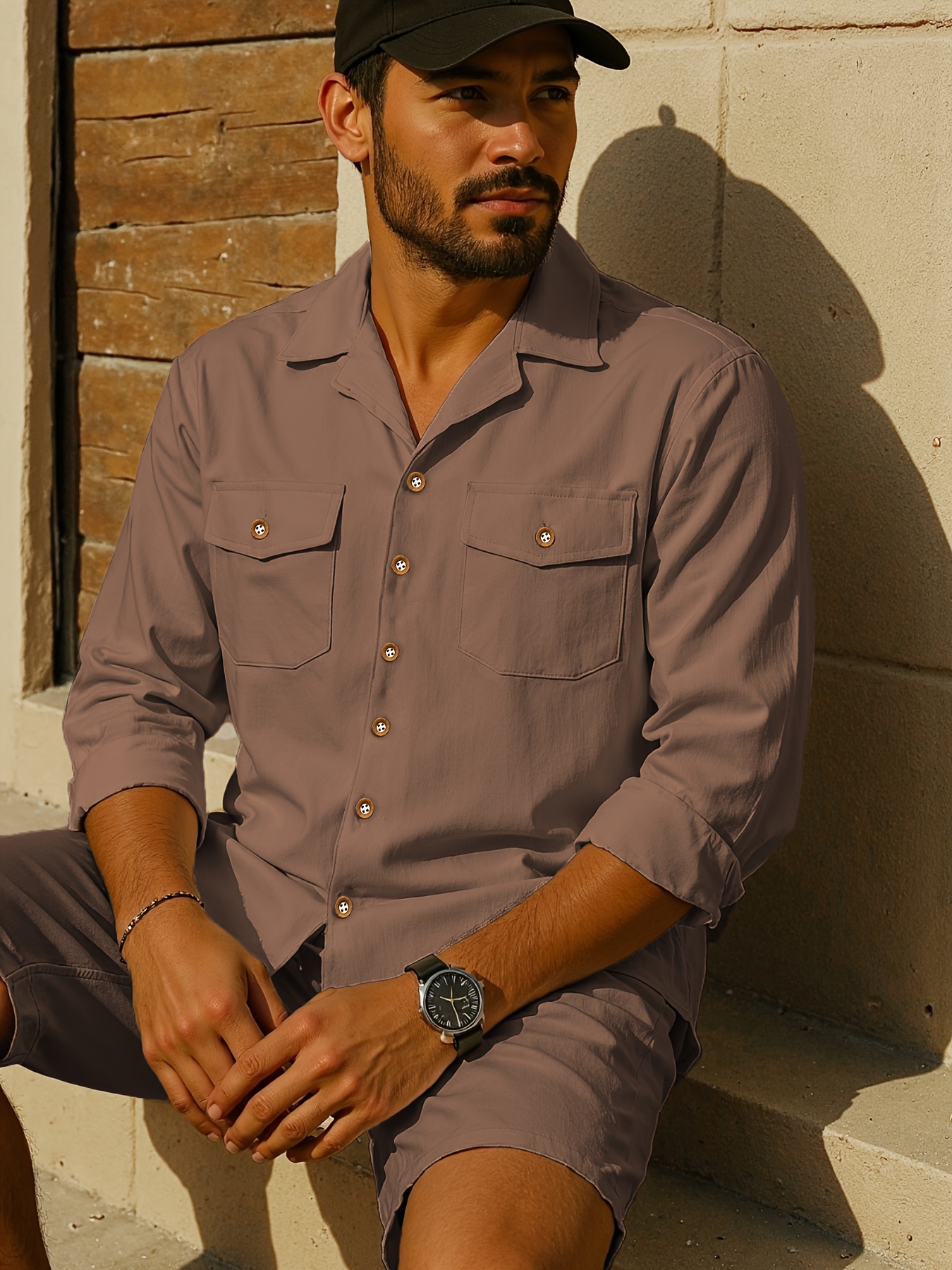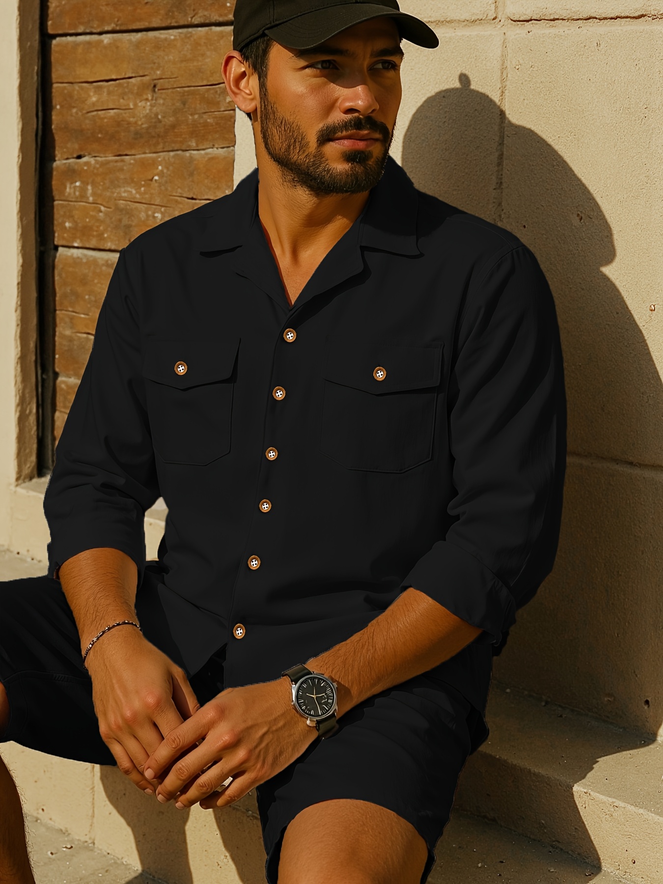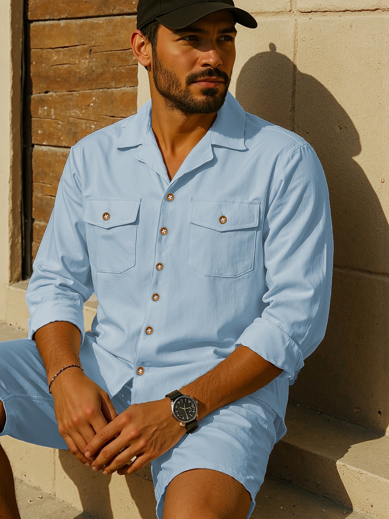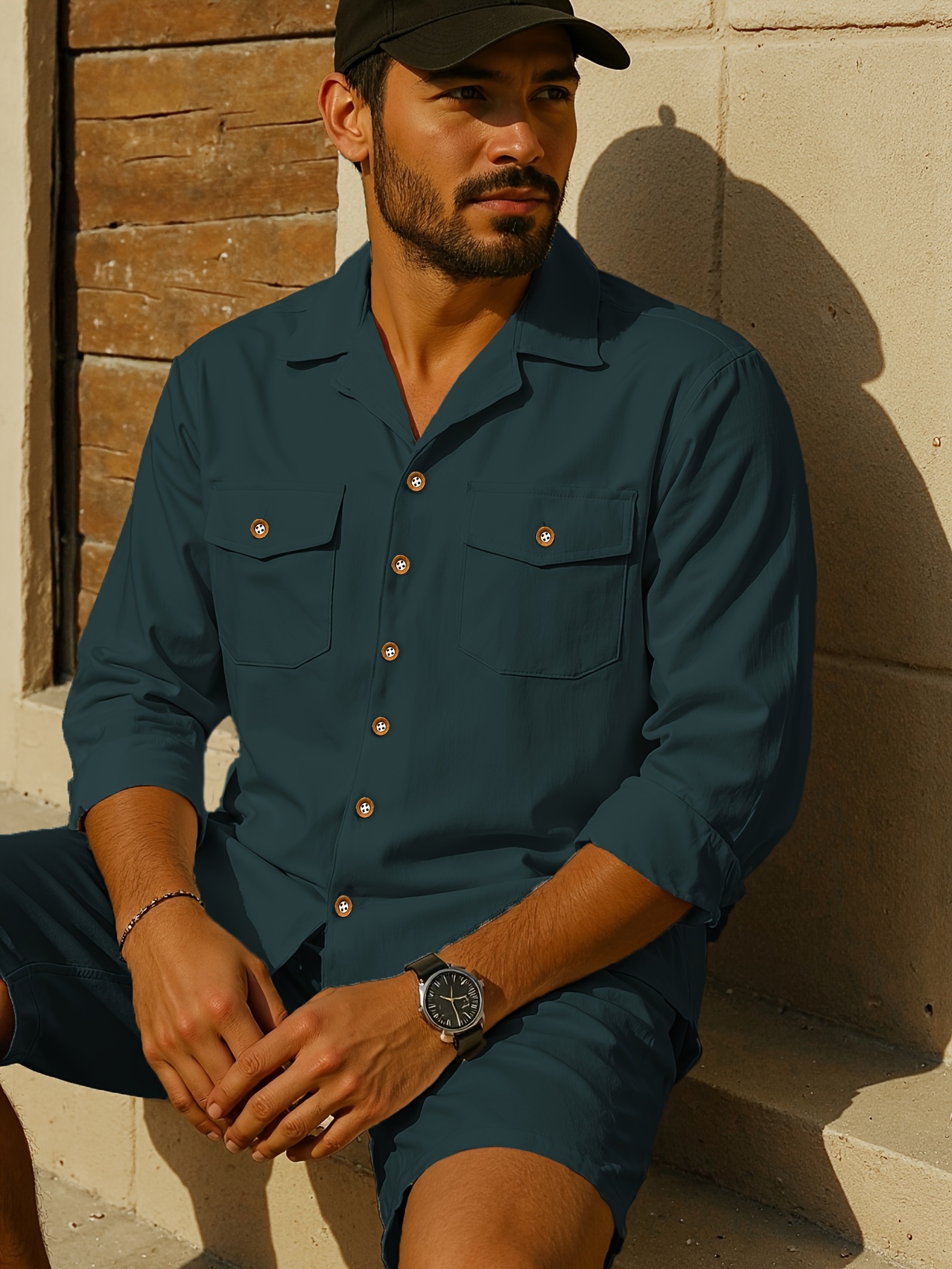 15 Aprile 2026Camicia casual da uomo traspirante in lino alla moda, tinta unita con colletto e doppie tasche, perfetta per un outfit da vacanza confortevole