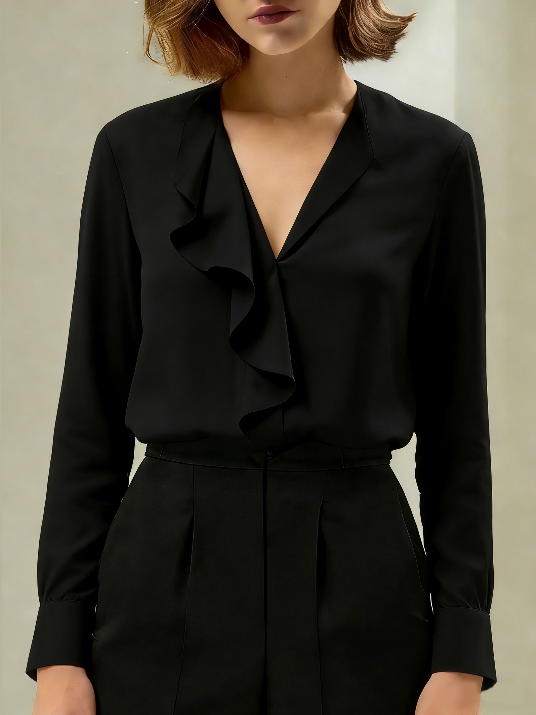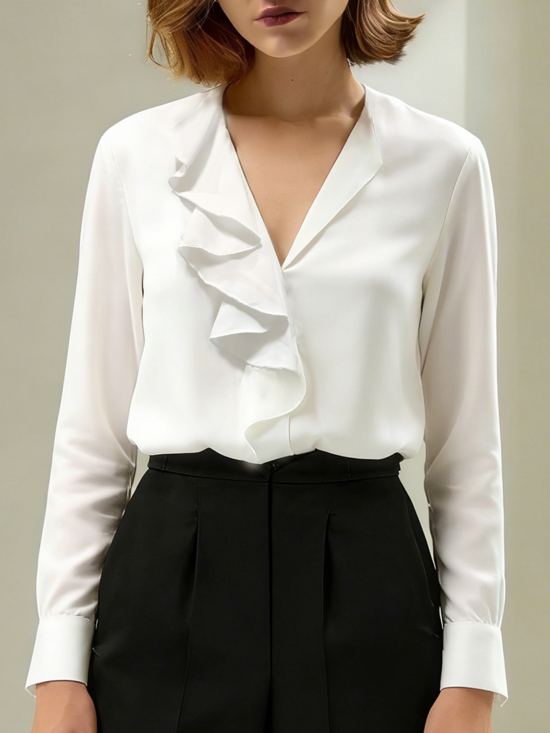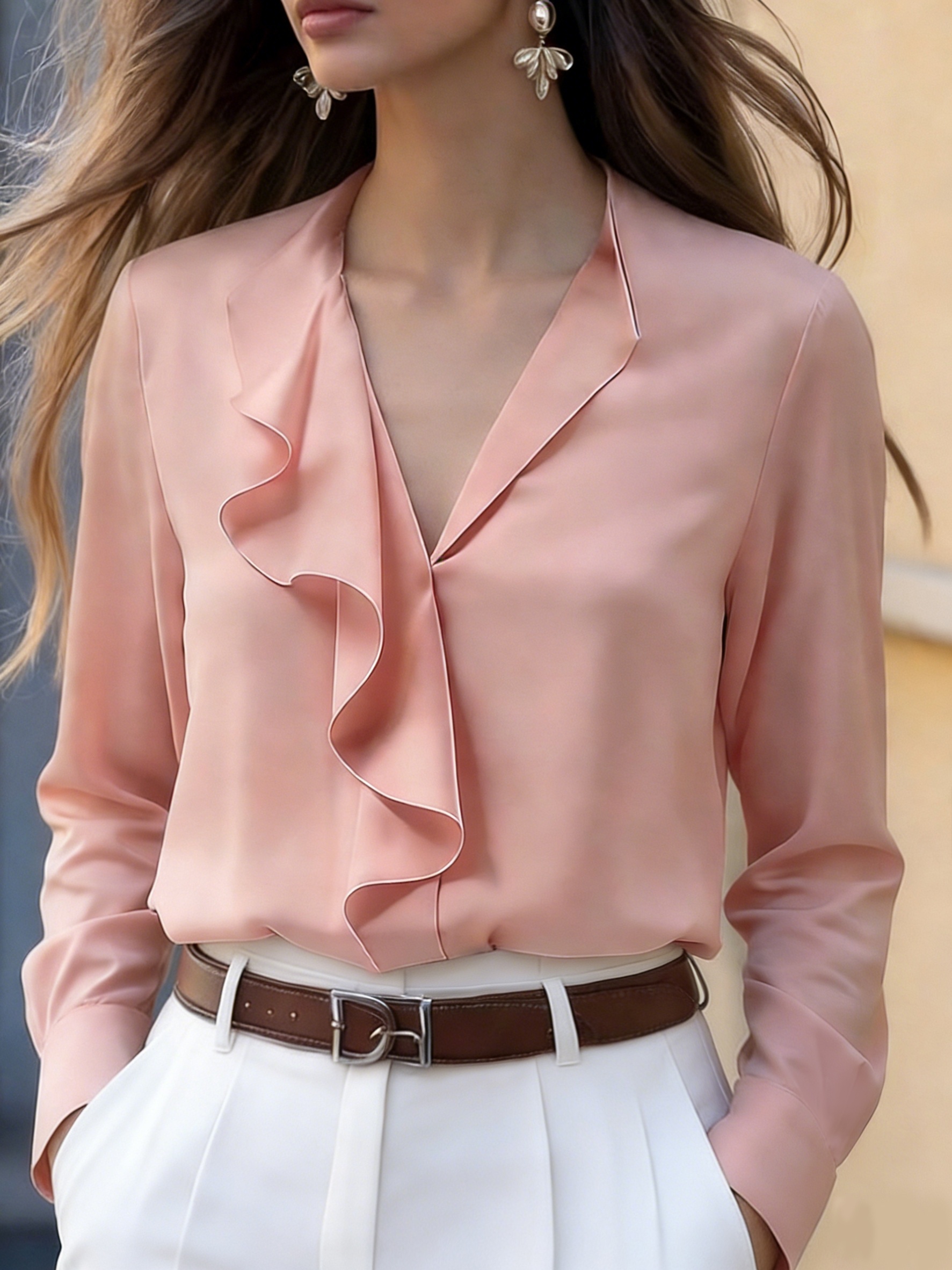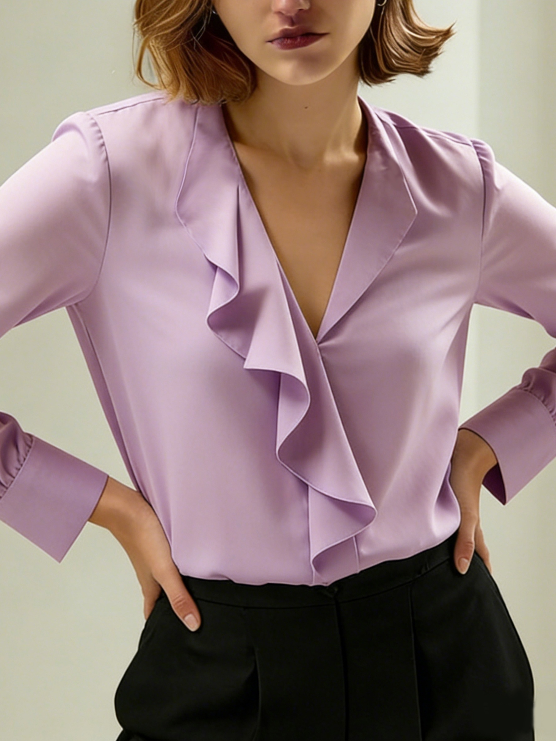 16 Aprile 2026Camicia da Donna con Colletto a Volant, Tessuto Drappeggiato, Stile Colletto Design-Conscio, Blusa a Maniche Lunghe per Donne, Adatta per Ufficio e Occasioni Sociali Leggere