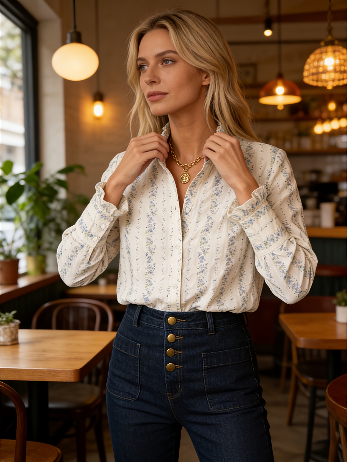 16 Aprile 2026Camicia da donna elegante con risvolto stampato e maniche lunghe, ideale per la primavera e l’autunno, perfetta per tutte le stagioni, stile casual e alla moda per pendolari, top YY0918134
