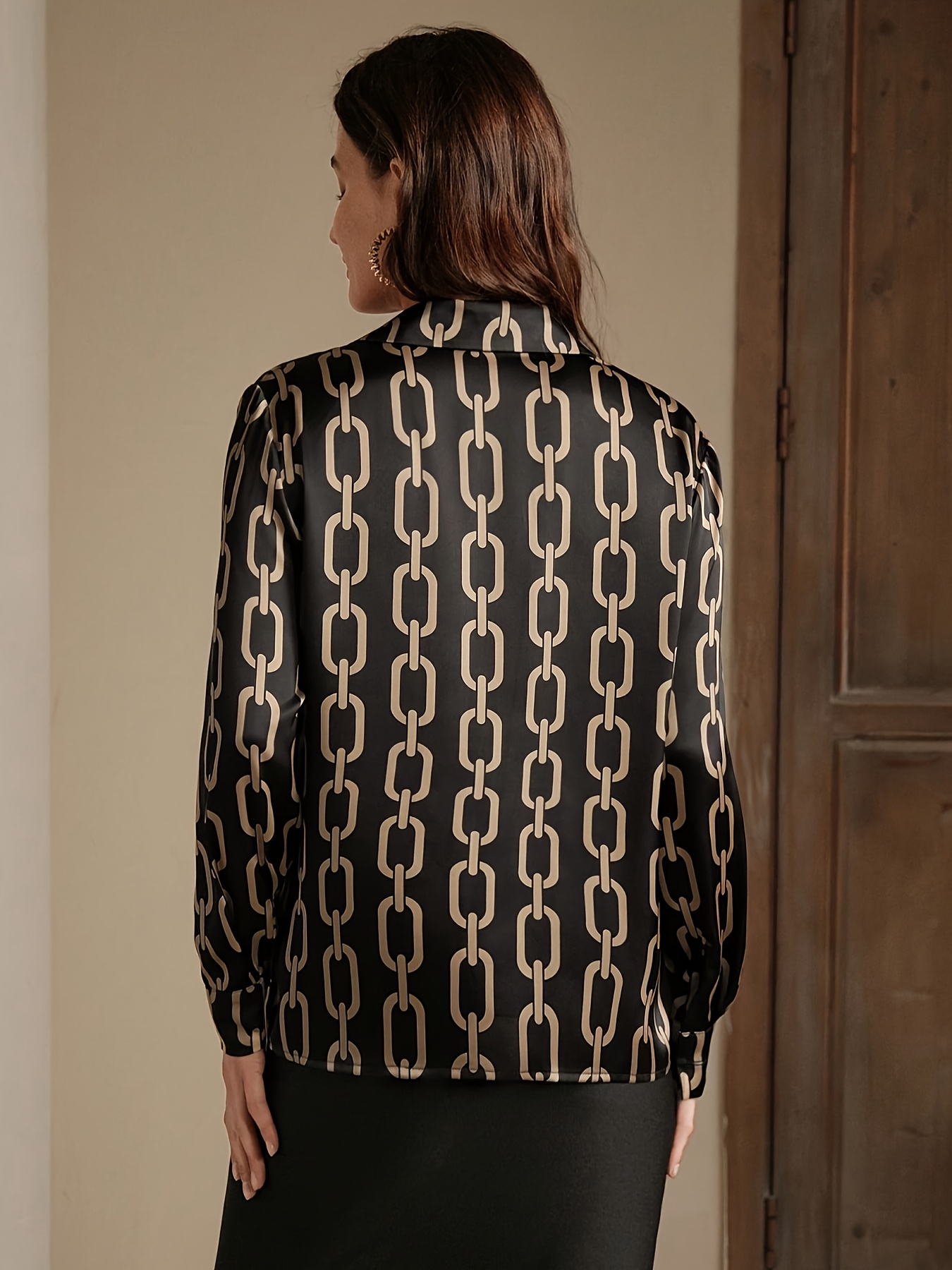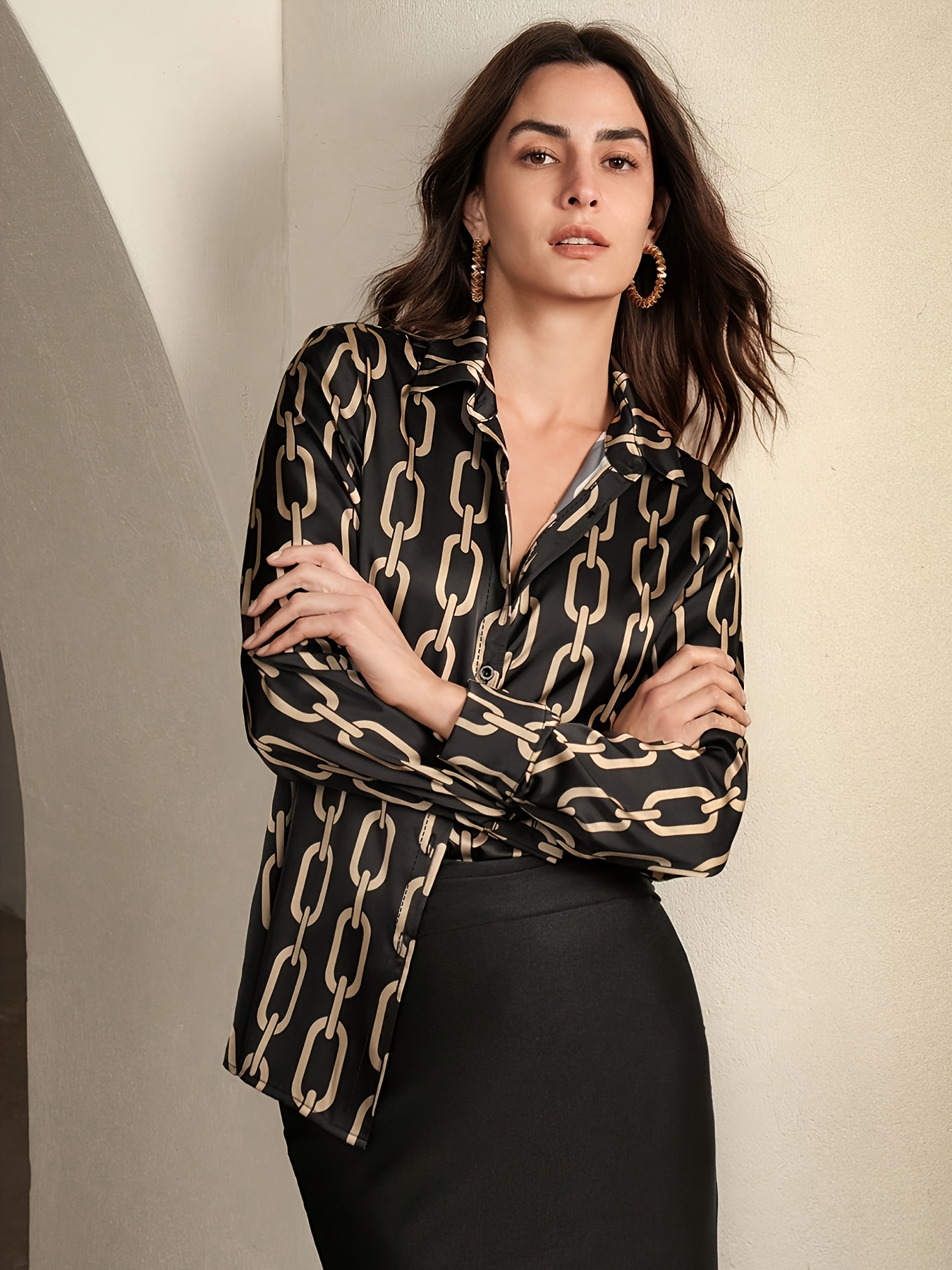 15 Aprile 2026Camicia da donna primavera/estate elegante e alla moda con stampa a catena, vestibilità ampia, camicia business casual, adatta a tutte le stagioni, maglia intima