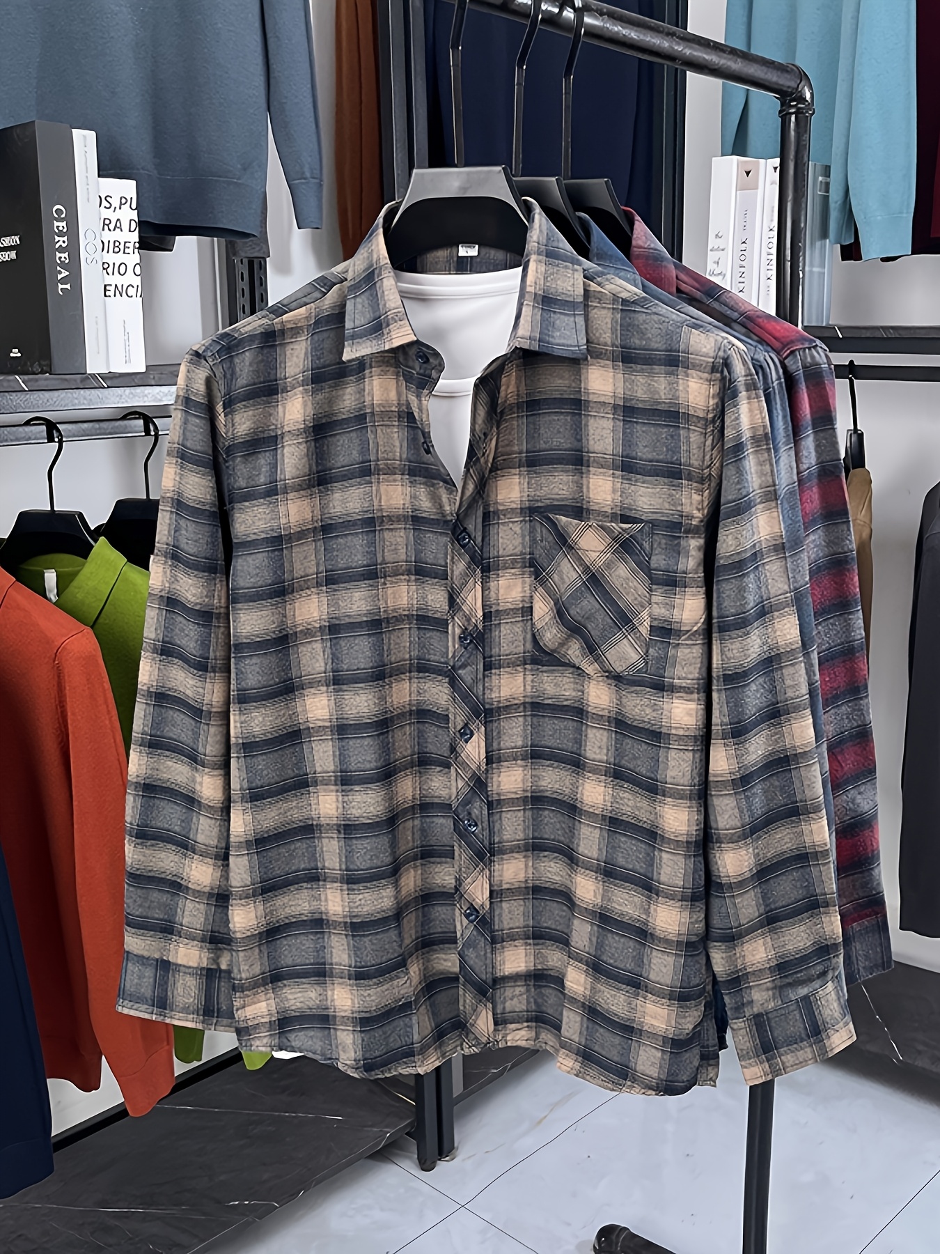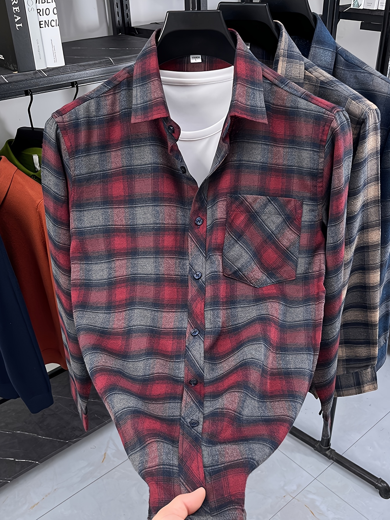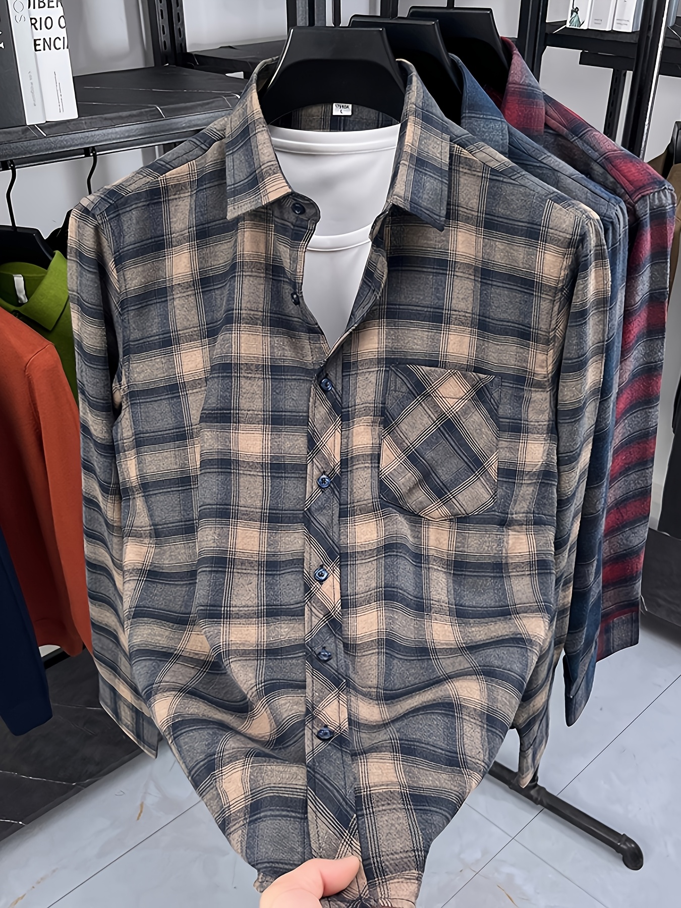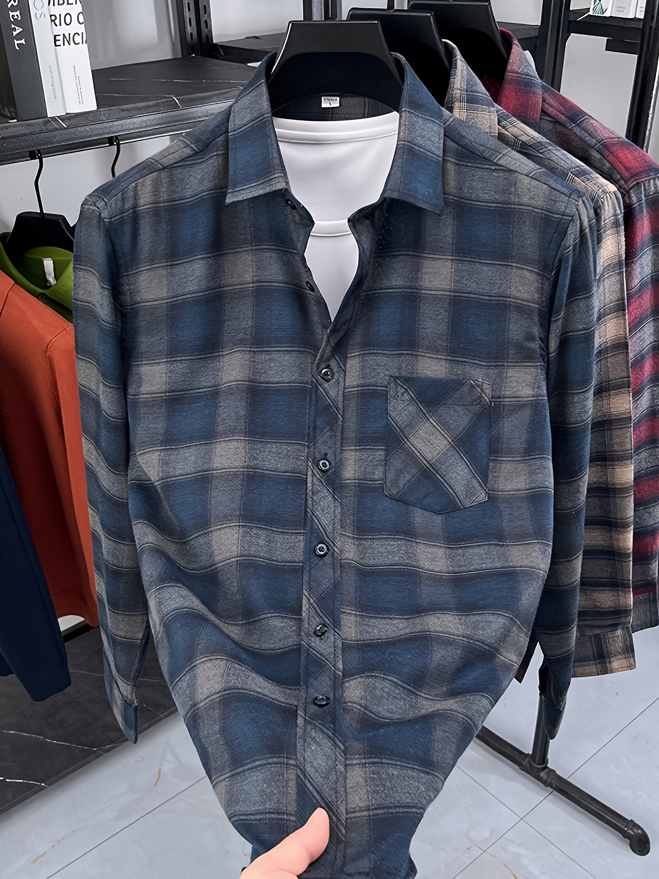 15 Aprile 2026Camicia da uomo casual da lavoro a quadri con tasche, un top alla moda per gli spostamenti quotidiani che può essere indossata come strato esterno o a strati sotto
