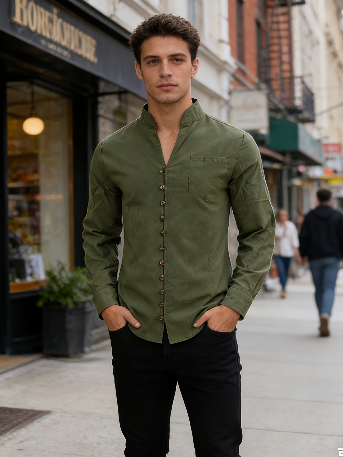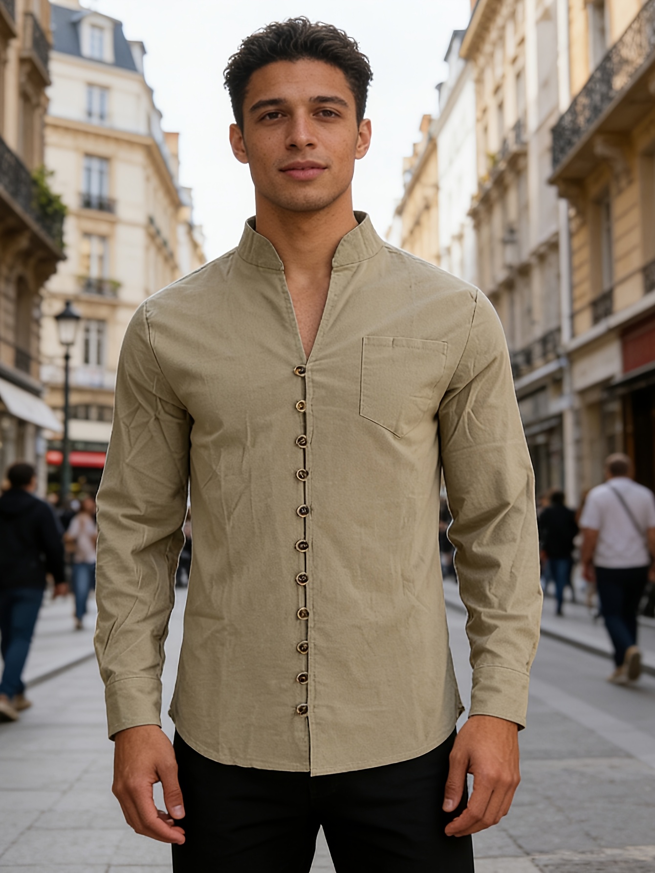 15 Aprile 2026Meixiushao Camicia da uomo in lino traspirante con colletto alla coreana e maniche lunghe, ideale per l’estate e l’outdoor, stile retrò cinese, abbottonata, senza confezione regalo