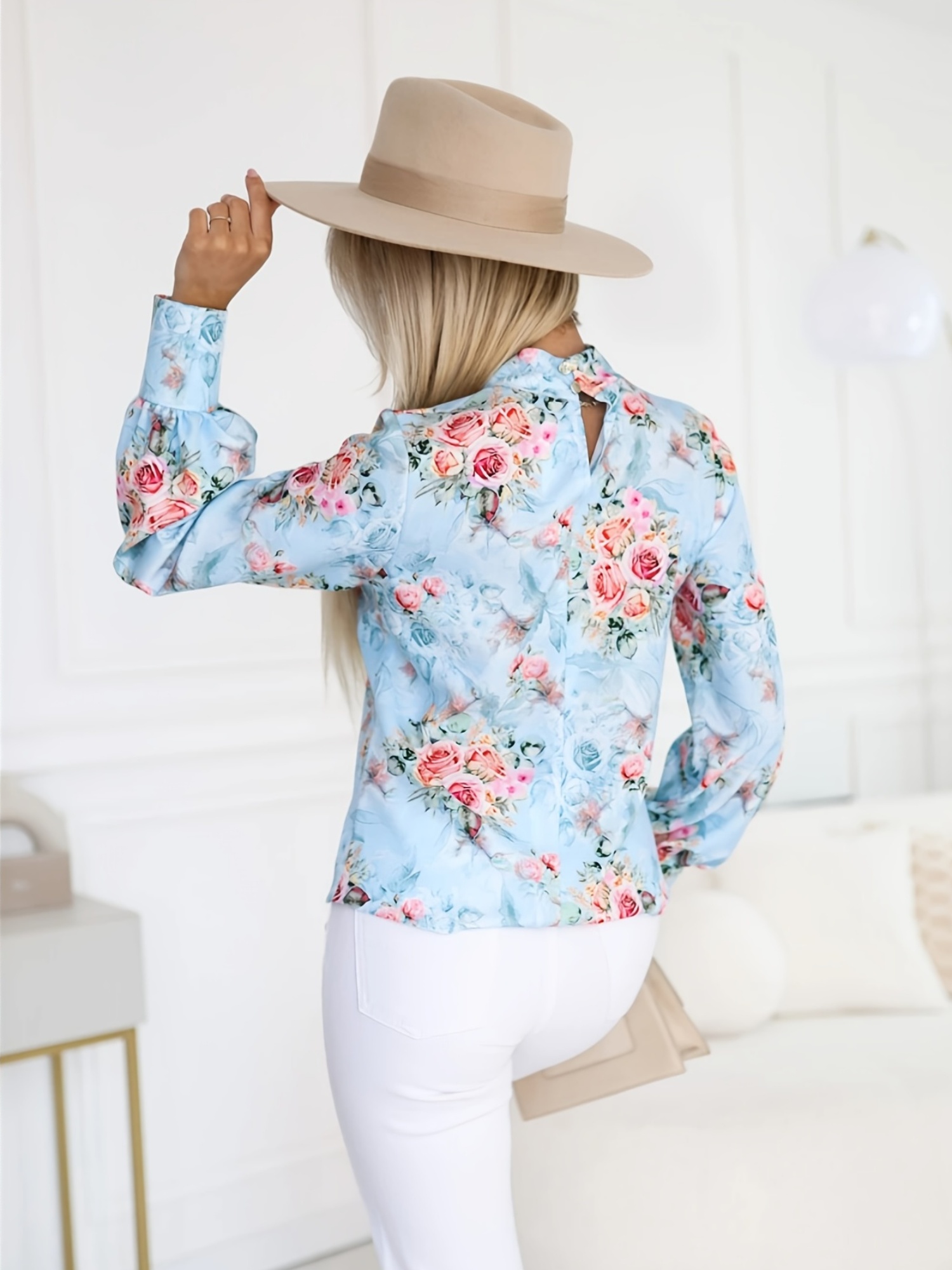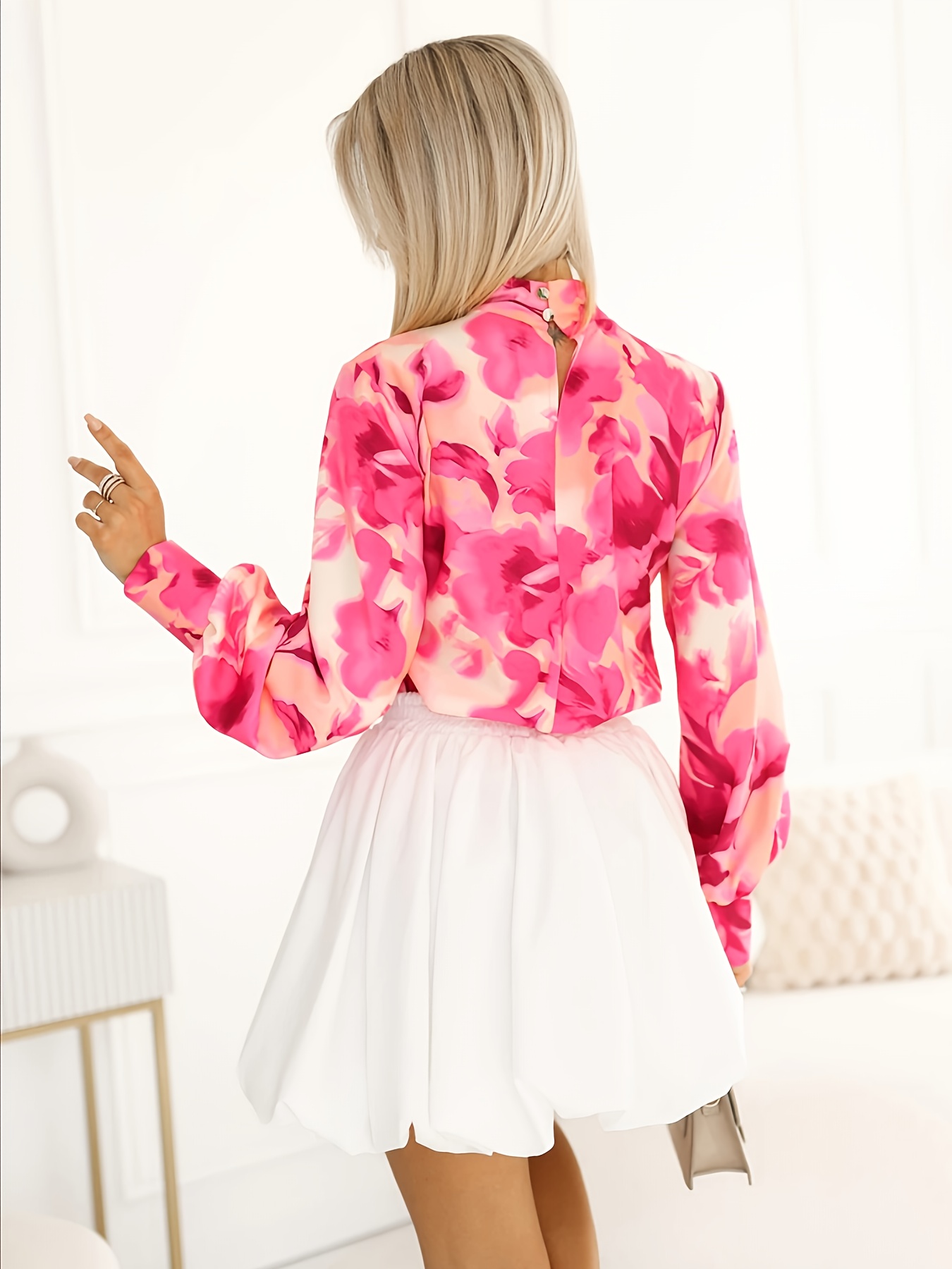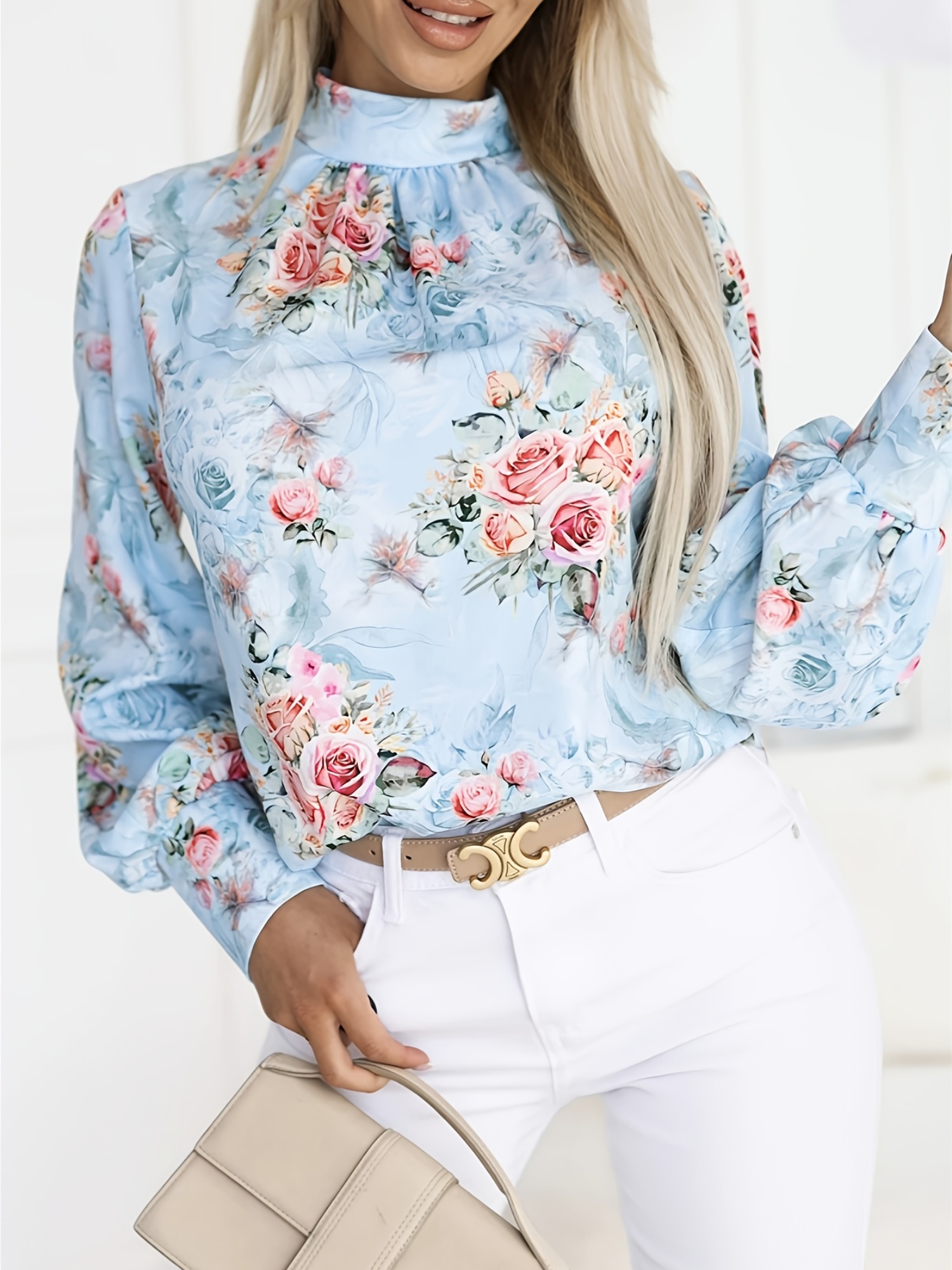 16 Aprile 2026Camicia elegante a maniche lunghe con collo alto e stampa animalier, caratterizzata da un scollo arricciato e un design pullover alla moda