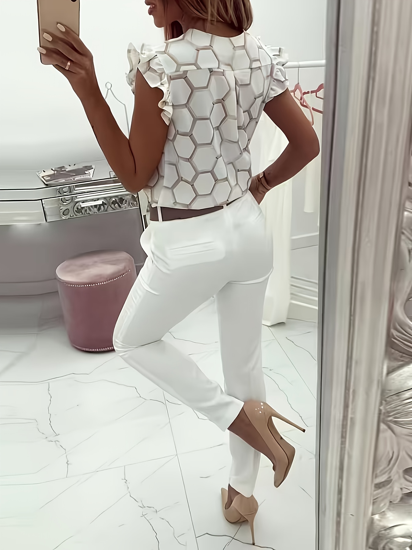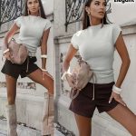 16 Aprile 2026Camicia Elegante colletto alla coreana, maniche corte con volant, risvolto monopetto, perfetto per un abbigliamento casual da weekend in primavera e autunno
