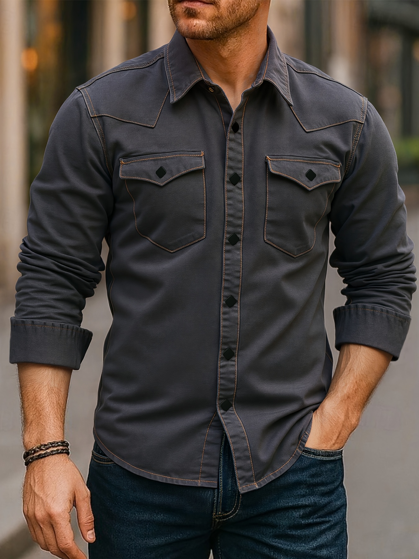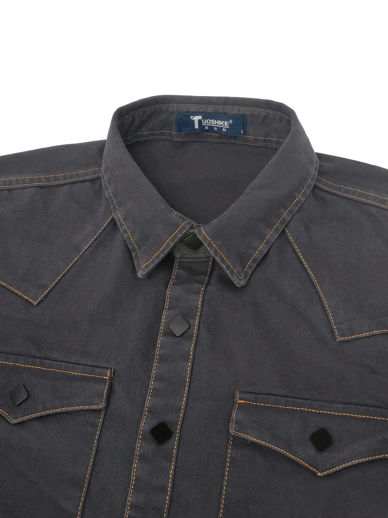 15 Aprile 2026Camicia in Denim Uomo, Camicia in Denim con Bottoni Quadrati e Doppia Tasca, Denim Vintage Lavato a Mano, Camicia in Denim Slim-Fit a Maniche Lunghe con Effetto Sfumato, Indumento Esterno e Interno Versatile per Uomo, Top in Denim per Primavera/Autunno