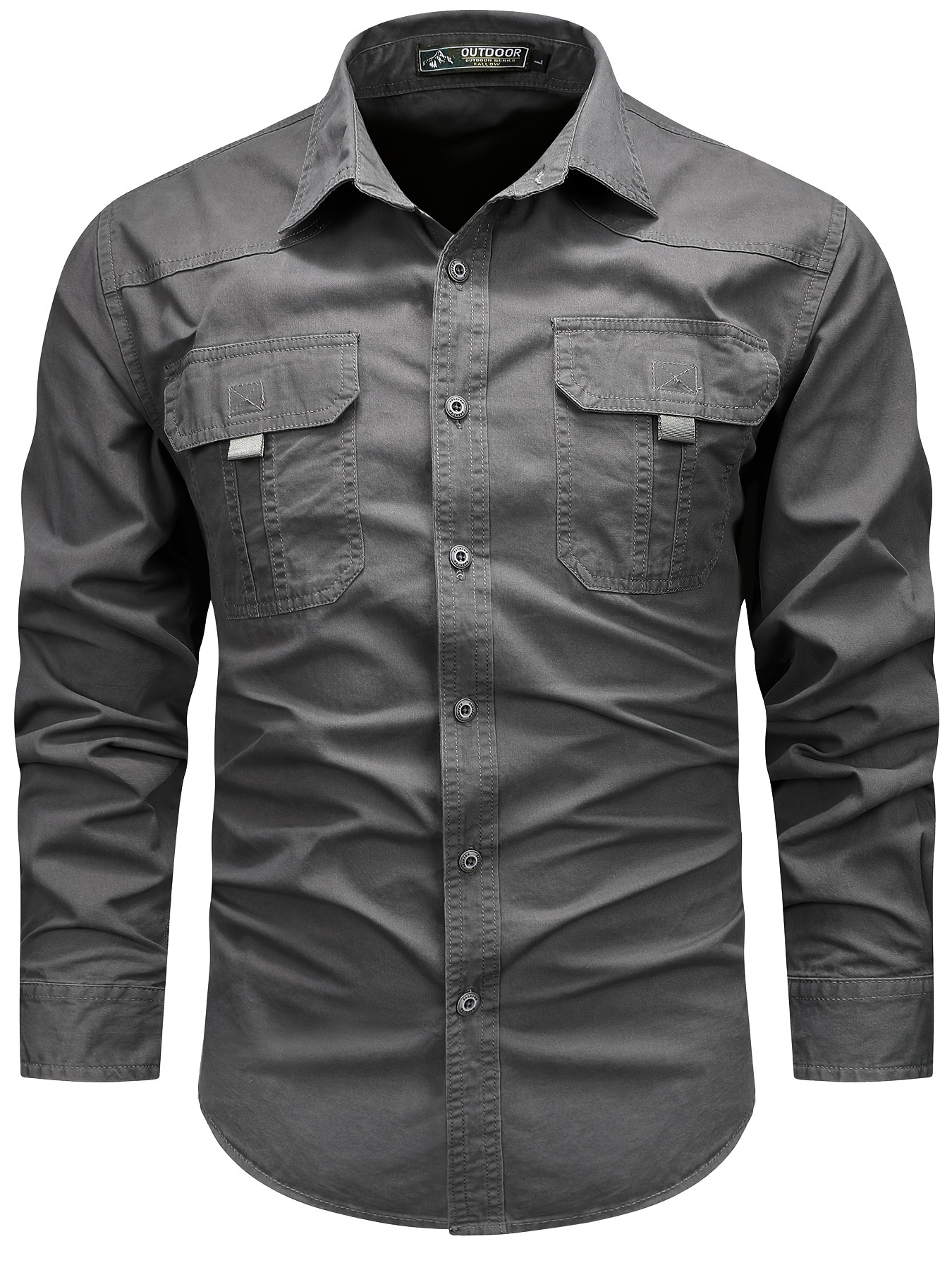 26 Gennaio 2026Camicia Uomo Primavera Autunno in Cotone, Manica Lunga Casual con Tasche Grandi per Outdoor