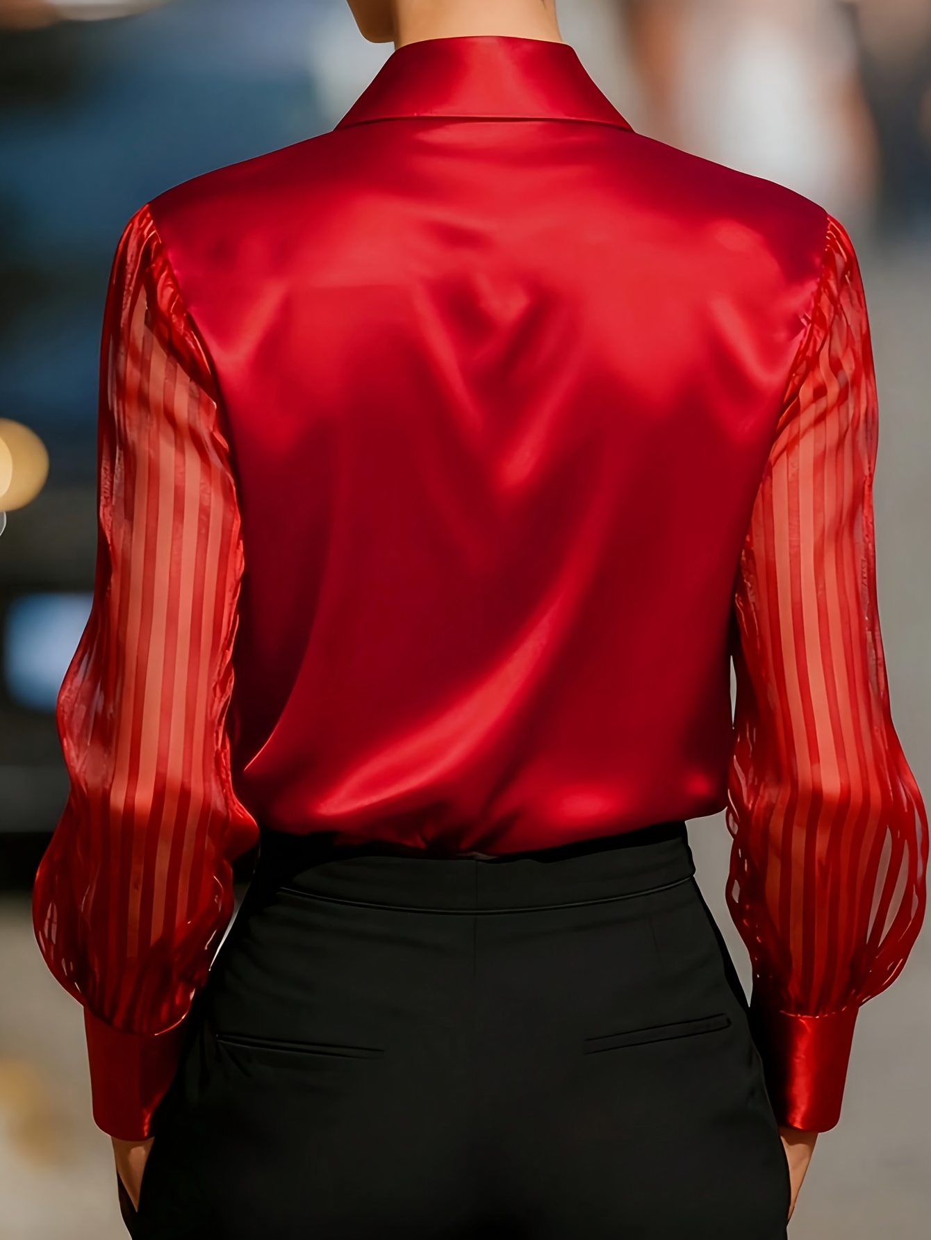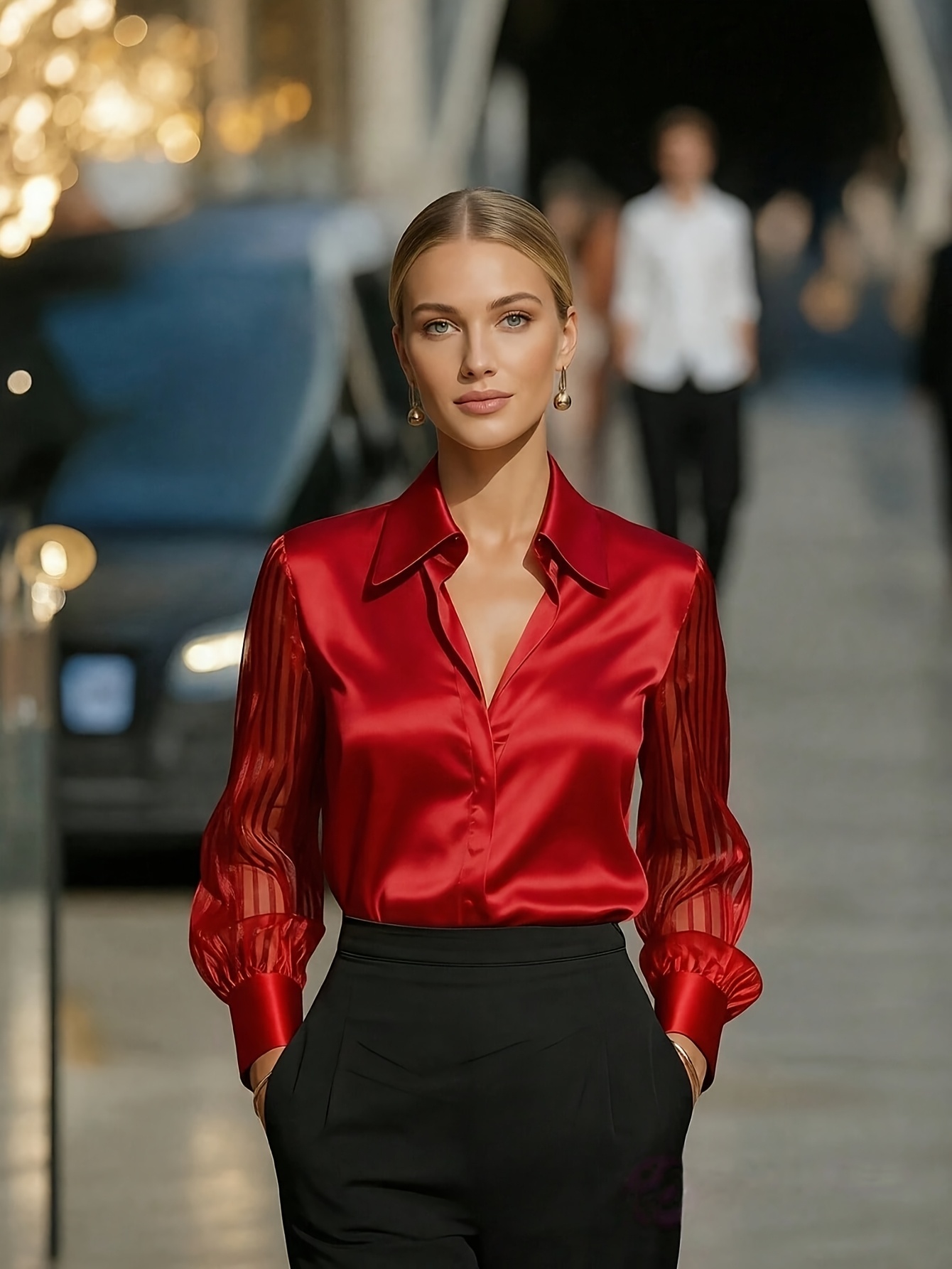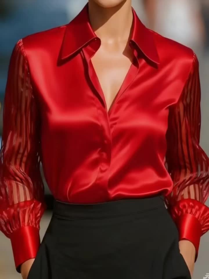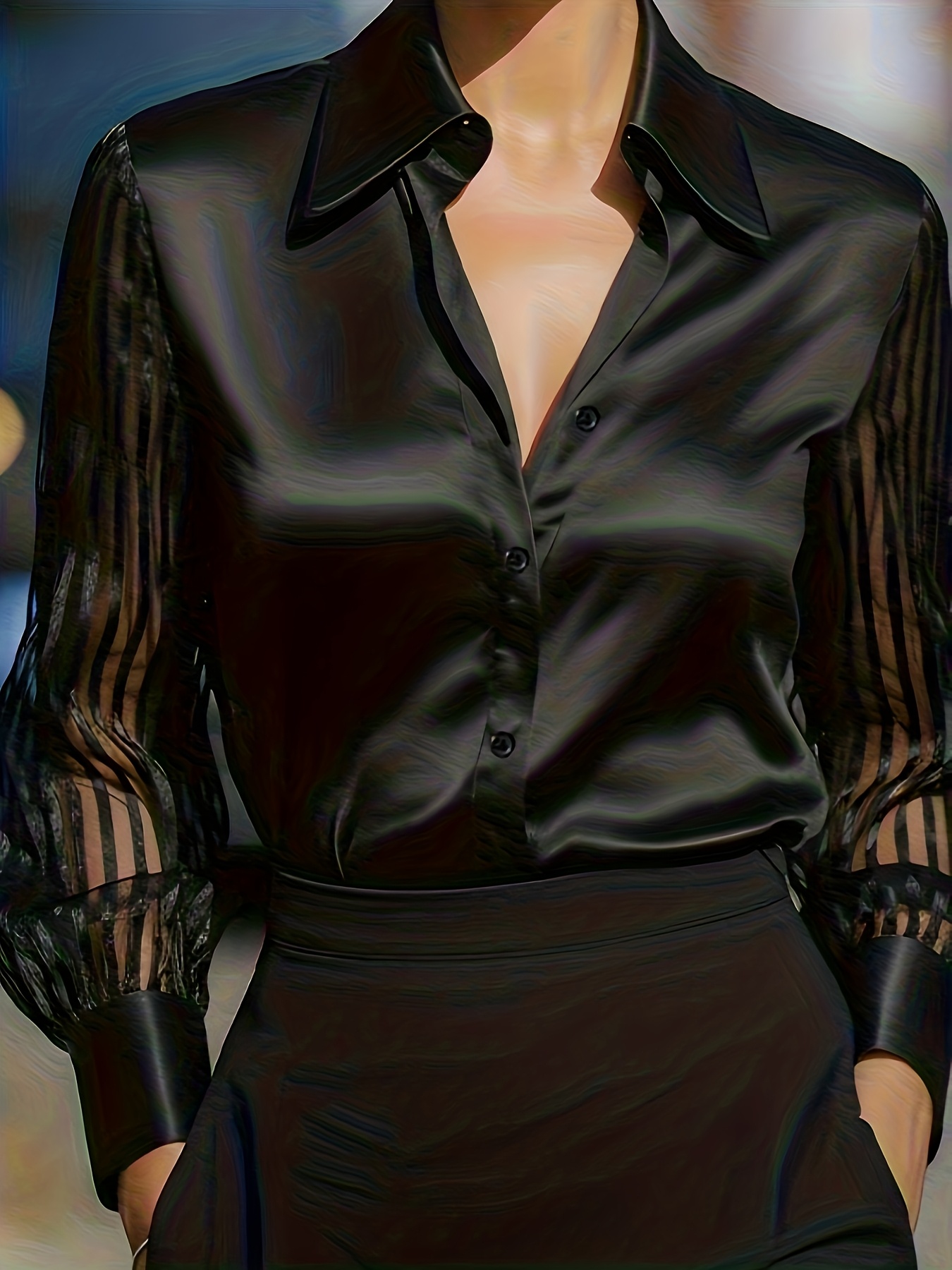 16 Aprile 2026Camicia urbana elegante da donna ASD1 Directional in raso, tinta unita, con colletto elegante a inserti in rete, perfetta per un look alla moda e versatile