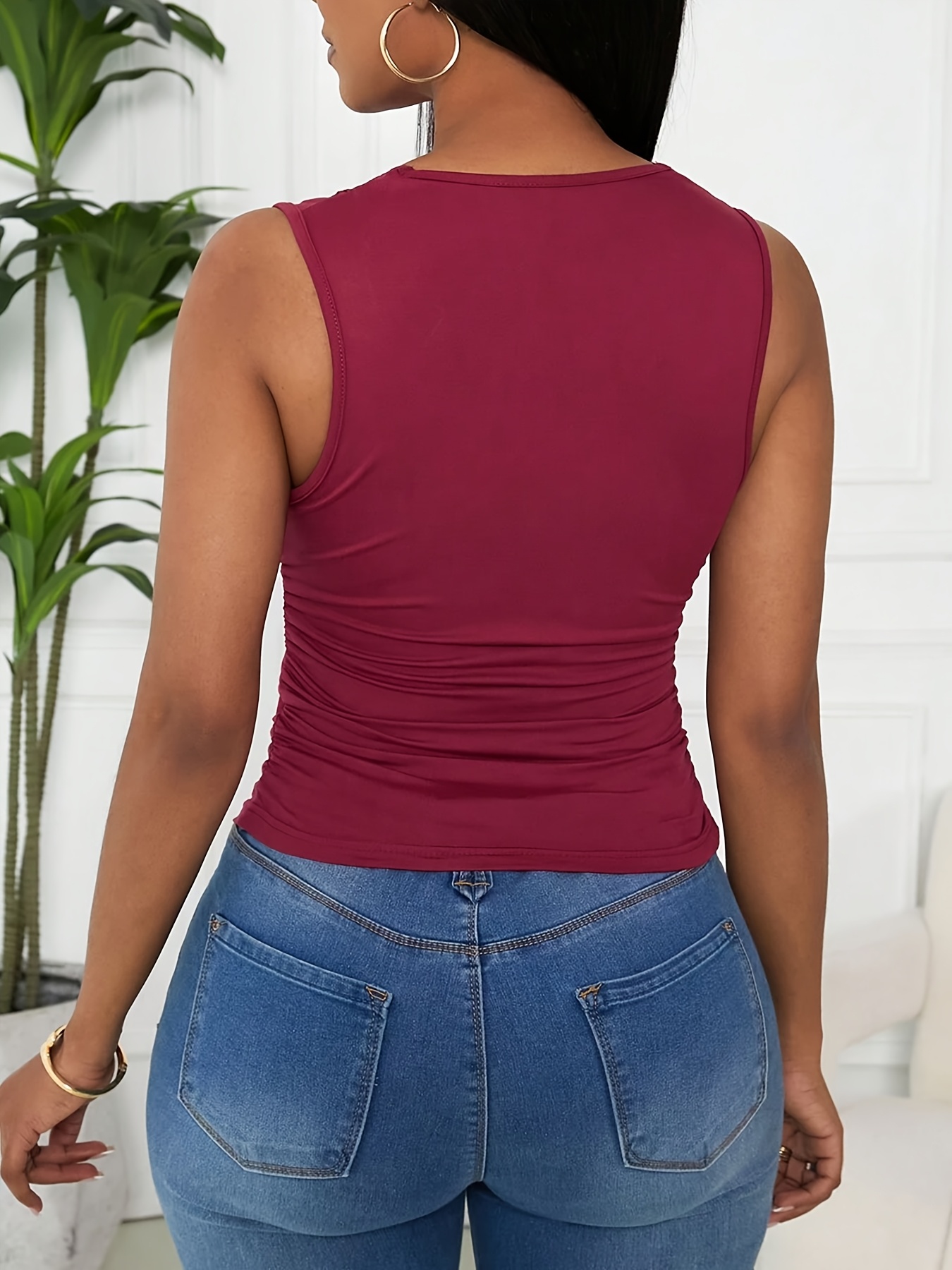 16 Aprile 2026Nuova canotta scollata a V profonda da donna, stile vacanza primavera/estate, alla moda, , tinta unita con bordo in pizzo, numero 26