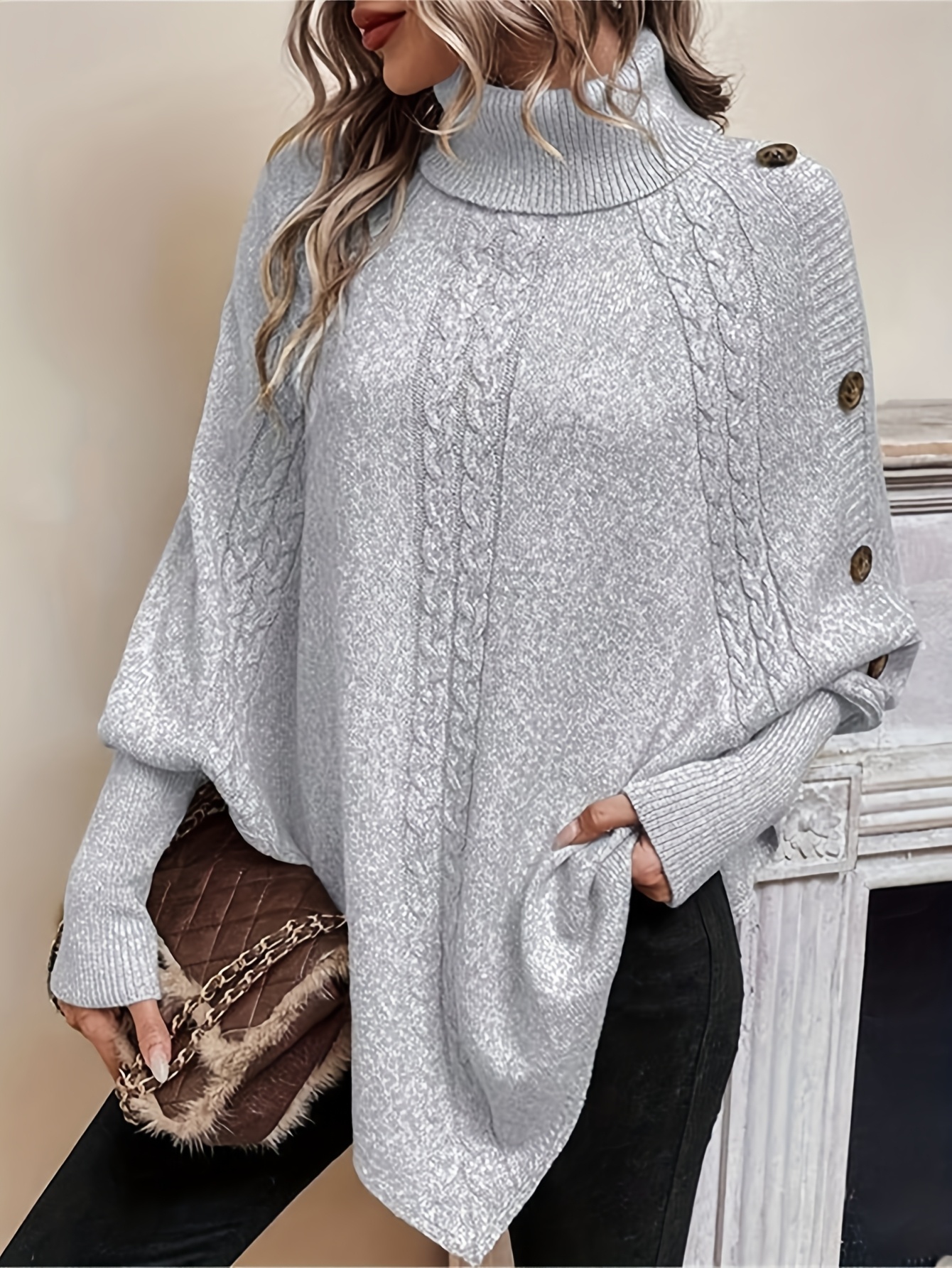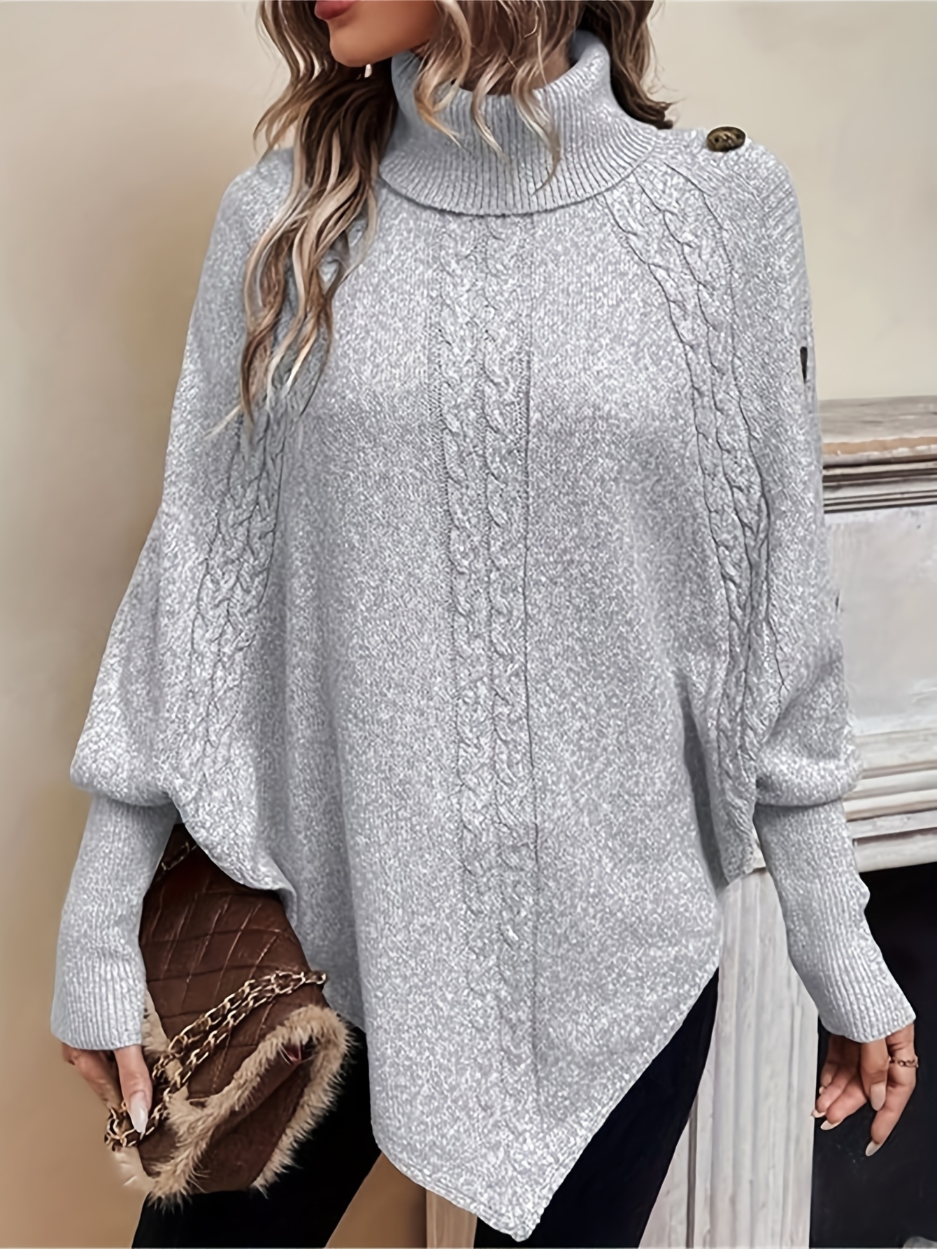 26 Gennaio 2026Mantella caffettano a collo alto con cavo irregolare, stile europeo e americano, moda autunno-inverno da donna