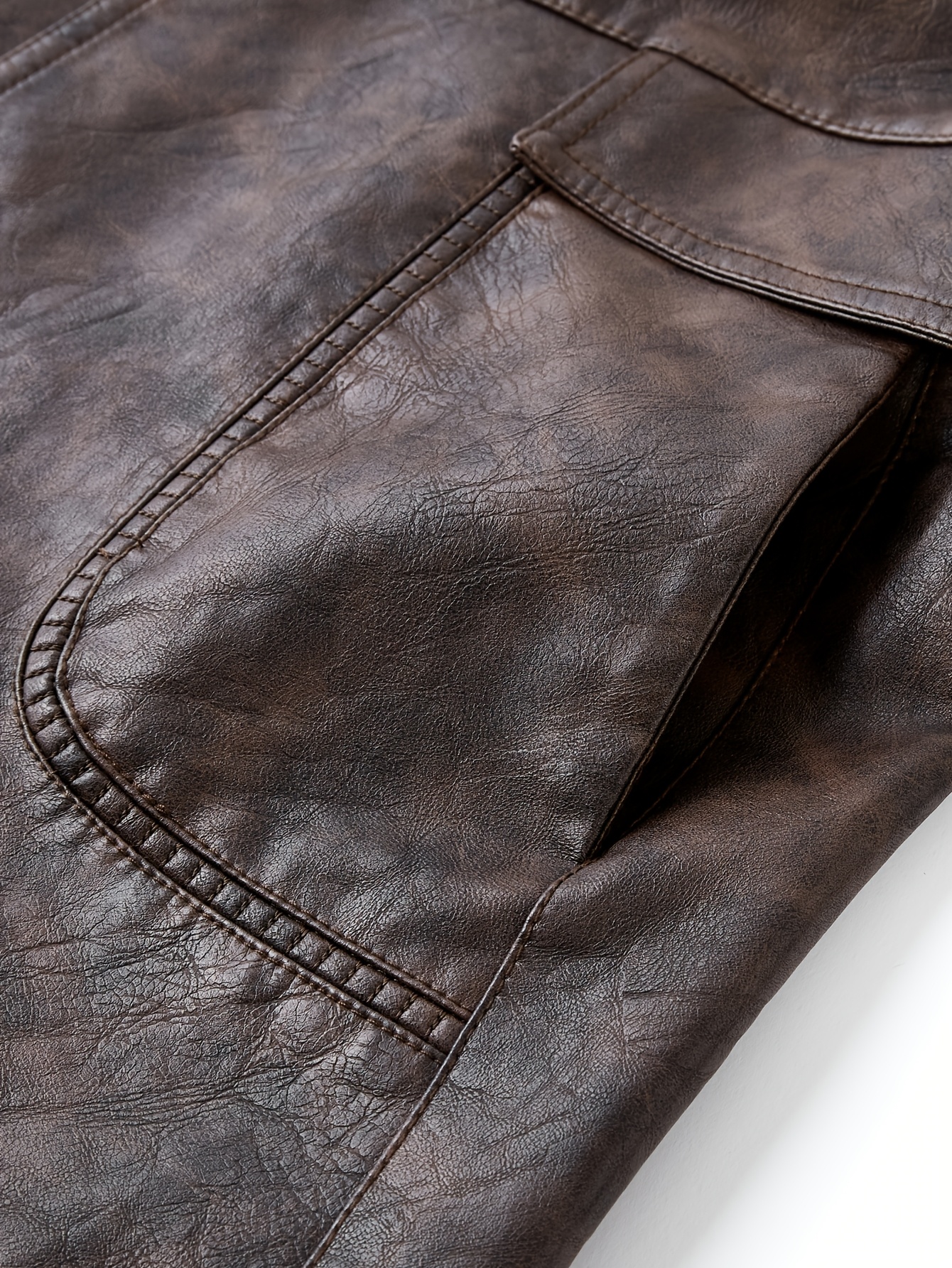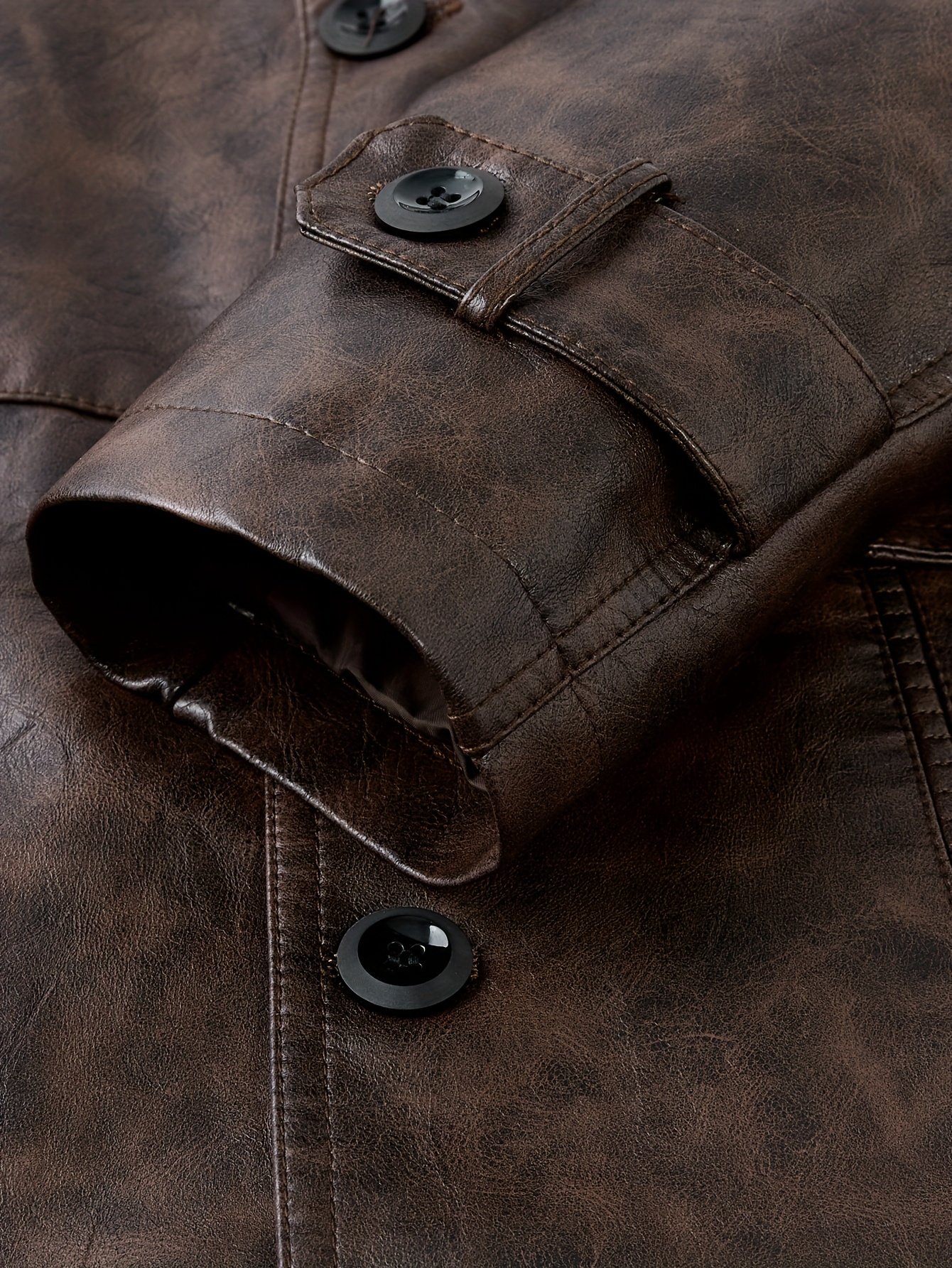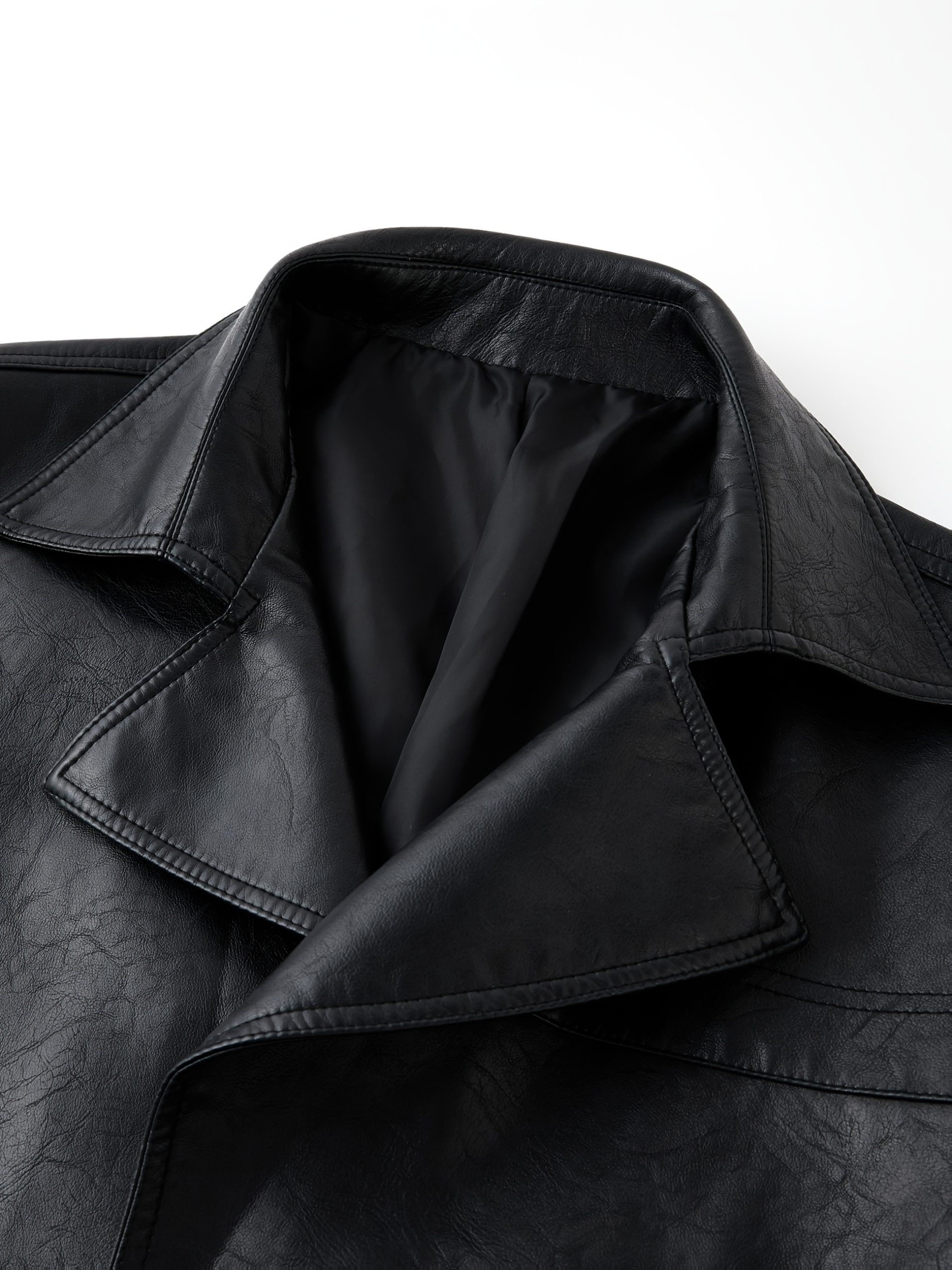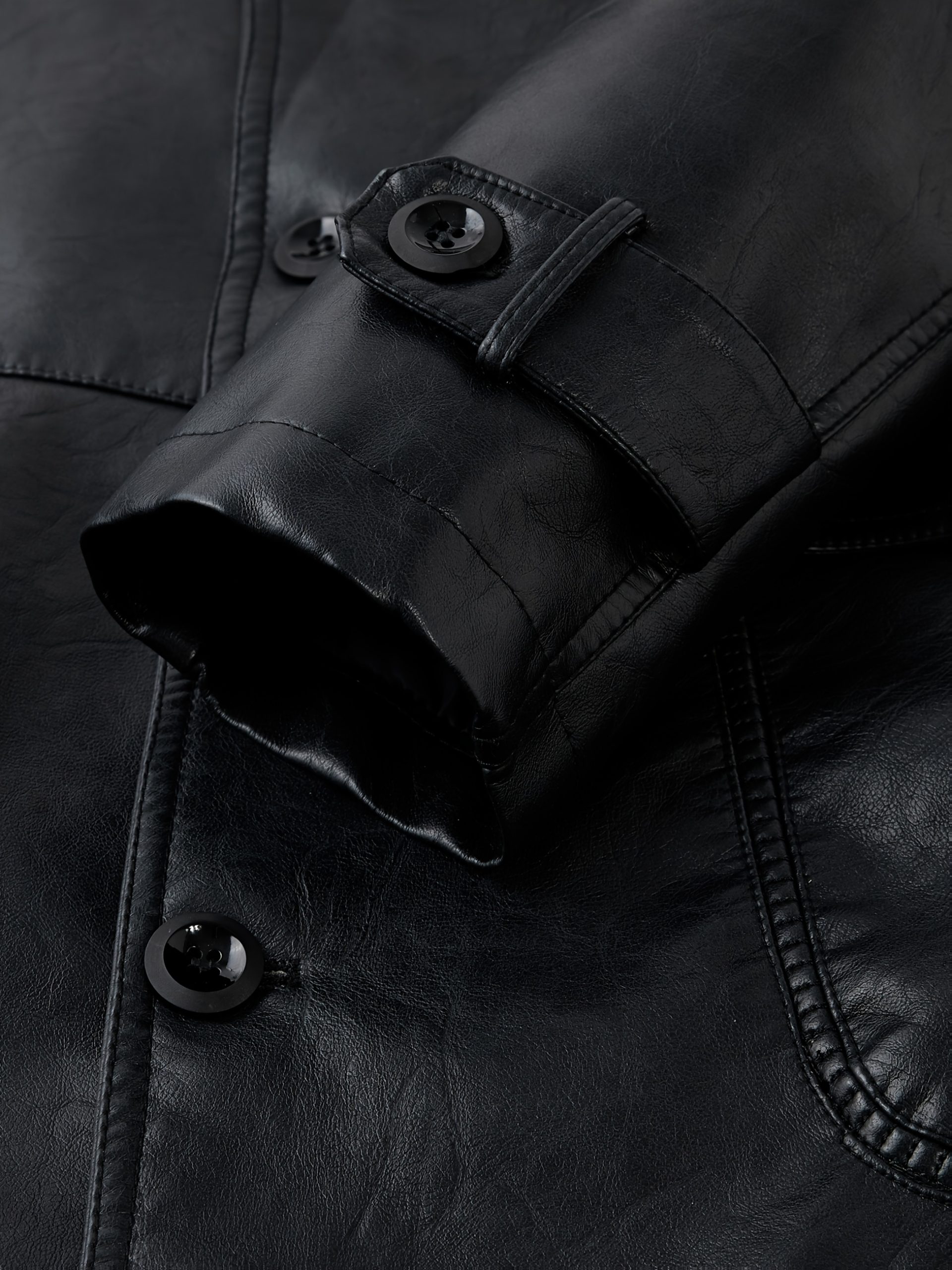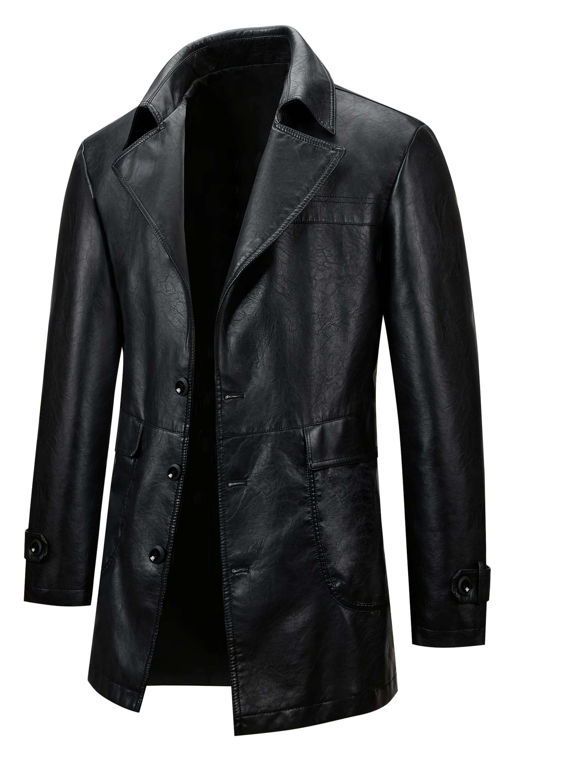 28 Gennaio 2026Cappotto da uomo a mezza lunghezza con risvolto monopetto, giacca vintage casual in PUMateriale: Pelle sintetica