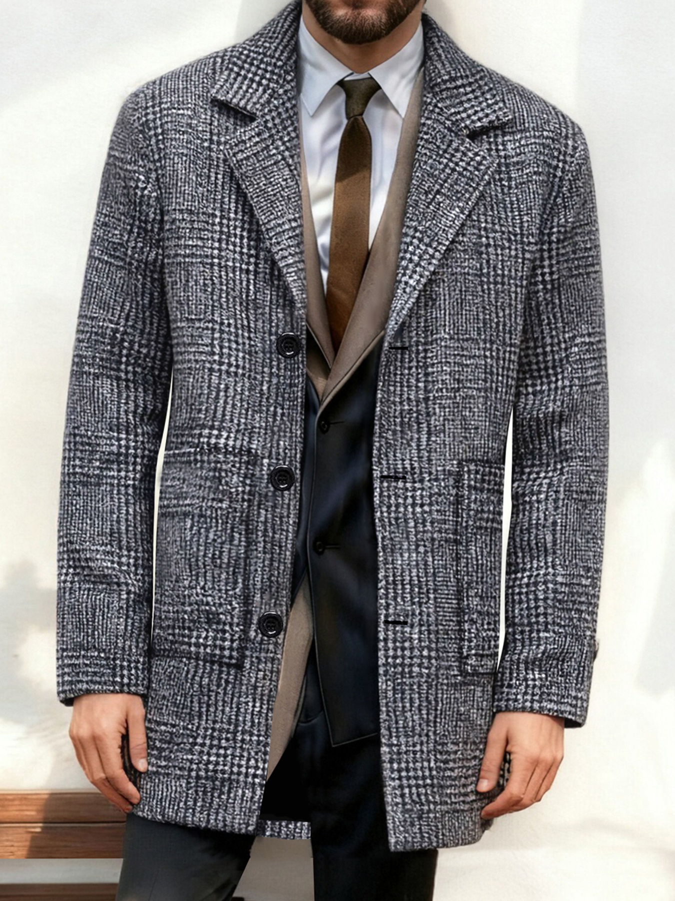 21 Febbraio 2026Cappotto da uomo vintage a pied-de-poule, stile inglese dandy, autunno/inverno 2025, adatto per pendolarismo, socializzazione e stile da gentiluomo, giacca monopetto