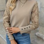 Maglia Manica Lunga, Scollo Tondo e Bottoni Decorativi,Elegante